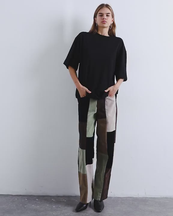 Pantalons et leggings de TopshopCe pantalon est confectionné dans un tissu doux et texturé pour une sensation haut de gamme. Orné d'un patchwork unique, il présente une taille mi-haute, des passants de ceinture et des poches fonctionnelles. Sa coupe droite lui confère une allure élégante.