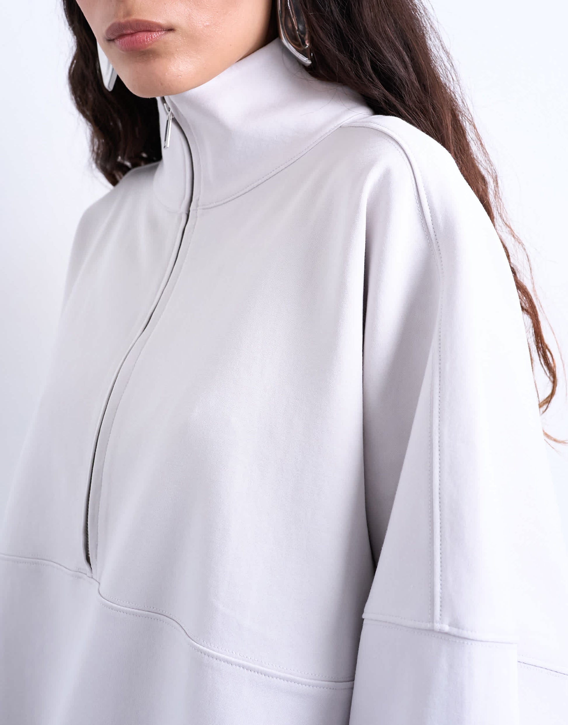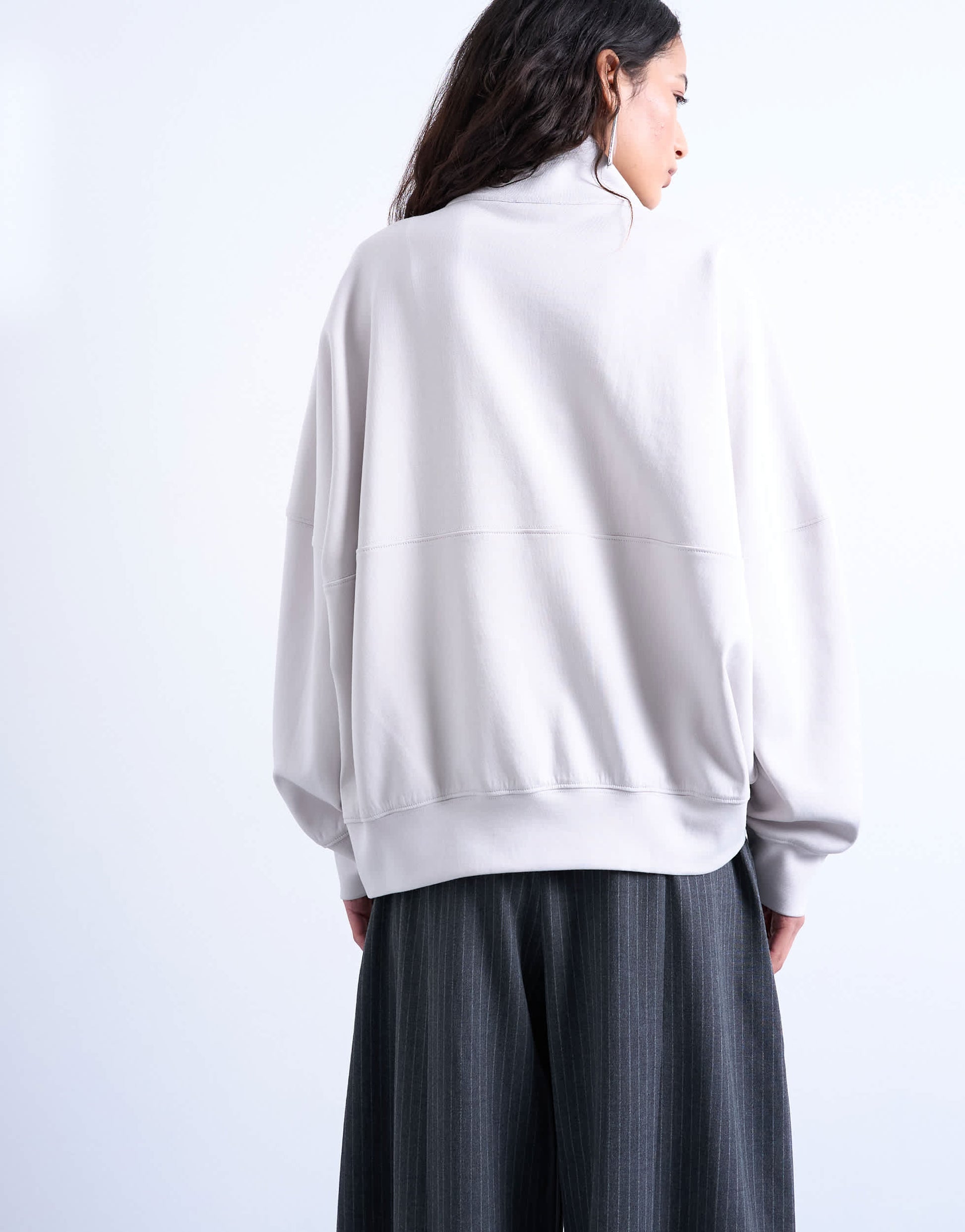 Sweat-shirts à capuche et pulls TopshopCe sweat-shirt est confectionné en jersey épais couleur pierre. Il présente un col montant, une fermeture éclair partielle et des épaules tombantes pour une coupe décontractée.