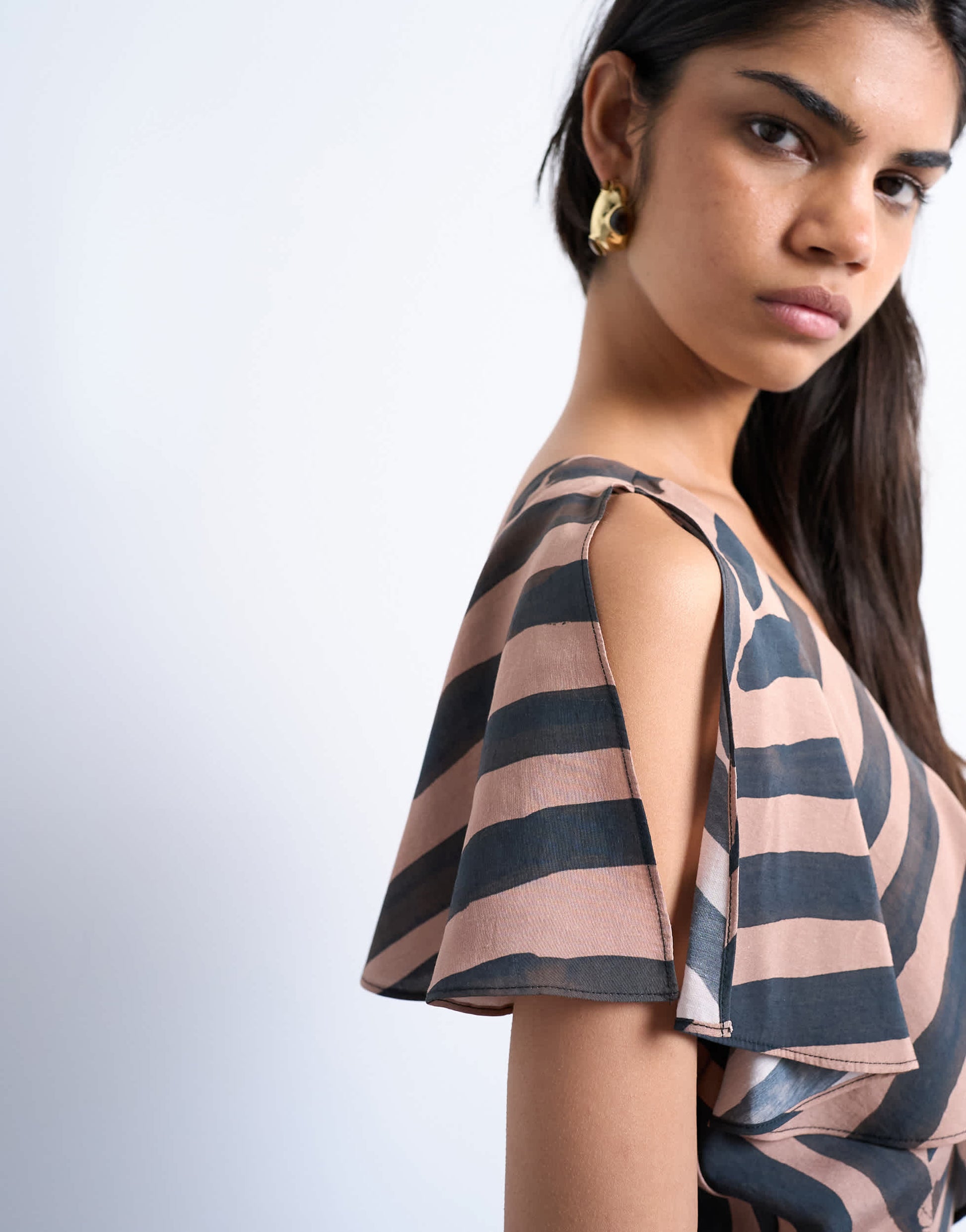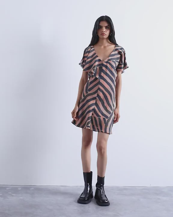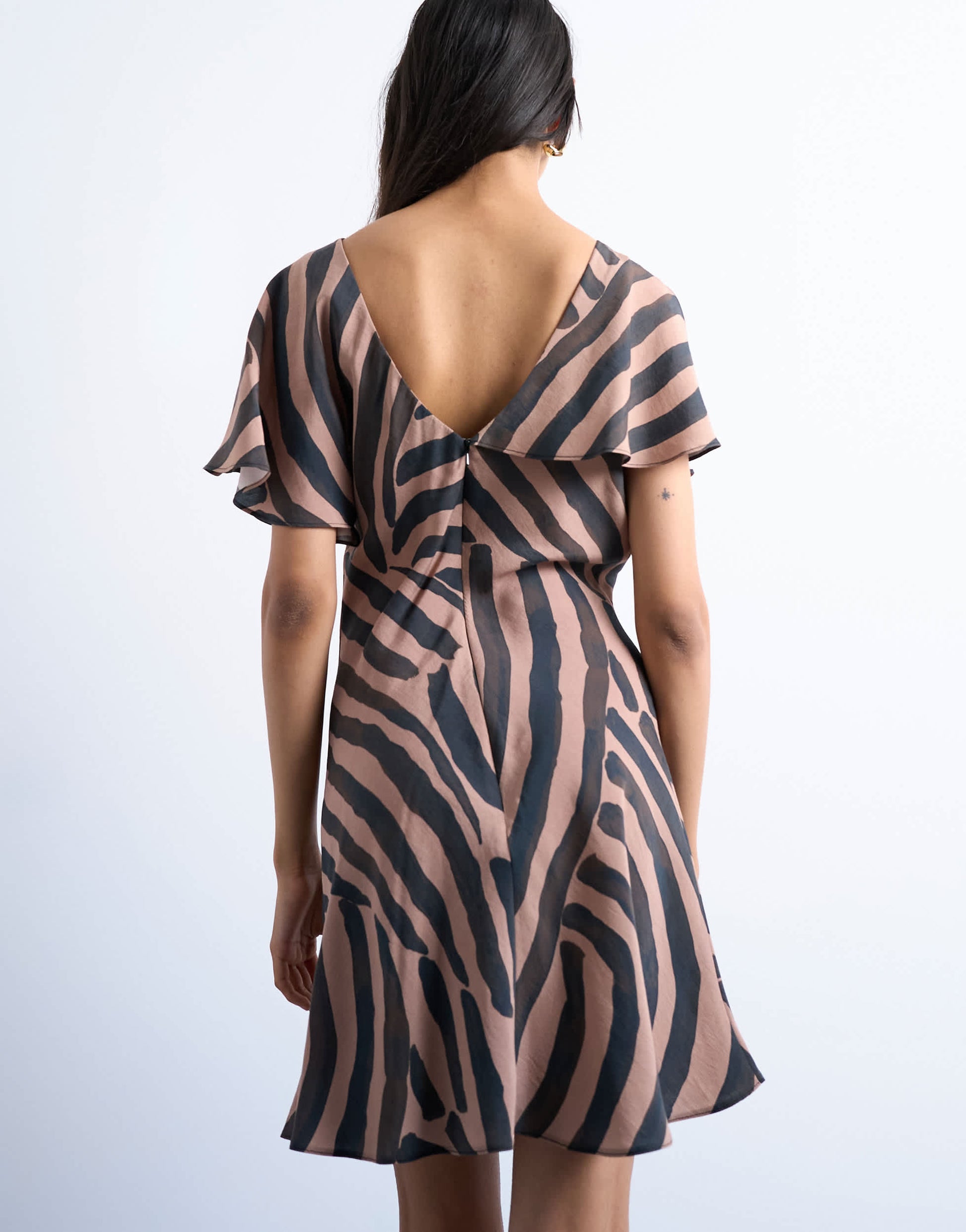 Robes de TopshopCette robe est confectionnée dans un tissu tissé à motif abstrait. Dotée de manches papillon, d'un décolleté en V devant et d'un dos assorti, cette pièce à la coupe classique se ferme par une fermeture éclair au dos.