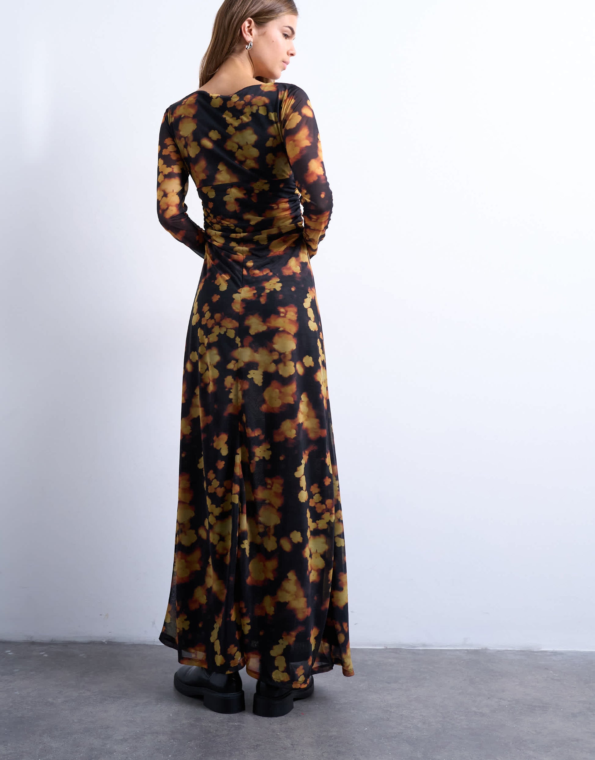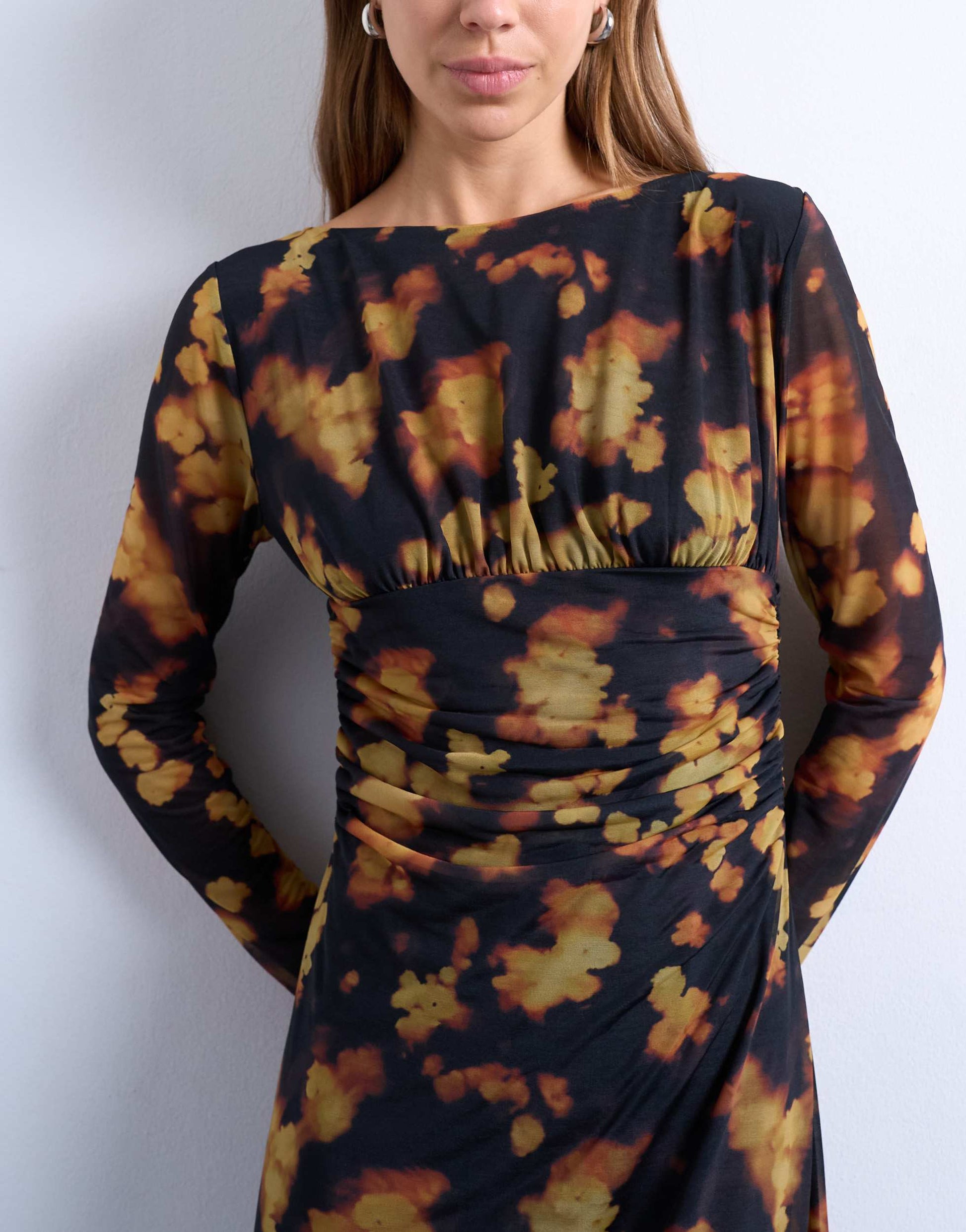 Robe longue Topshop à imprimé floral flou et manches longues, noire