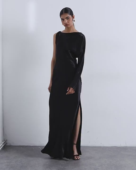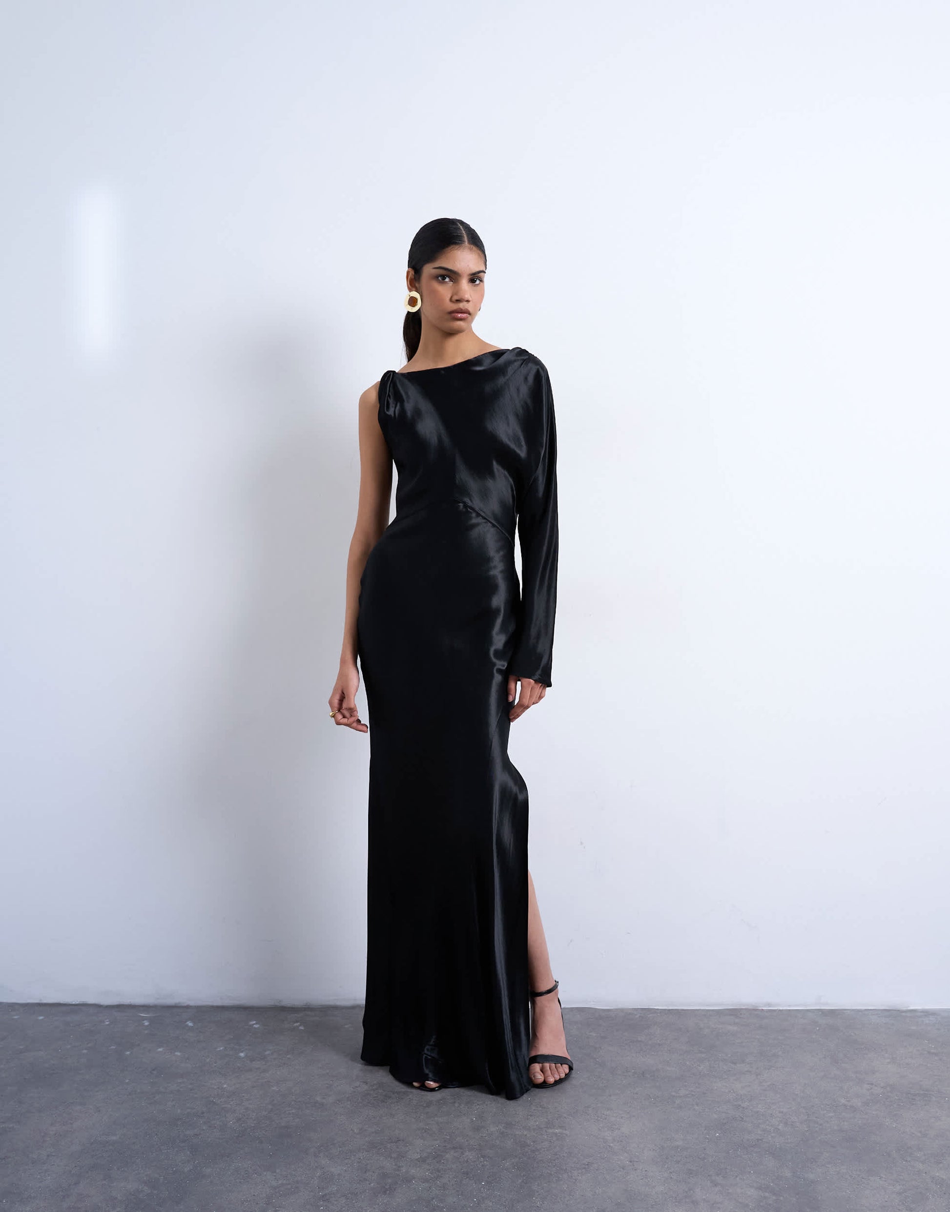 Robes de TopshopCette robe est confectionnée dans un tissu fluide, de style satiné, et présente une coupe simple. Elle possède une manche unique, un col rond, une fente latérale et une coupe classique.