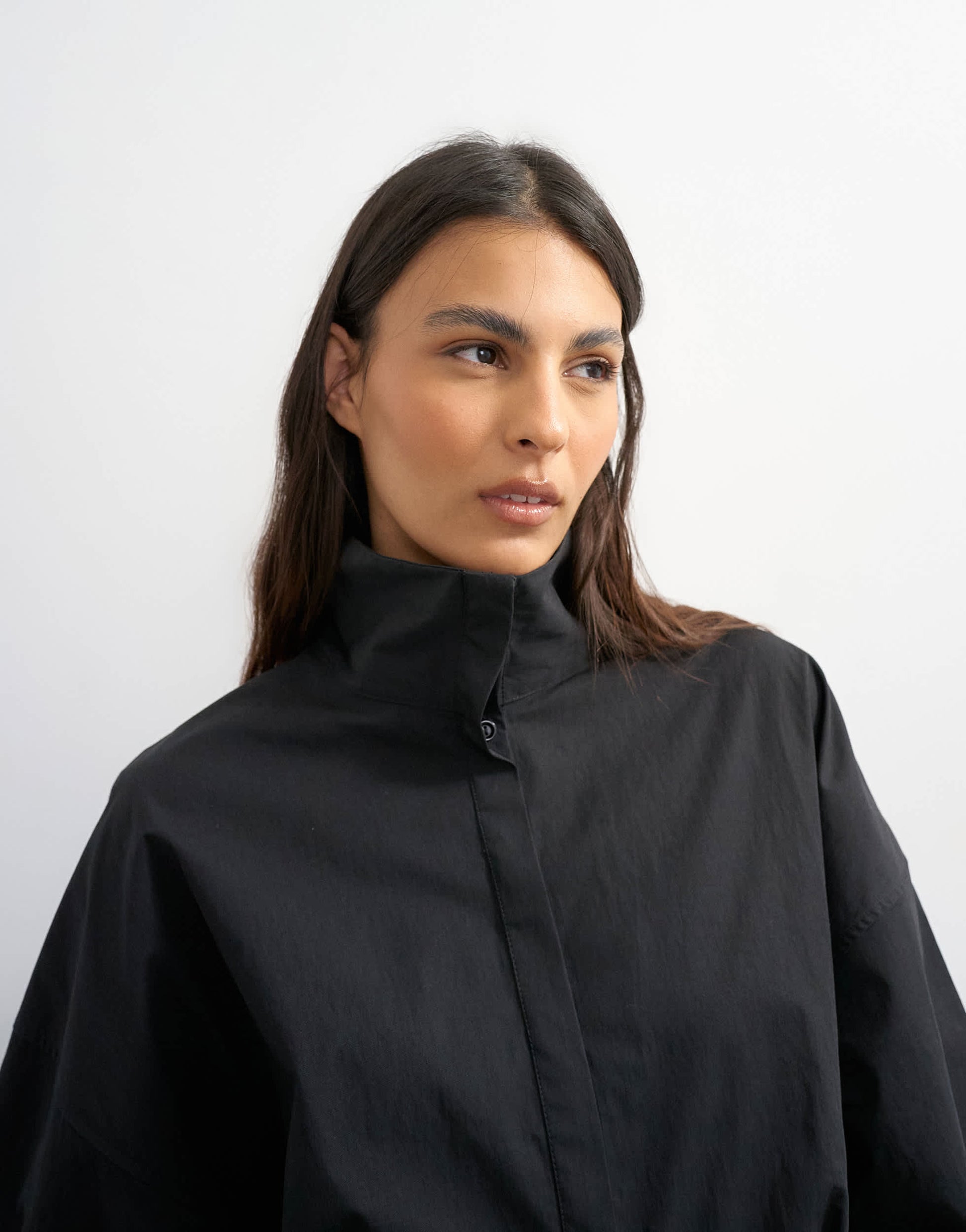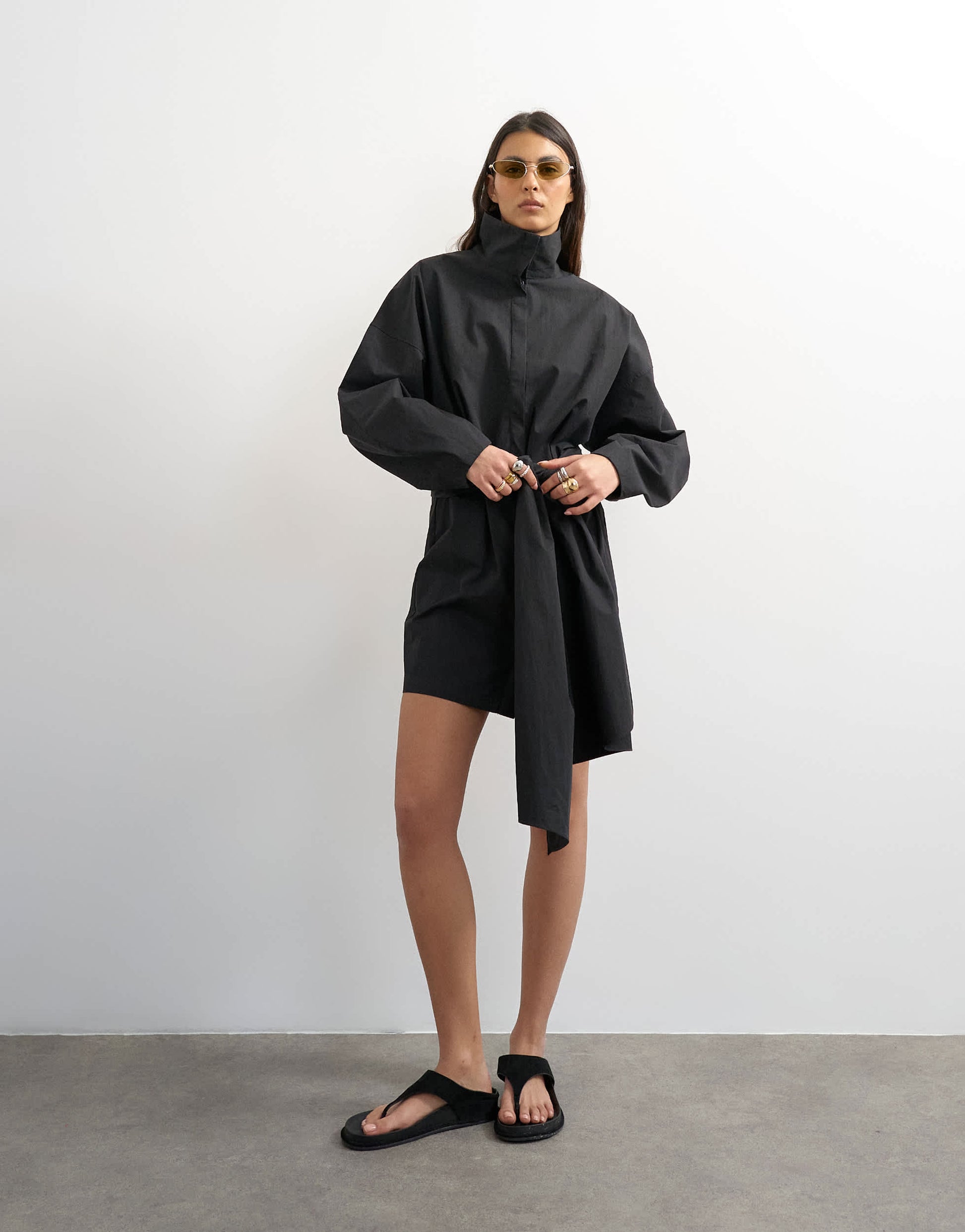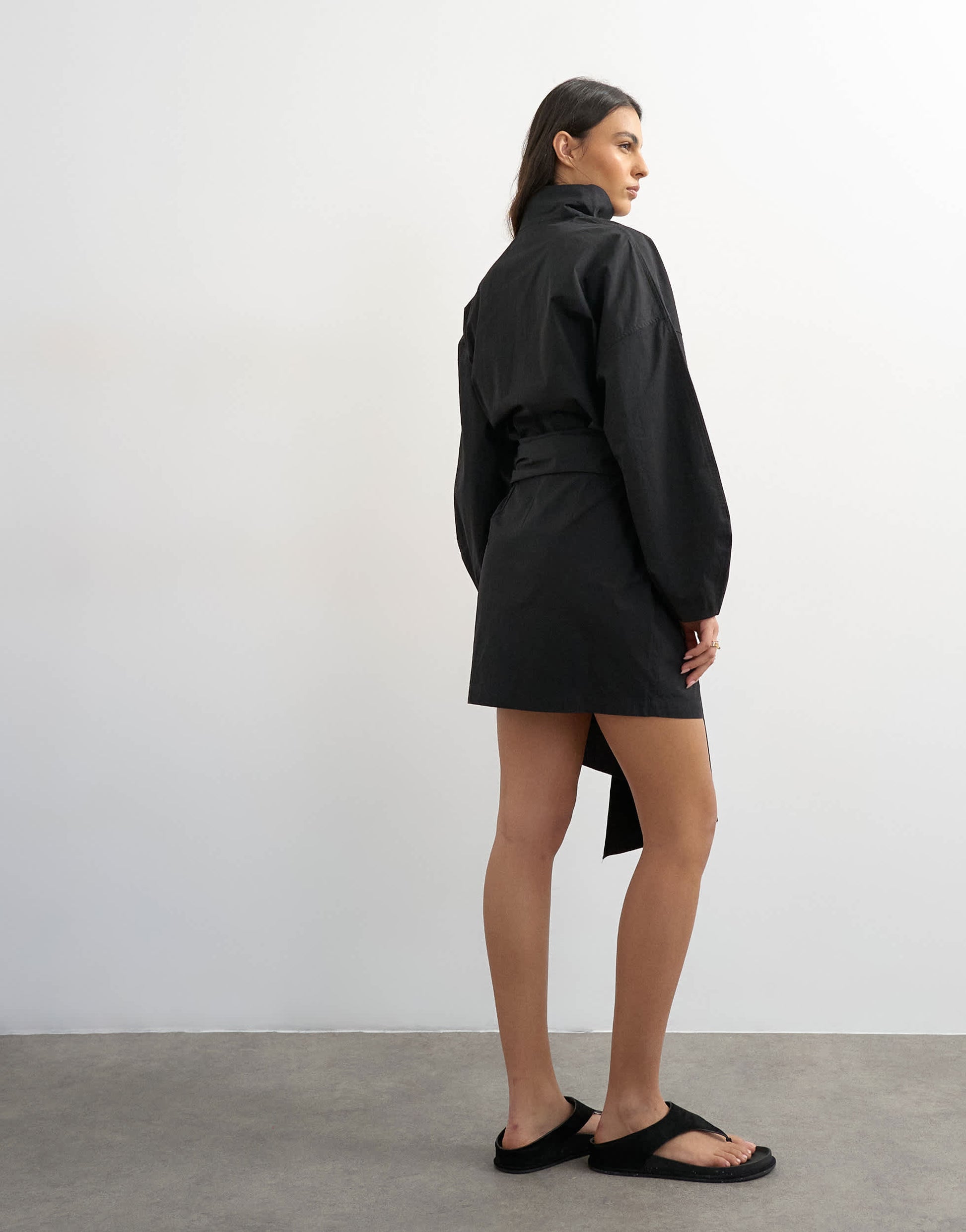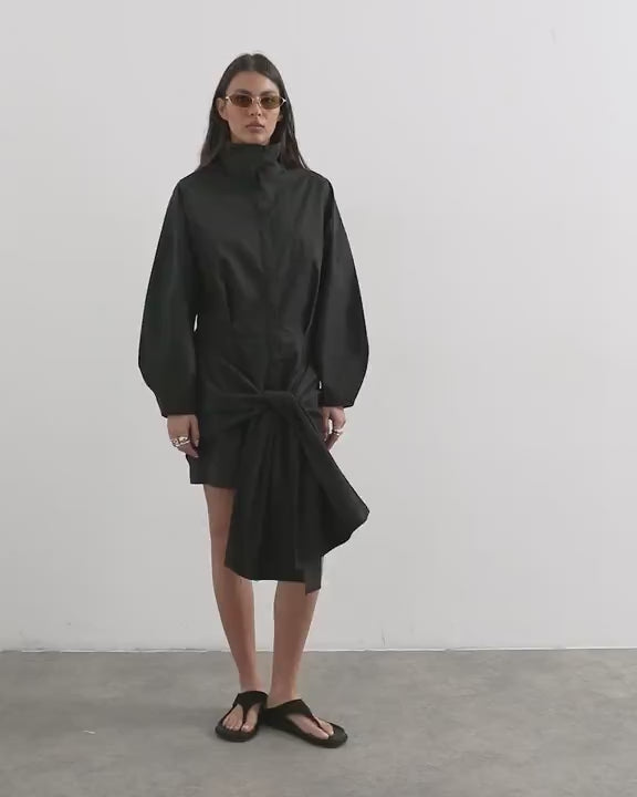 Robes de TopshopCette robe est confectionnée en tissu noir. Dotée d'un col montant, d'une patte de boutonnage dissimulée et de détails drapés, elle présente des épaules tombantes et une coupe classique.