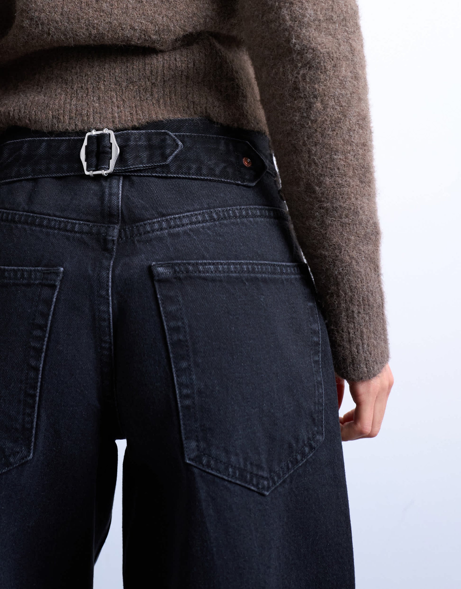 Jeans de TopshopLe jean Cinch présente une coupe taille basse et une jambe ample arrivant à la cheville. Confectionné en denim non extensible noir délavé, il est doté de passants de ceinture, de cinq poches et d'une ceinture ajustable à l'arrière.