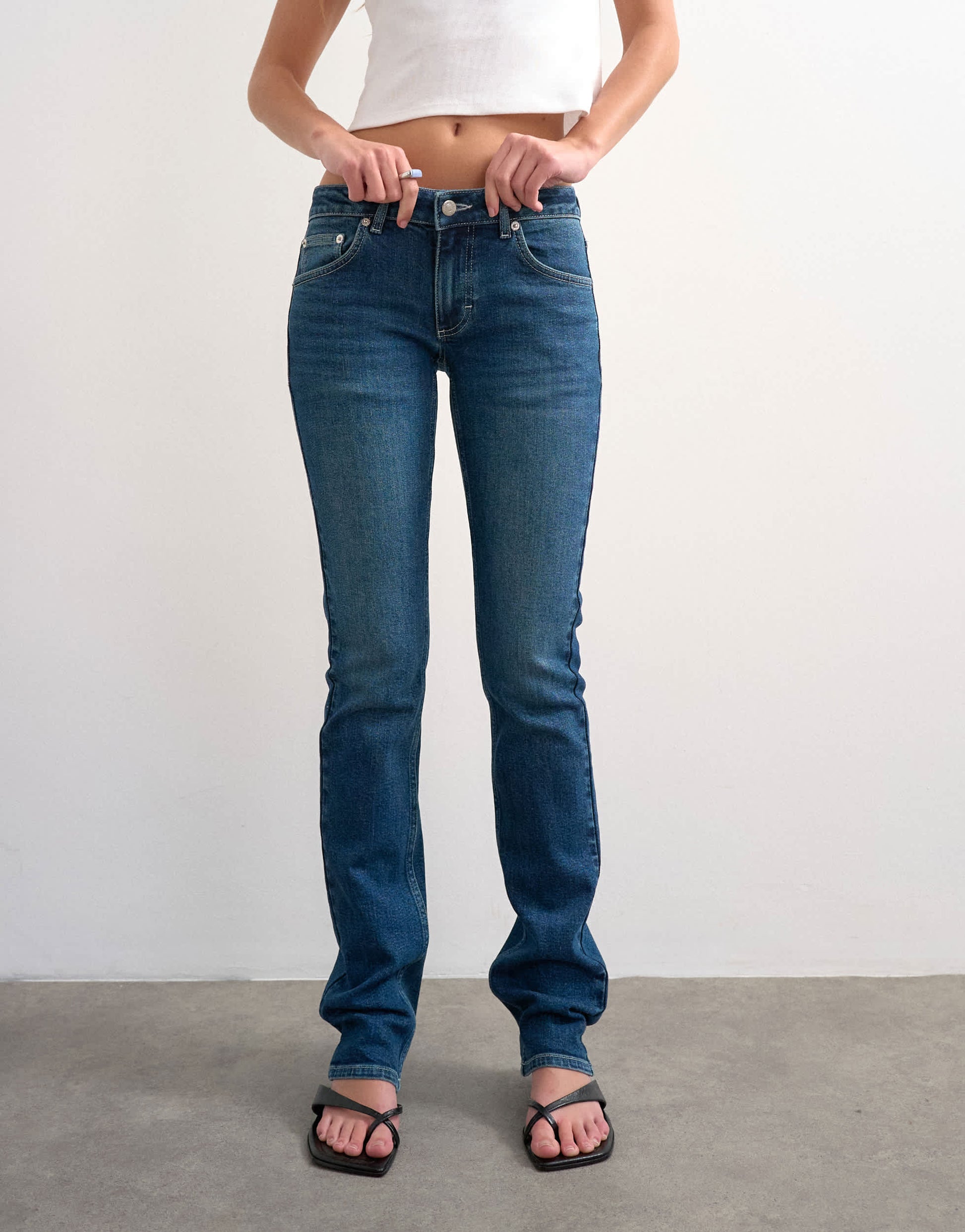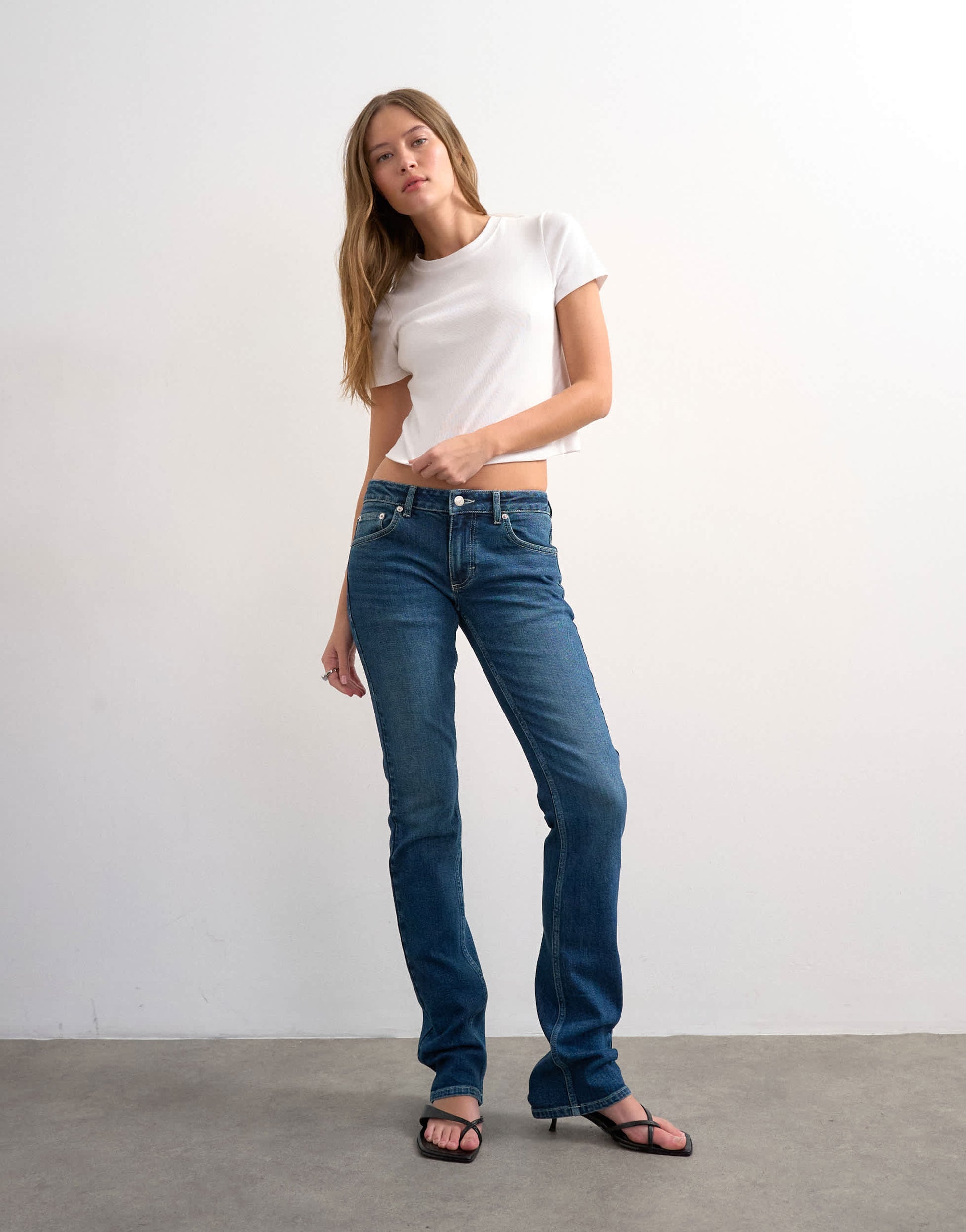 Jeans de TopshopCe jean présente une taille basse et une coupe slim qui s'évase à la cheville. Doté de passants de ceinture, d'une braguette zippée et de cinq poches fonctionnelles, ce modèle est confectionné en denim stretch confortable d'un bleu profond.