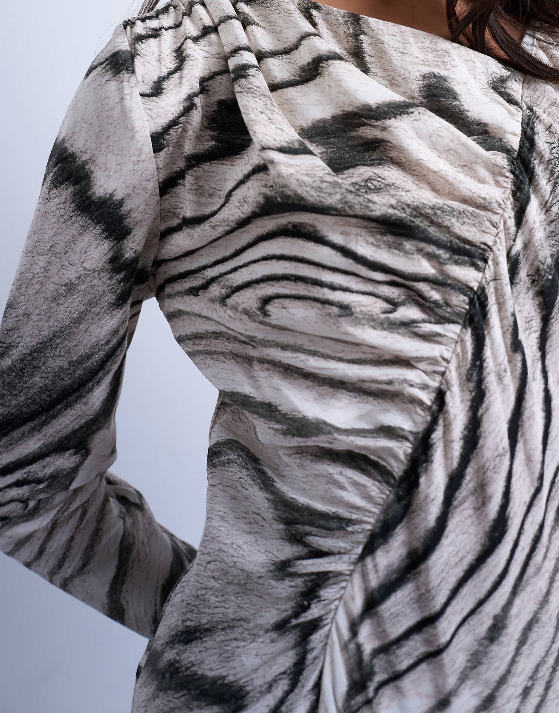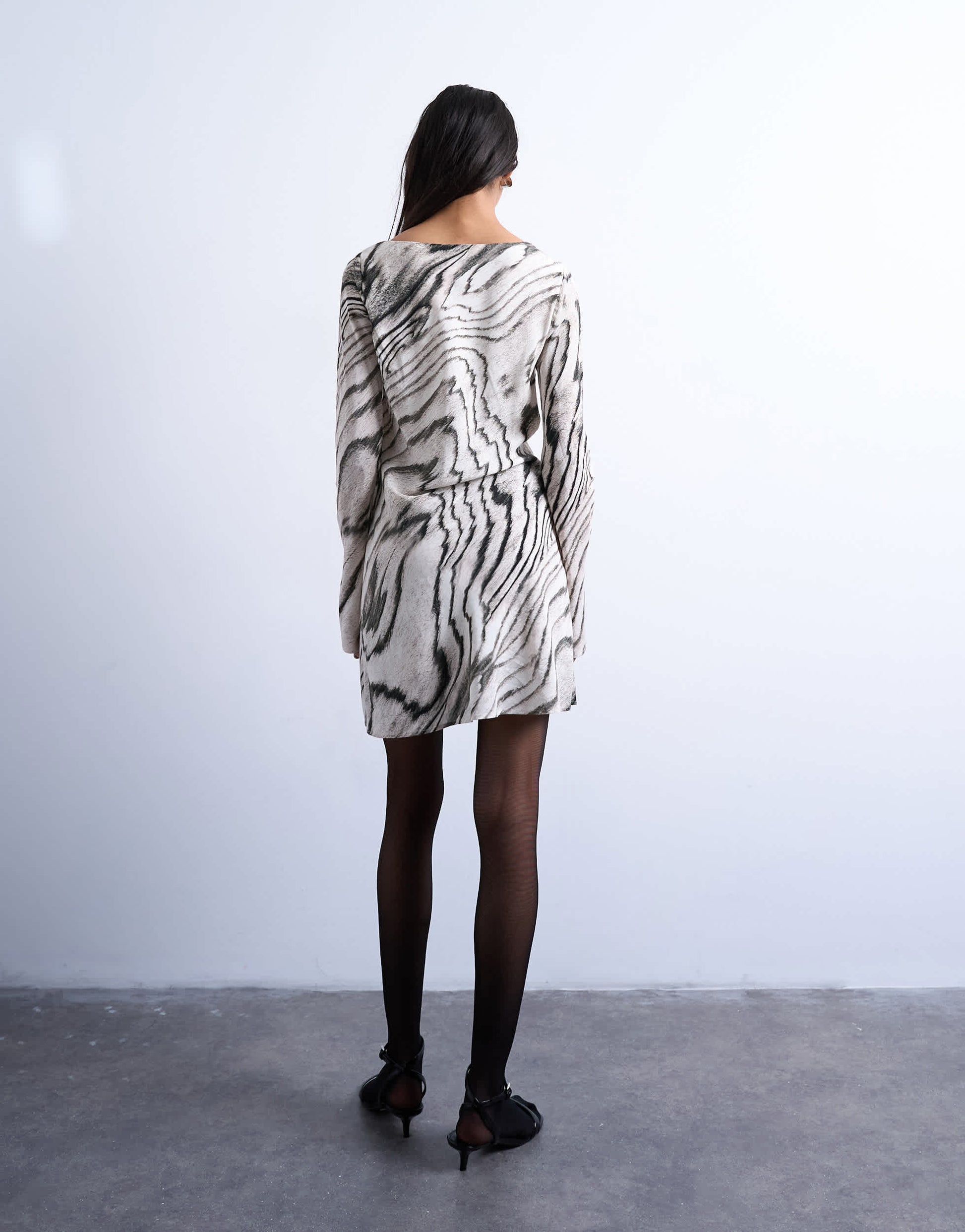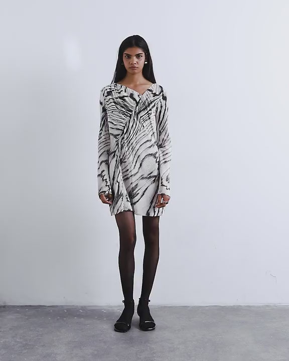 Robes de TopshopCette robe est confectionnée dans un tissu léger à imprimé abstrait. Elle présente une encolure asymétrique, des manches longues, des fronces et une coupe classique.
