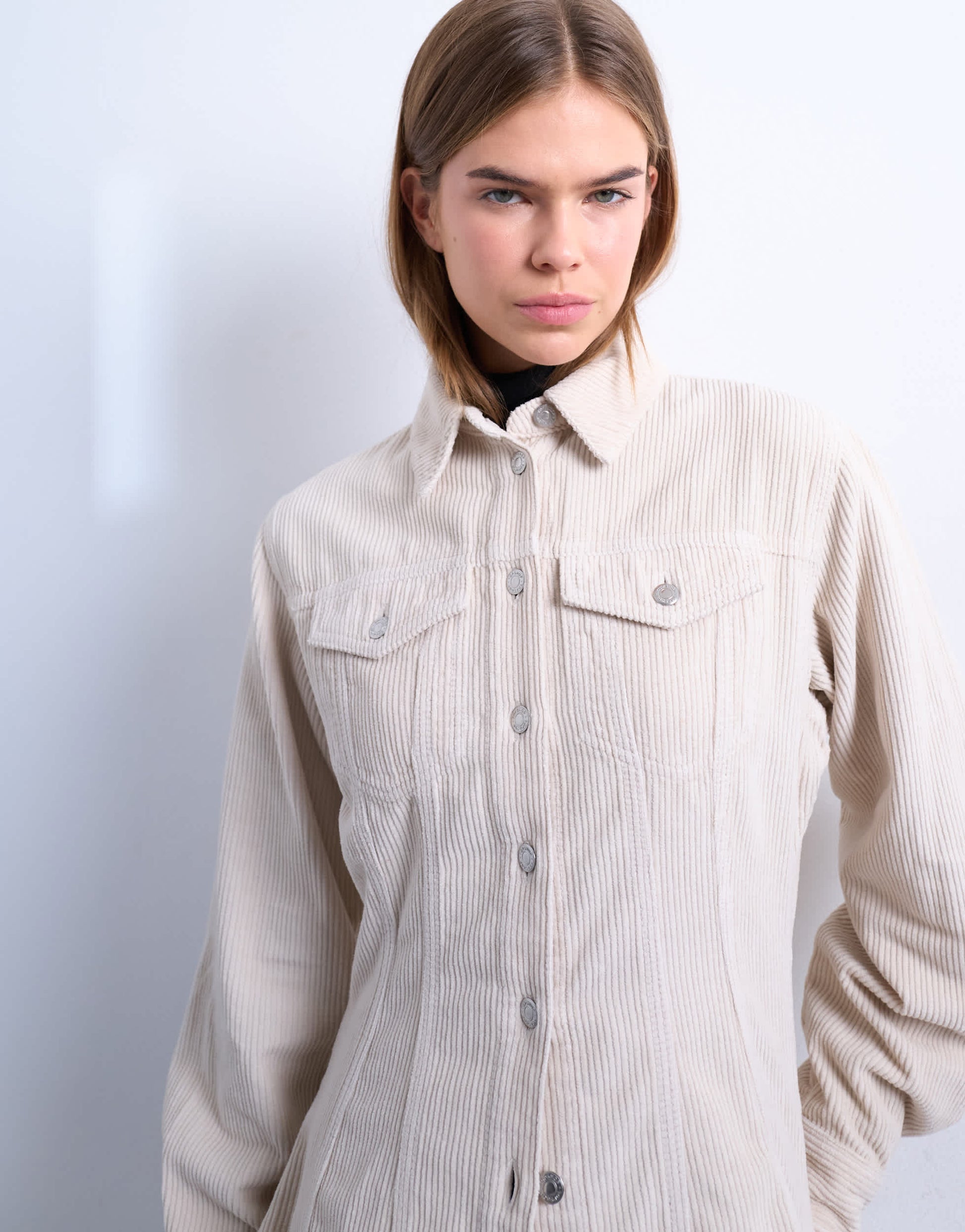 Hauts de TopshopCette veste est confectionnée en velours côtelé uni. Elle présente un col pointu, une fermeture boutonnée, des poches poitrine et une taille cintrée pour une silhouette flatteuse.
