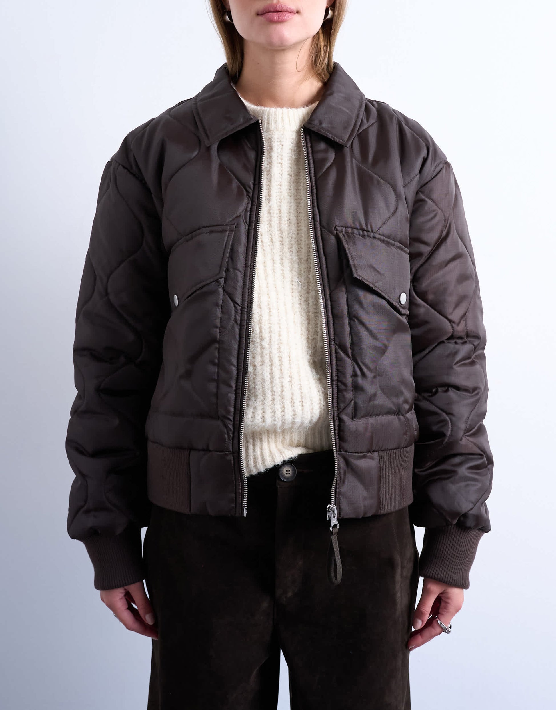 Manteaux et vestes TopshopCe blouson aviateur est confectionné en ripstop, un tissu tissé résistant à motif carré. Il présente un matelassage, un col classique, une fermeture zippée, deux poches latérales et des finitions côtelées. Sa coupe est courte et classique.