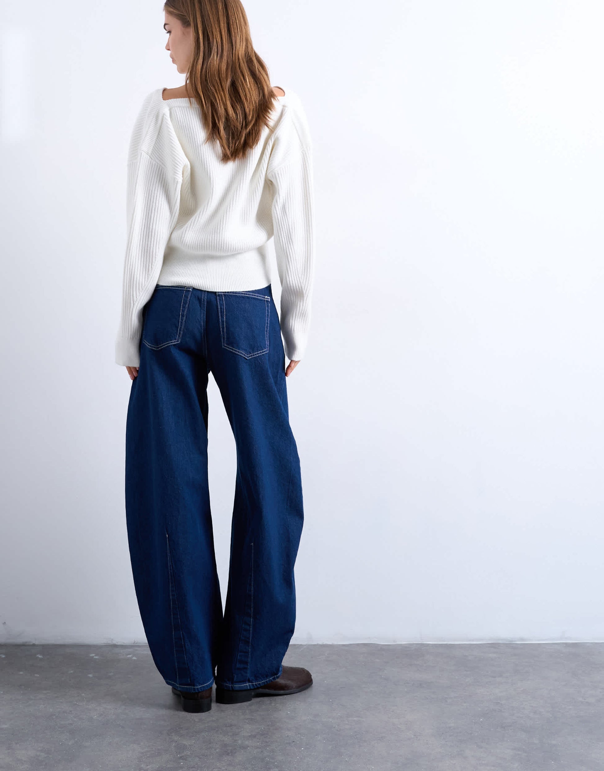 Jeans de TopshopLe jean Barrel est confectionné en denim non extensible. Ce modèle classique présente cinq poches, des passants de ceinture et un écusson de la marque. Il est doté d'une taille haute et d'une coupe fuselée.