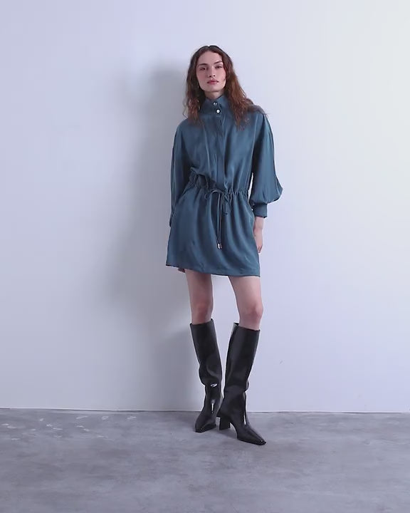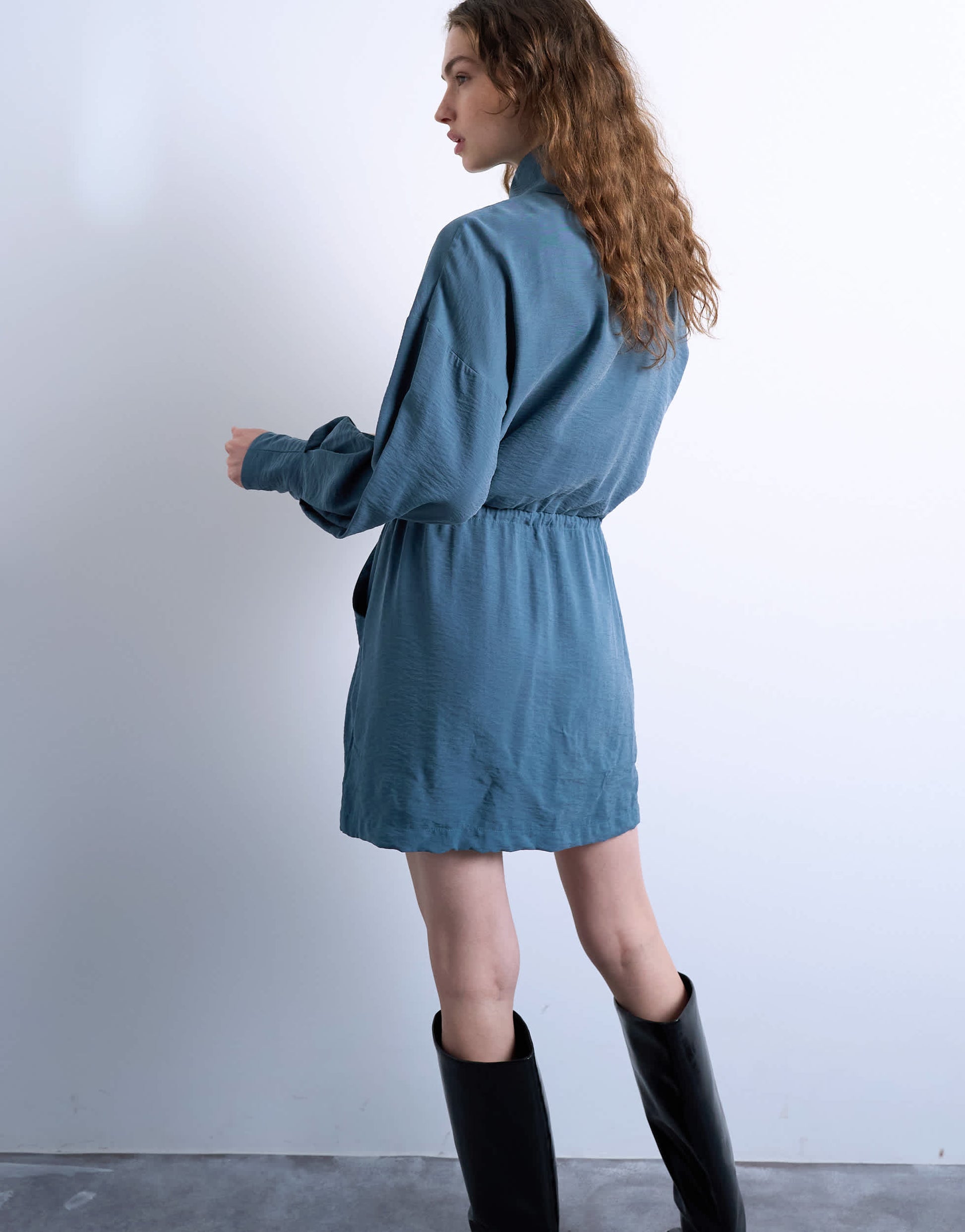 Robes de TopshopCette robe est confectionnée dans un tissu uni. Elle présente un col montant, des manches longues et une taille élastiquée. Sa coupe est classique.