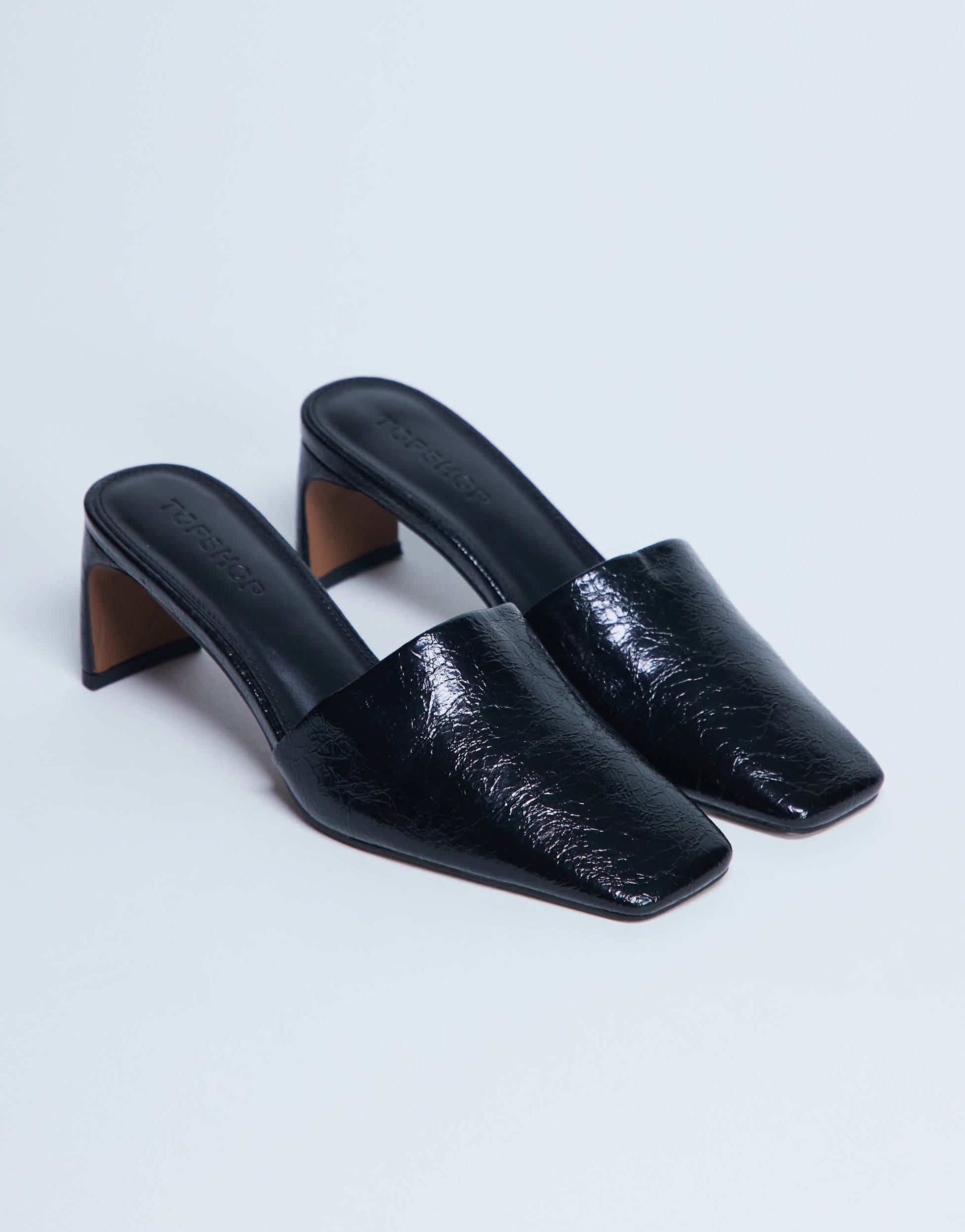 Chaussures TopshopCes mules Idea sont confectionnées dans un tissu verni brillant. Ce modèle à enfiler présente un bout carré et un talon bloc mi-haut.