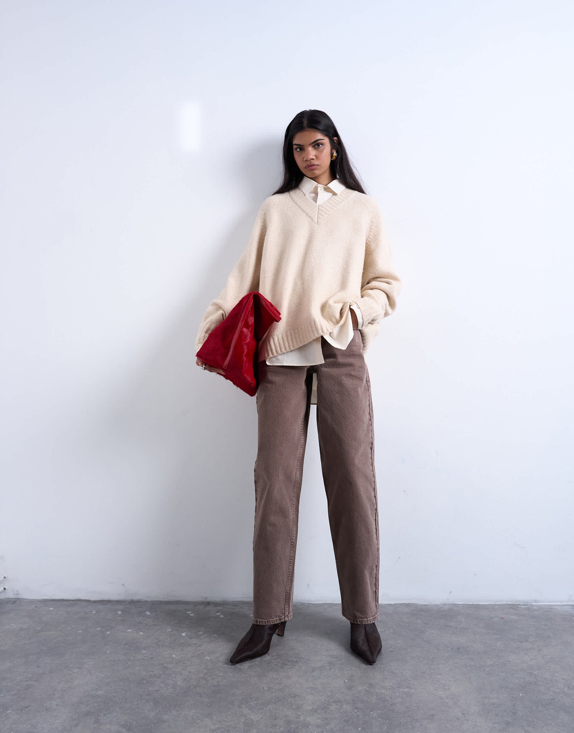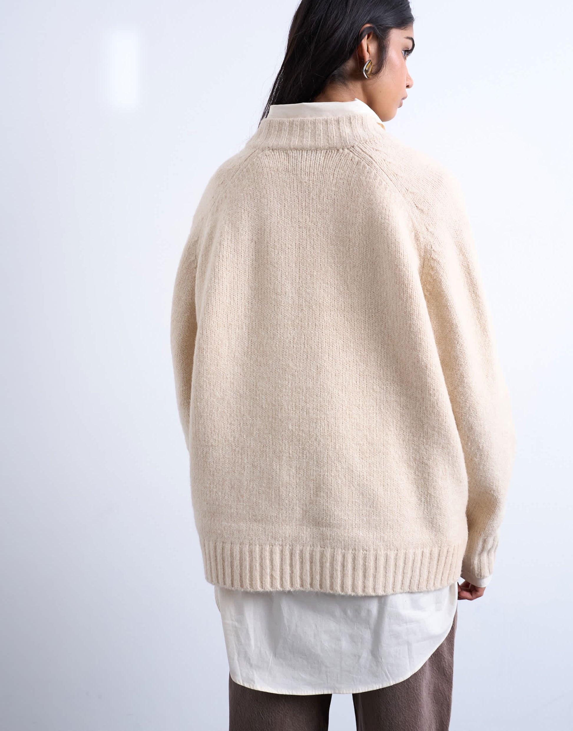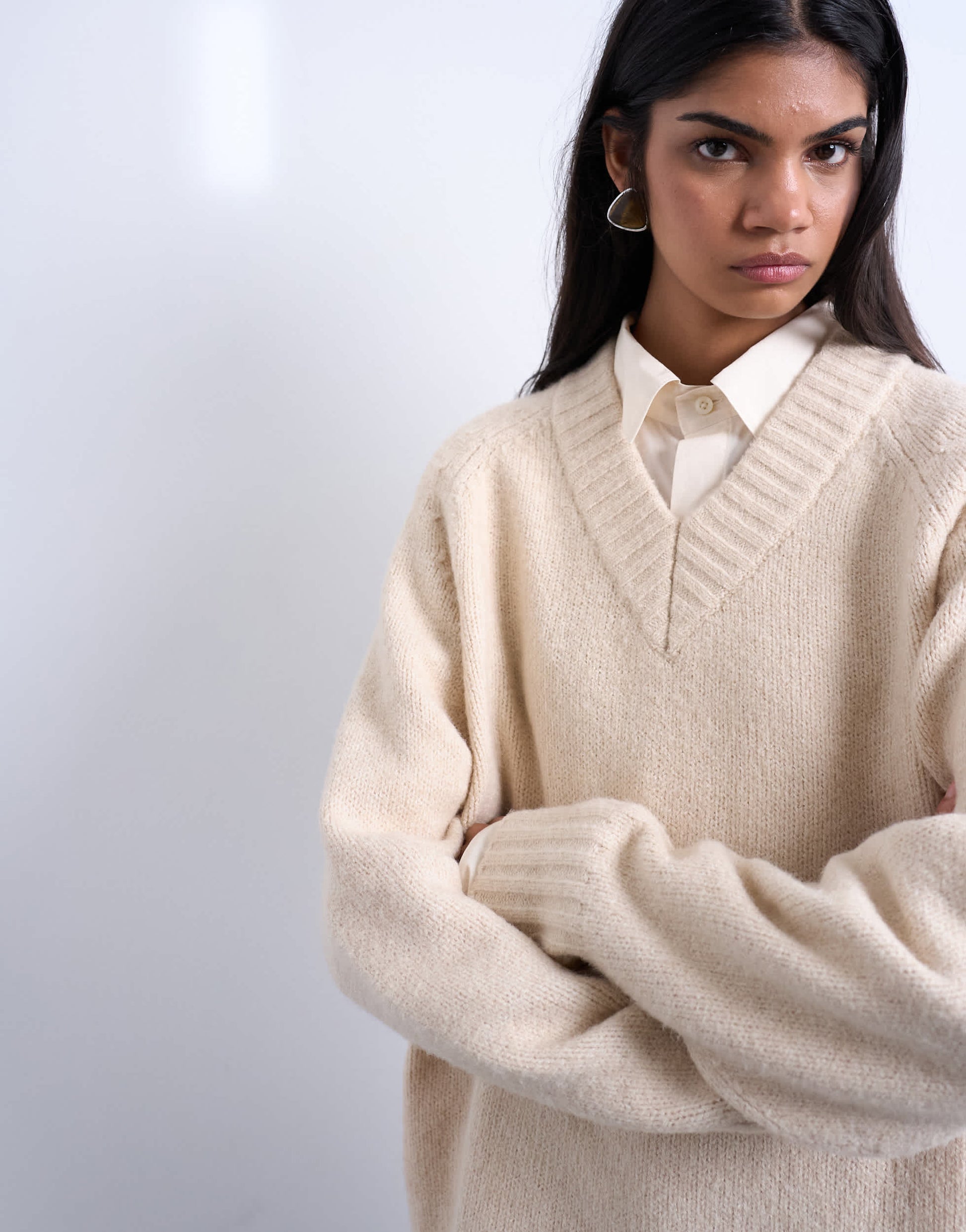 Pulls et gilets de TopshopCe pull en maille couleur crème polyvalente présente un col en V, des manches longues et des finitions côtelées. Sa coupe est ample.