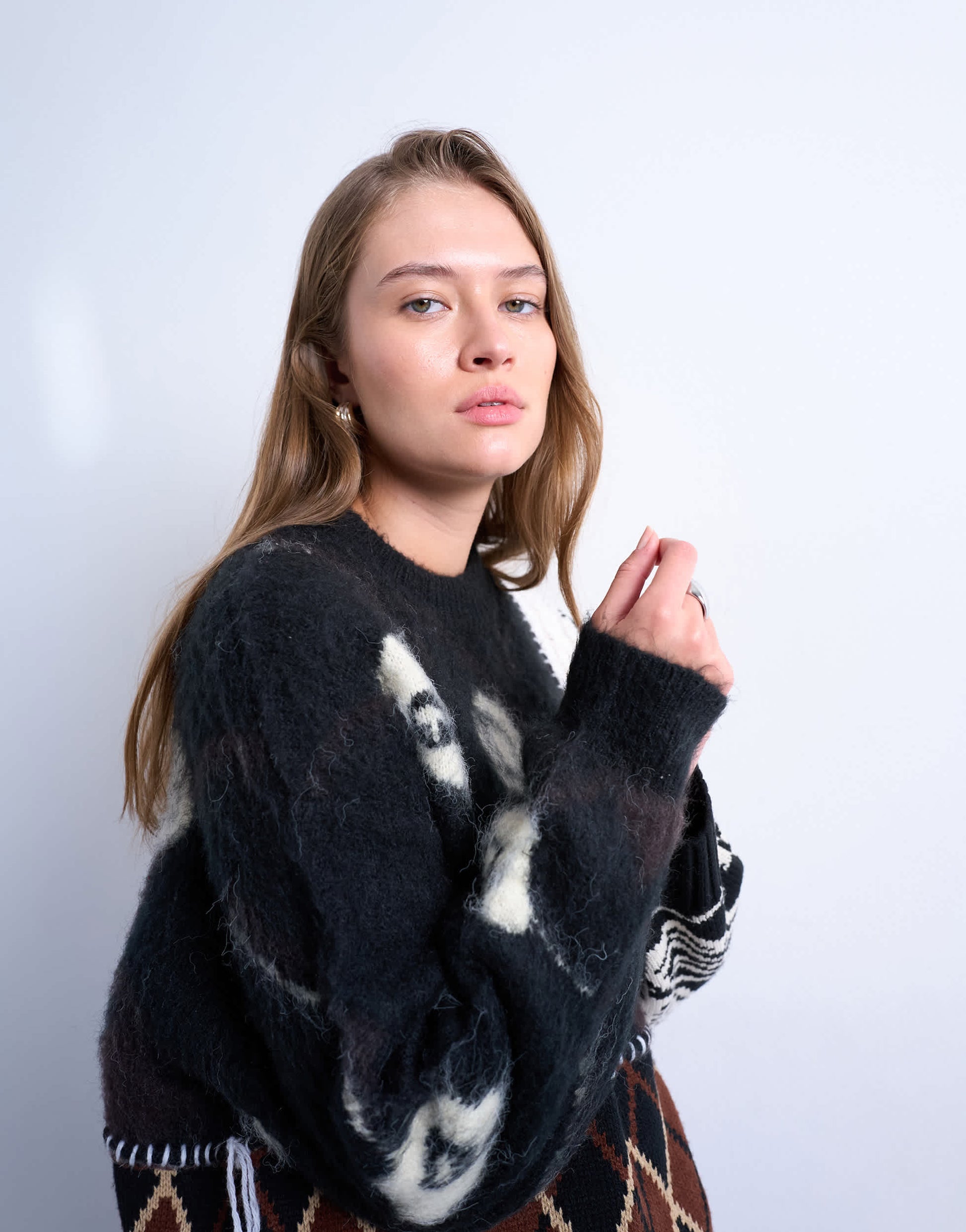 Pulls et gilets de TopshopCe pull présente un motif patchwork et est confectionné à partir d'une combinaison de différentes mailles. Il possède un col rond, des épaules tombantes, des finitions côtelées et une coupe décontractée.