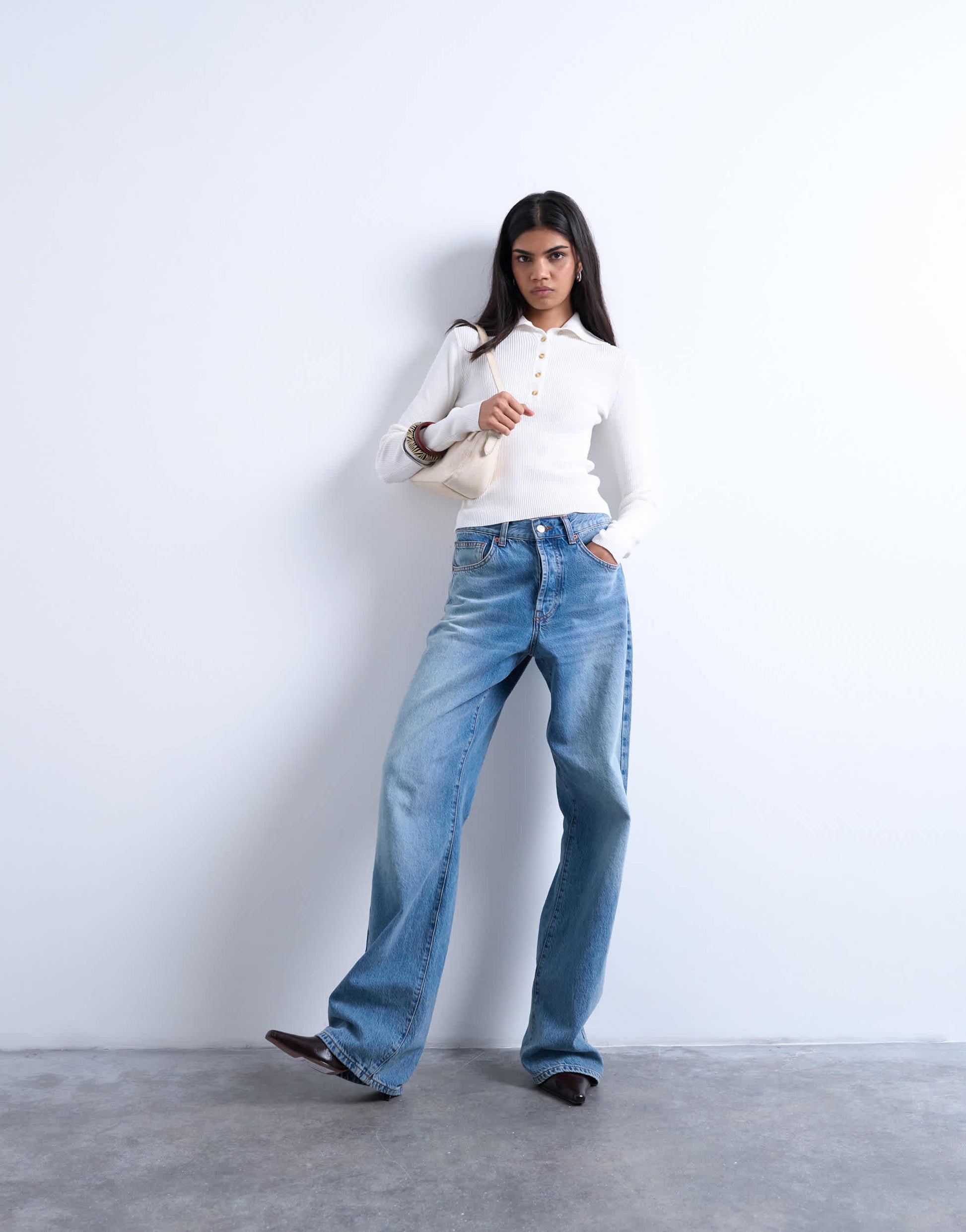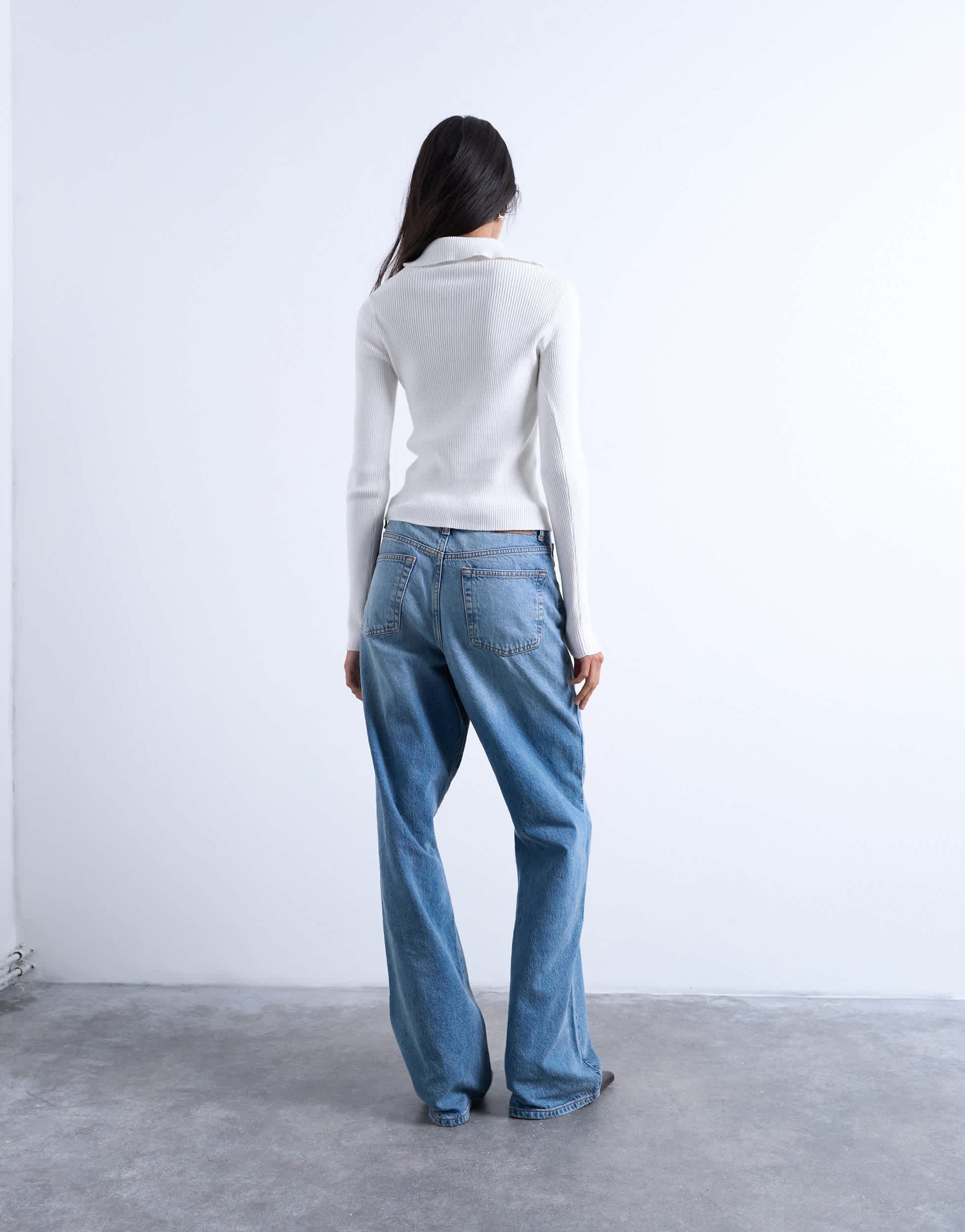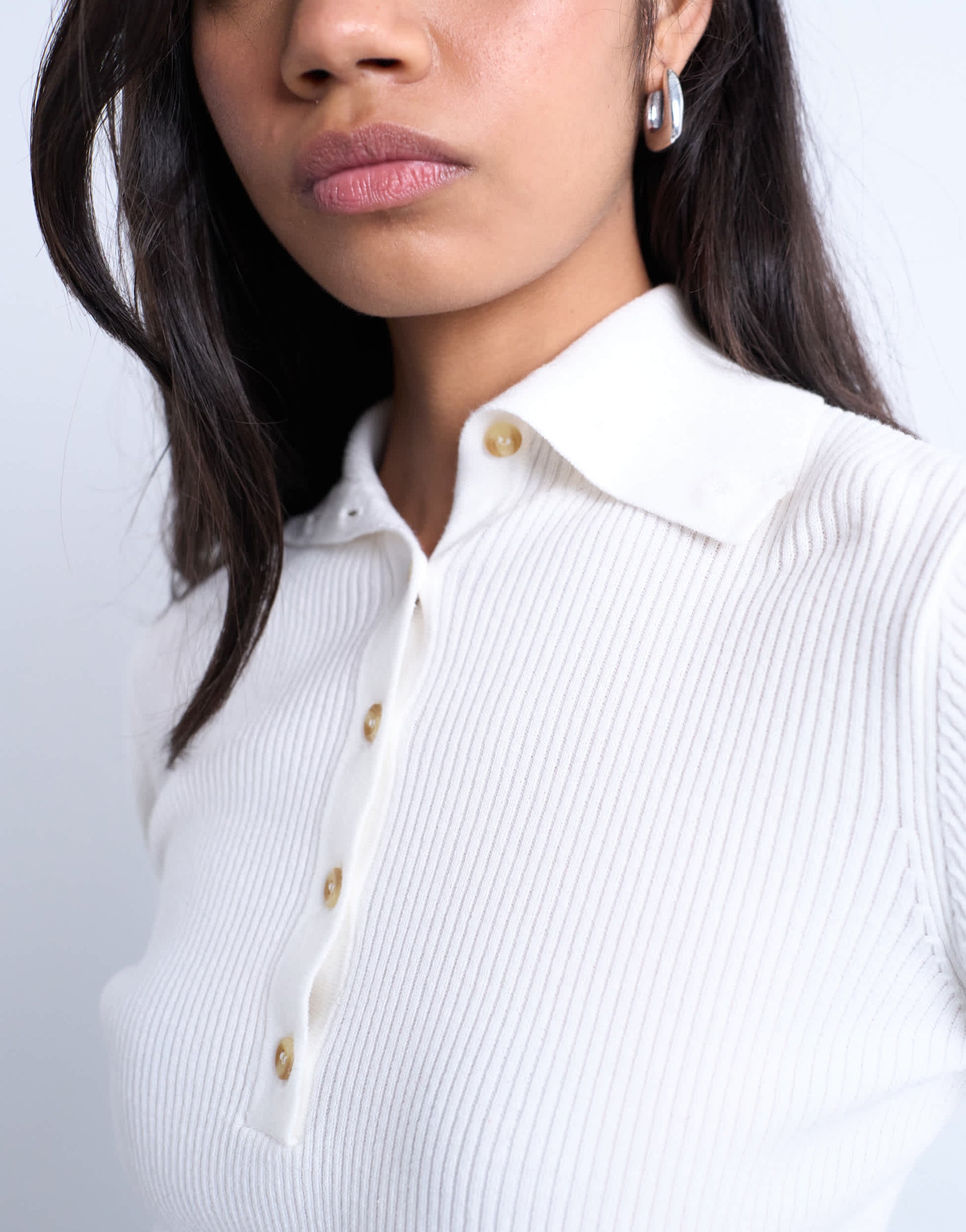 Hauts de Topshop- Ce polo est confectionné en maille côtelée. Il présente un col classique, une patte de boutonnage partielle, des manches longues et une coupe ajustée.