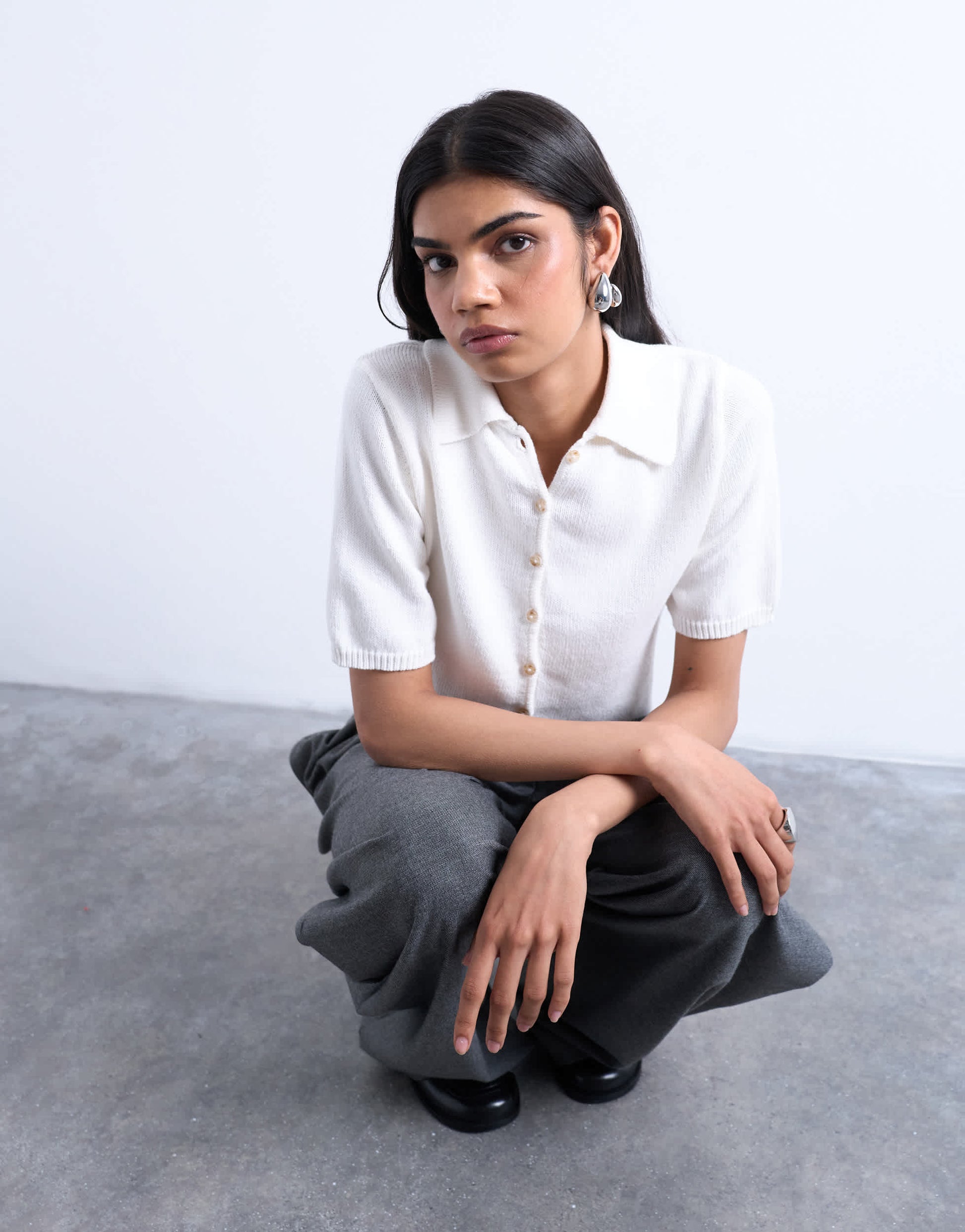 Pulls et gilets de Topshop- Ce polo est confectionné dans une maille fine et présente un design uni et polyvalent. Il est doté d'un col classique, d'une patte de boutonnage, de manches courtes, de finitions côtelées et d'une coupe droite.