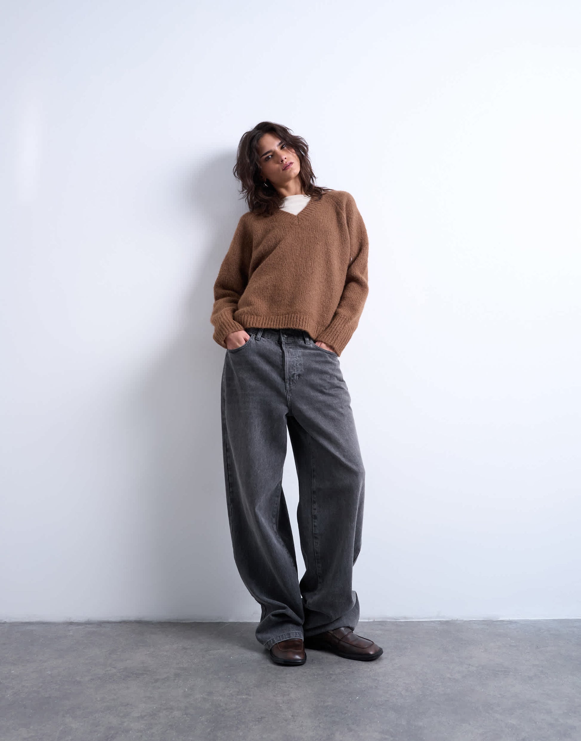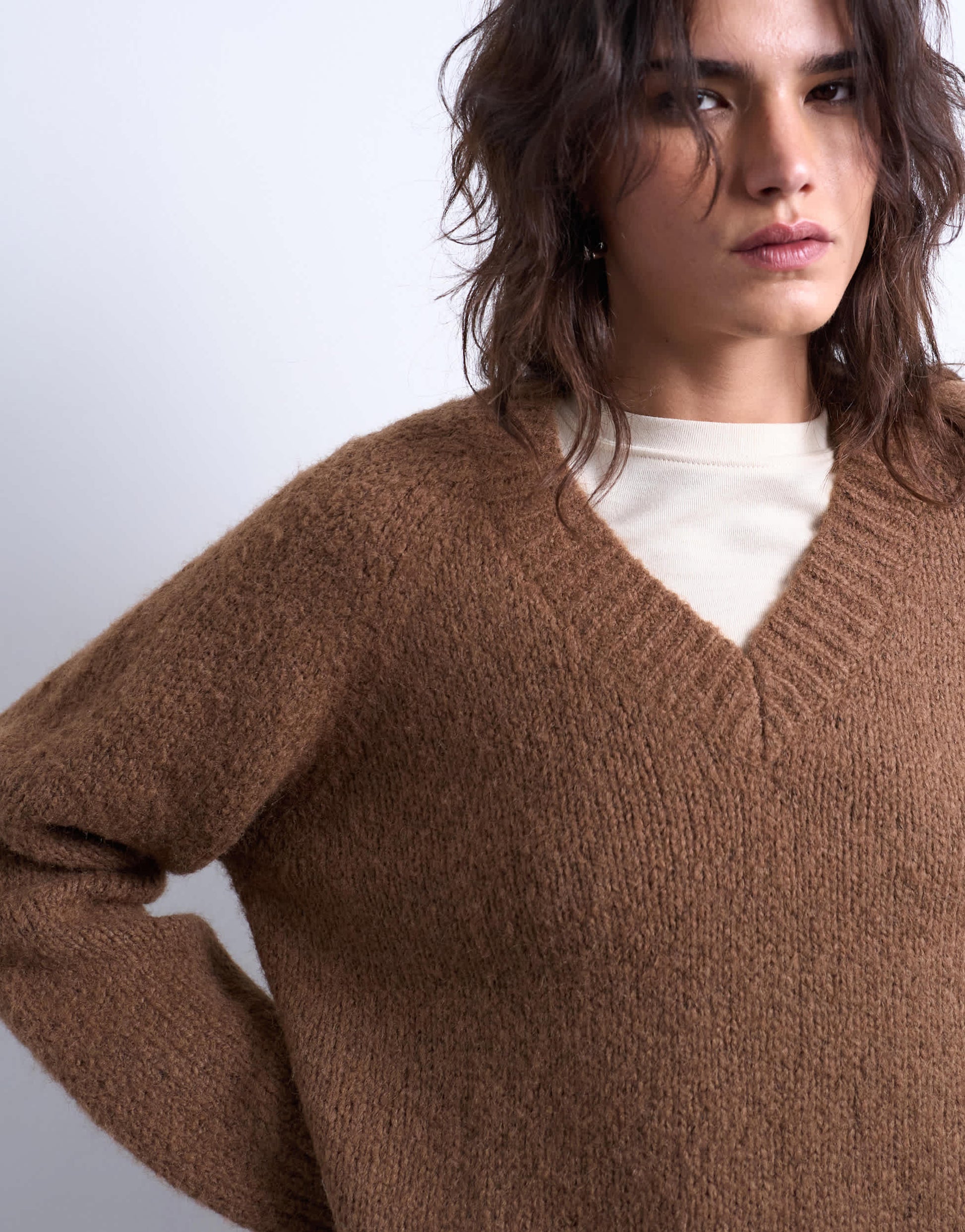 Pulls et gilets de TopshopCe pull est confectionné dans une maille duveteuse et présente un design uni et polyvalent. Il possède un col en V, des manches longues, des finitions côtelées et une coupe décontractée.