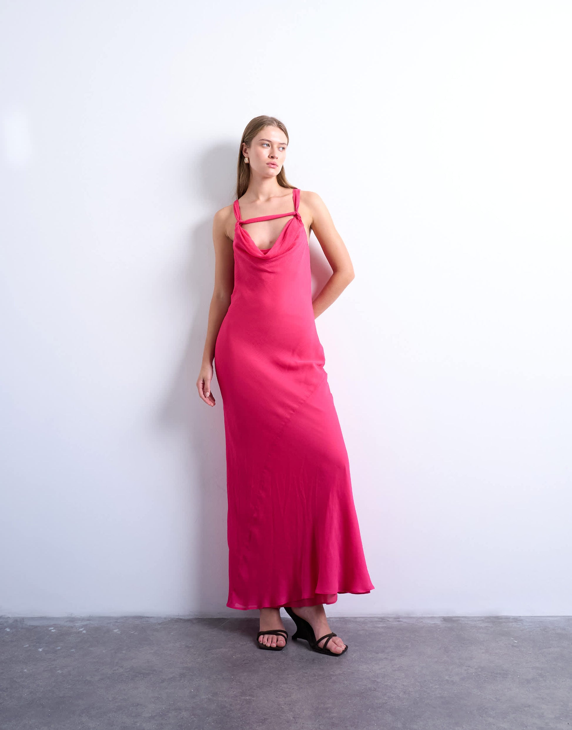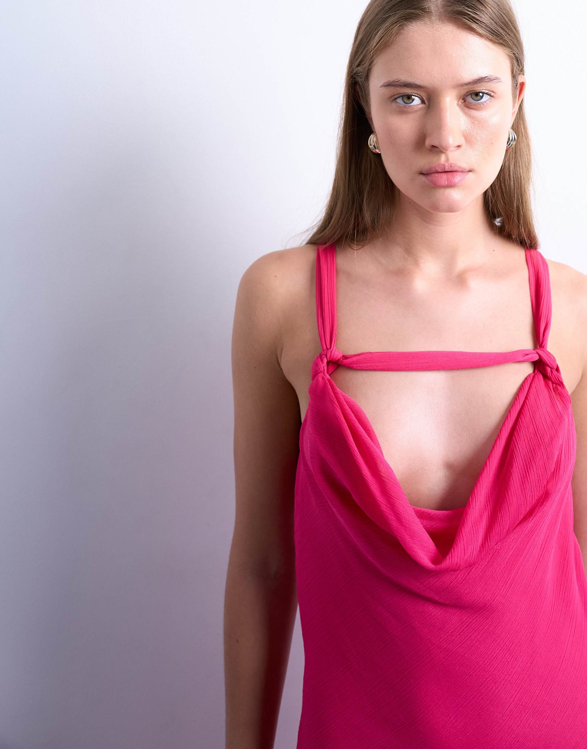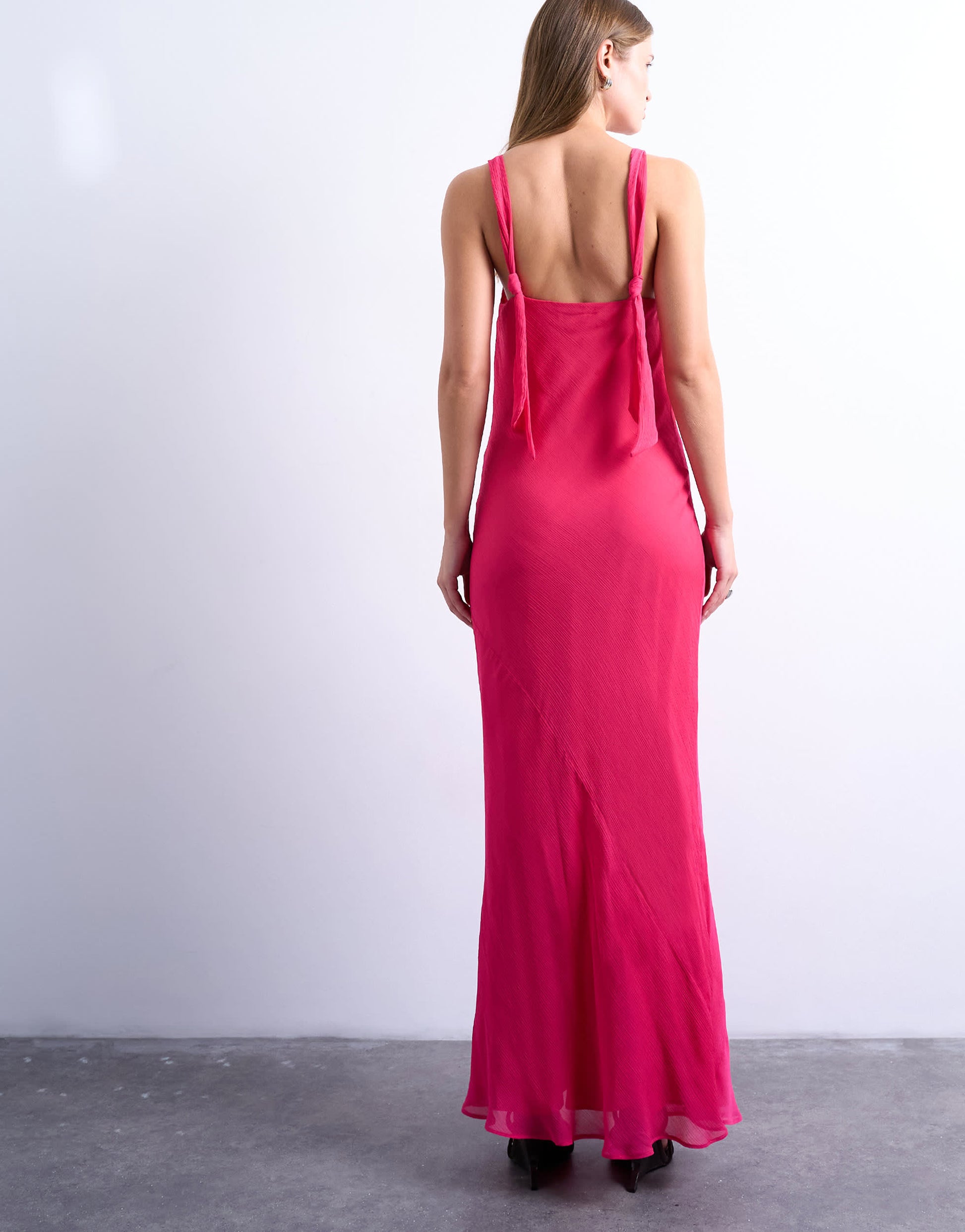 Robes de TopshopCette robe est confectionnée en mousseline fluide et transparente. Elle présente un col bénitier, des bretelles fixes ornées de nœuds et une coupe classique.