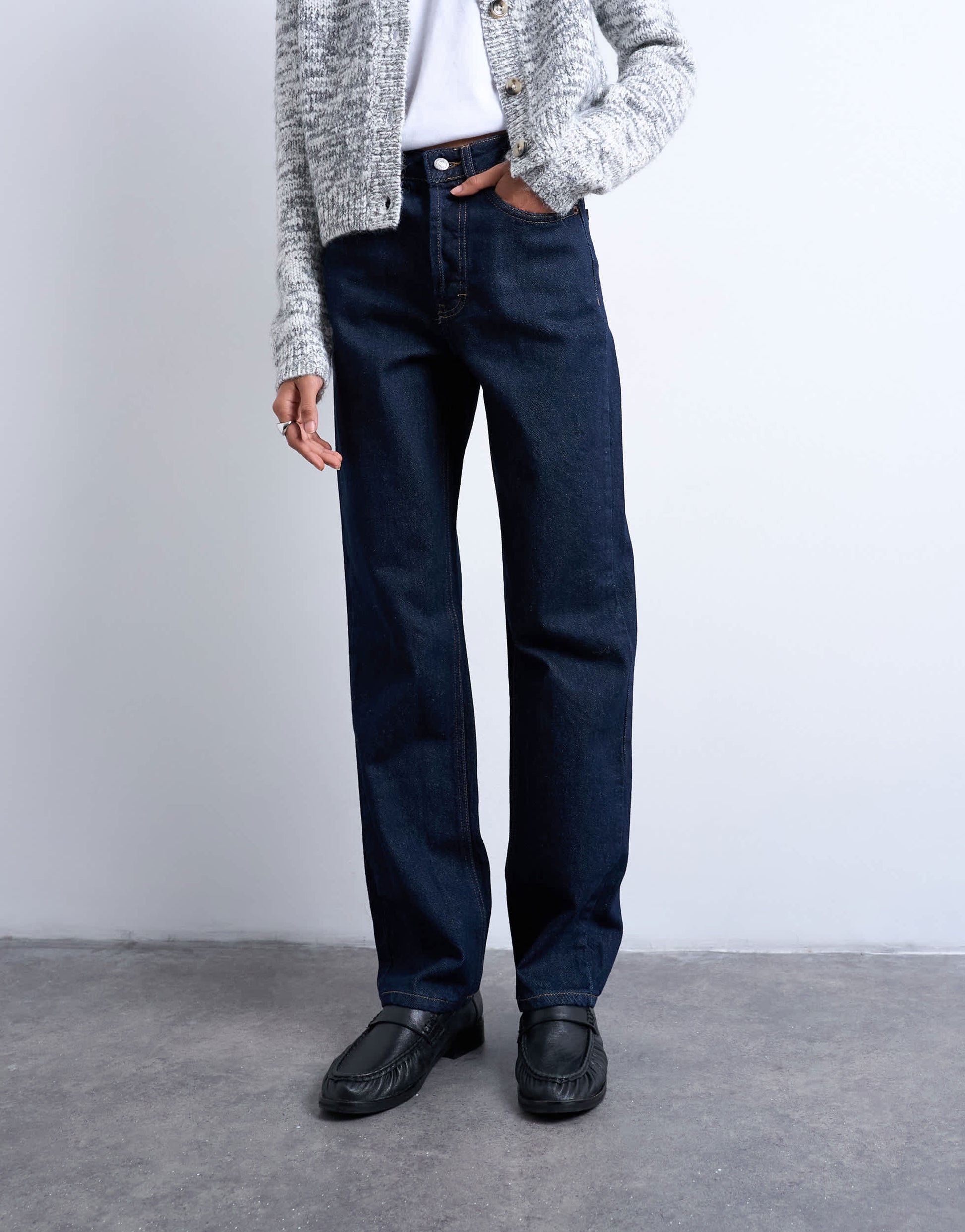 Jeans de TopshopLe jean Kort est confectionné en denim non extensible, délavage indigo. Il est doté de passants de ceinture, de cinq poches, d'une taille haute et d'une coupe droite pour une allure décontractée.