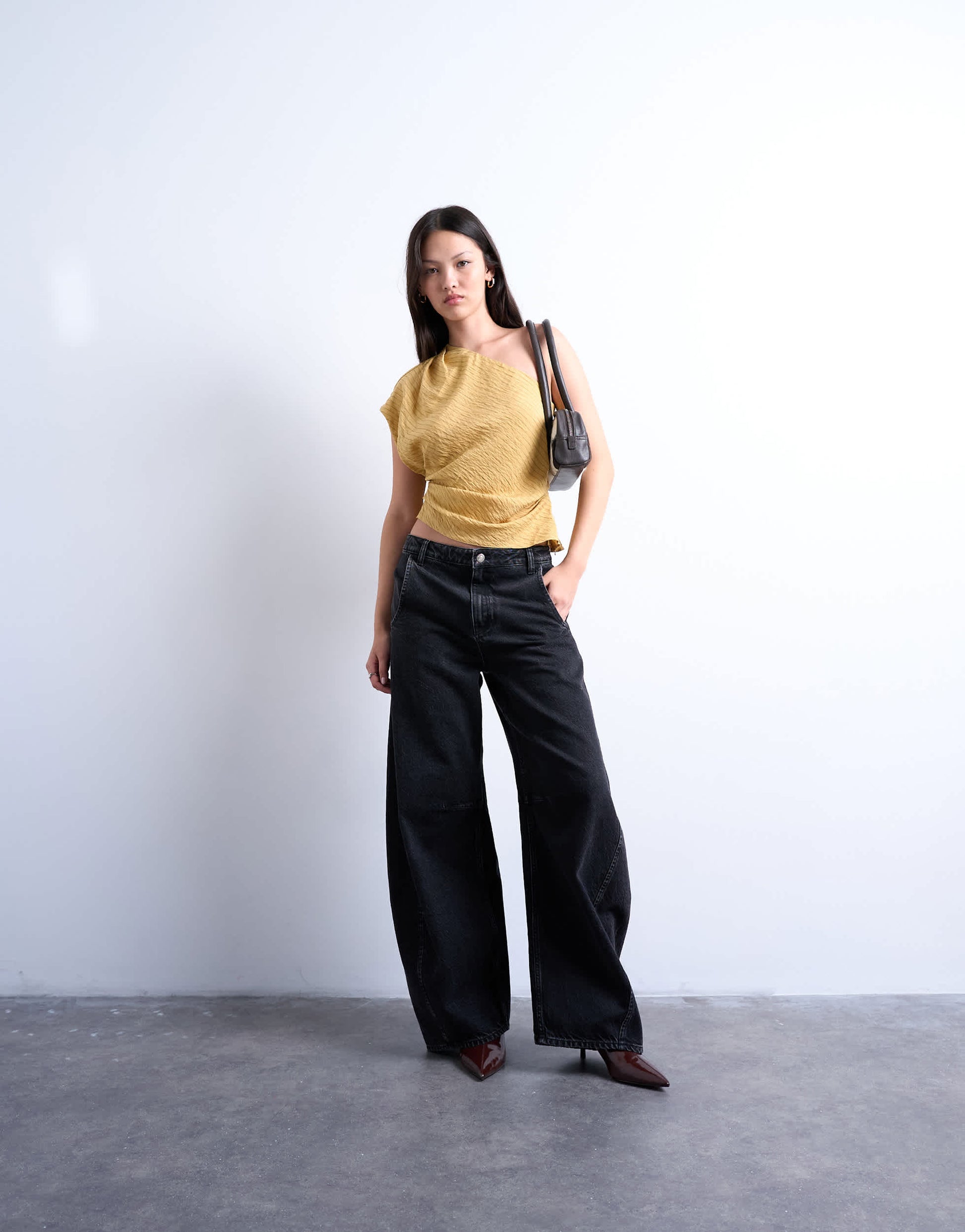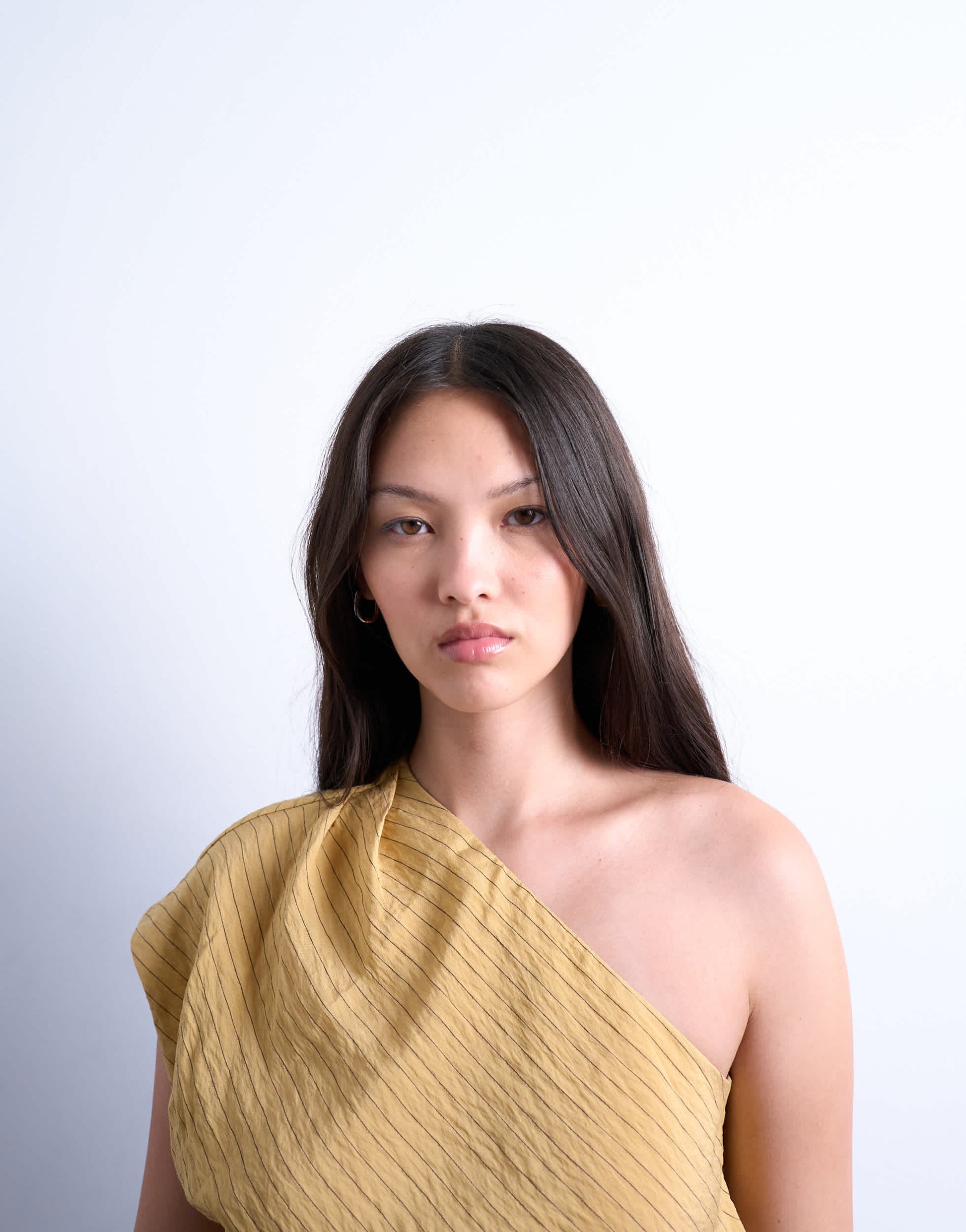 Hauts de TopshopCe top est confectionné dans un tissu tissé légèrement texturé à rayures. Il présente une épaule dénudée, une manche courte, des fronces et un ourlet asymétrique. Sa coupe est classique.