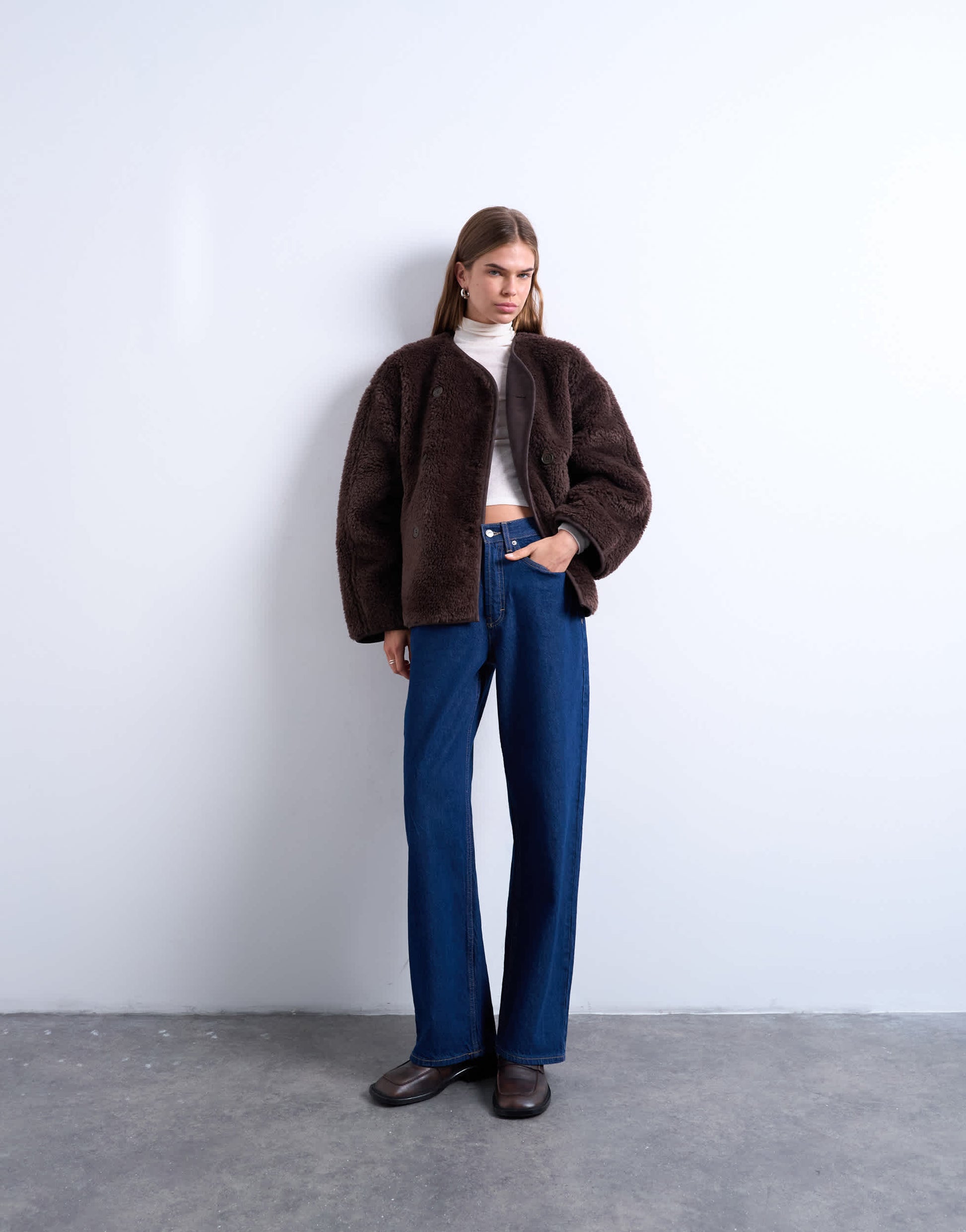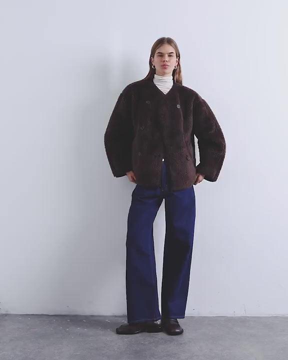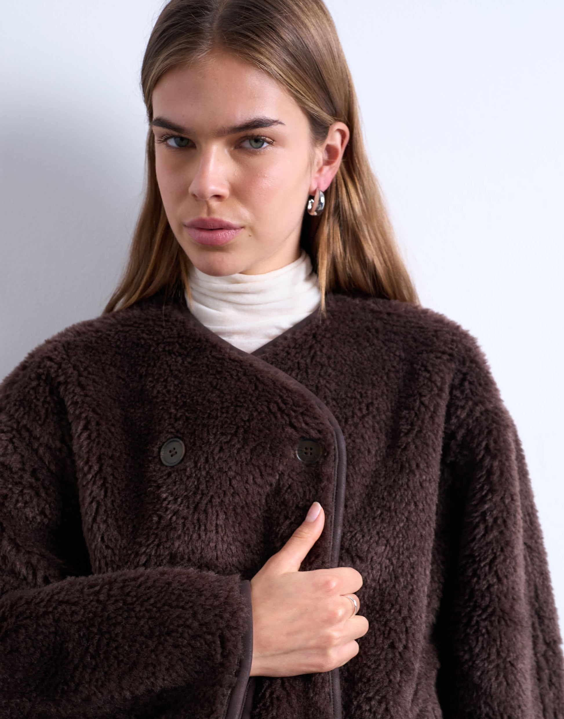 Manteaux et vestes TopshopCette veste en maille borg confortable présente un col en V, une patte de boutonnage croisée, des manches bouffantes et des poches latérales. Sa coupe est légèrement structurée et ample.