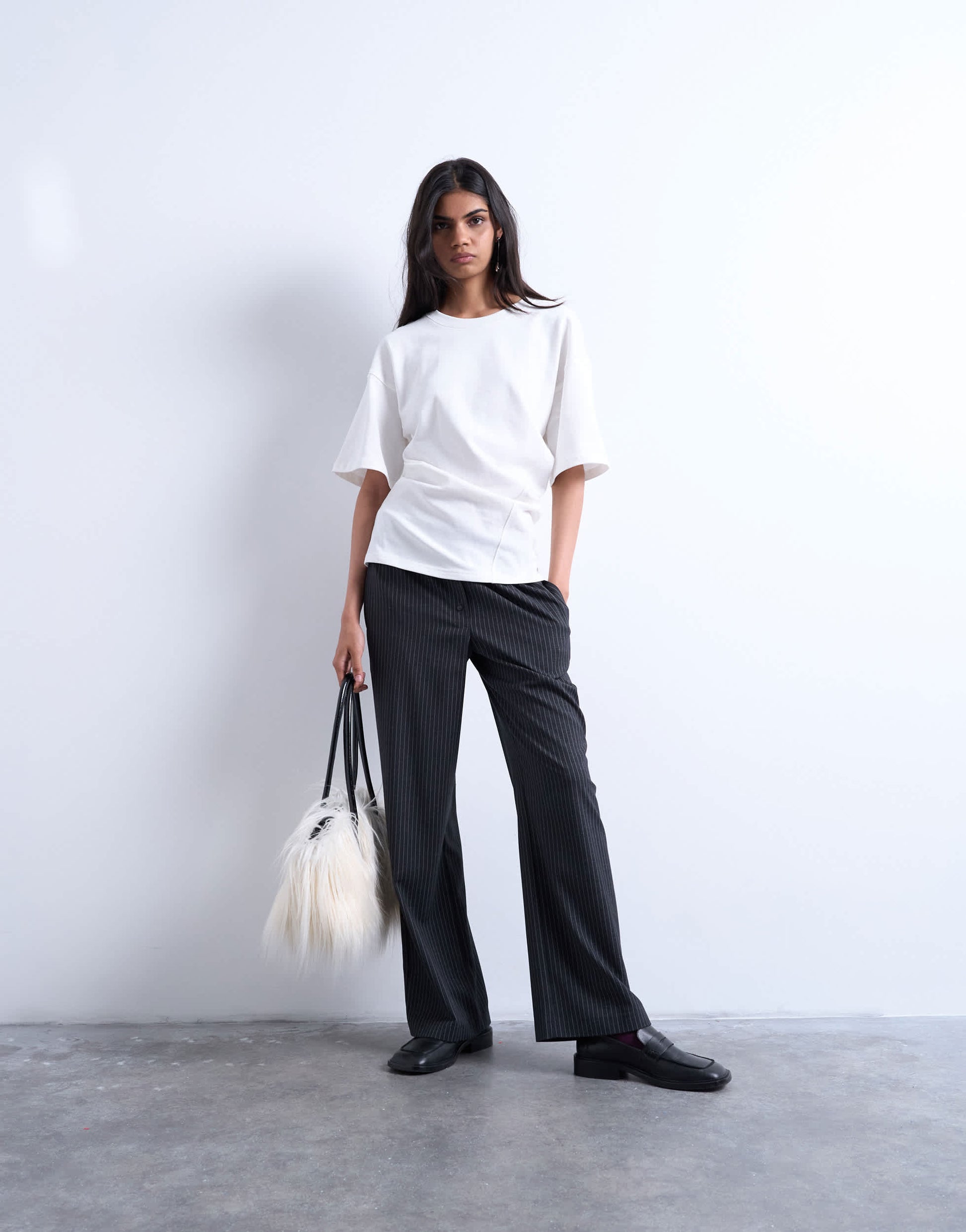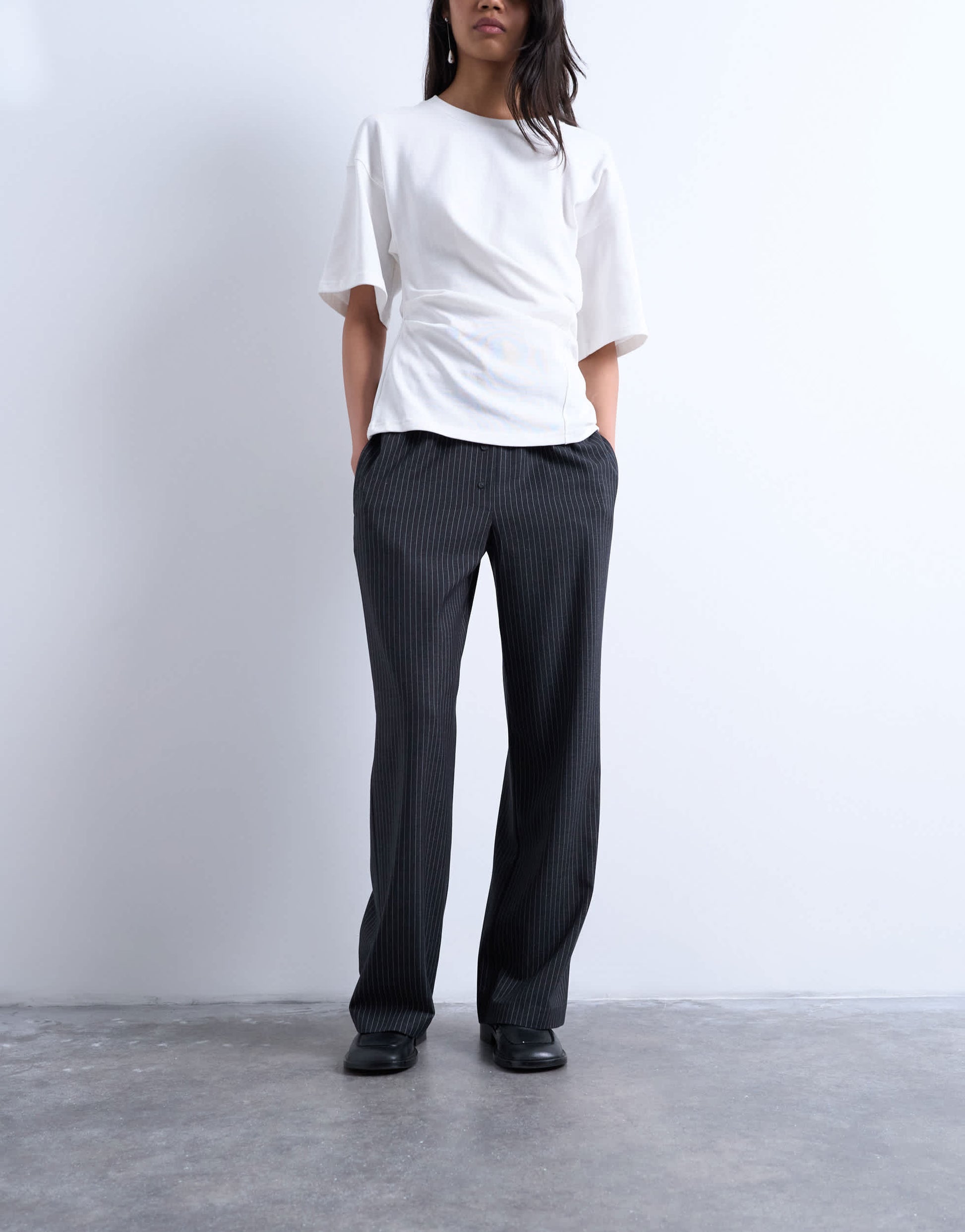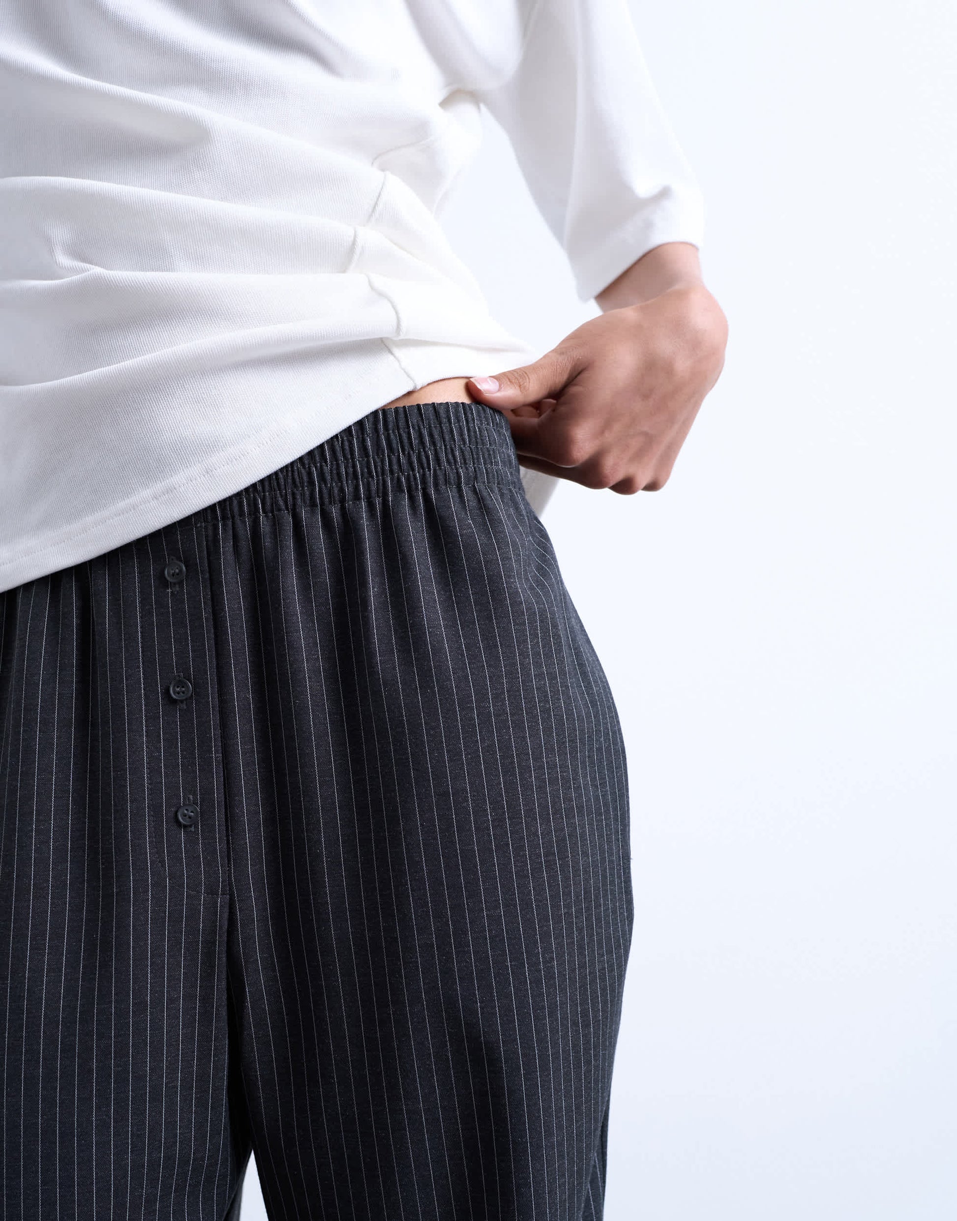 Pantalon de jogging Topshop- Ce pantalon de jogging est confectionné dans un tissu sergé semi-structuré à fines rayures. Il possède une taille élastiquée façon boxer, des poches latérales et une coupe ample.