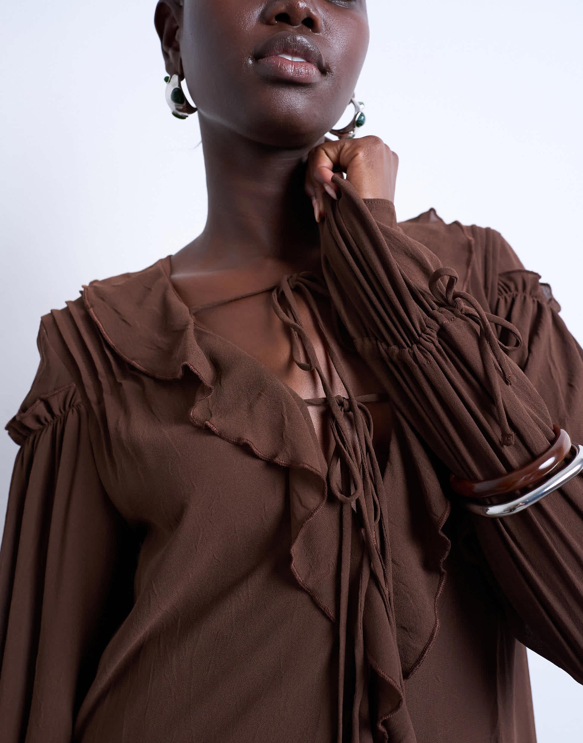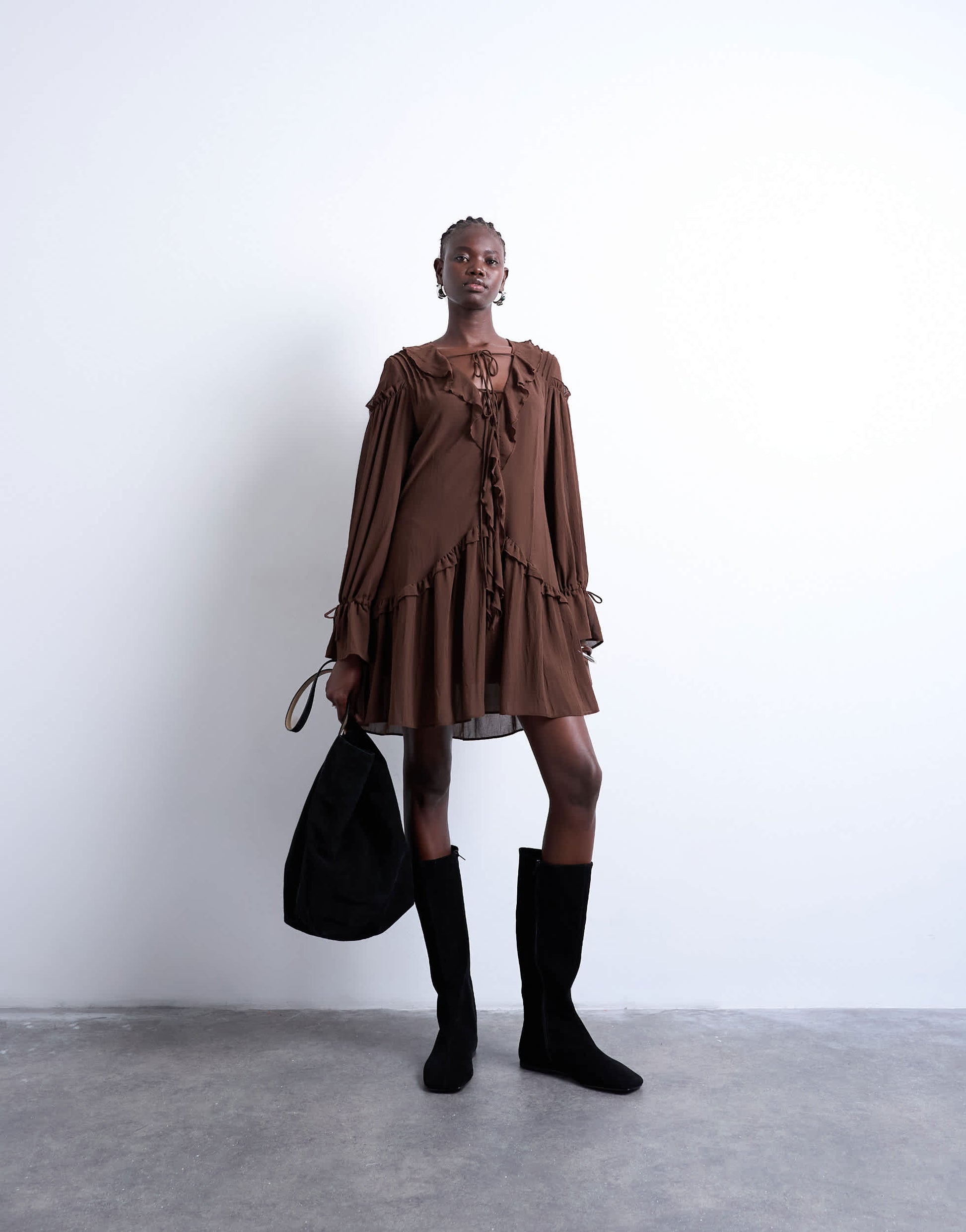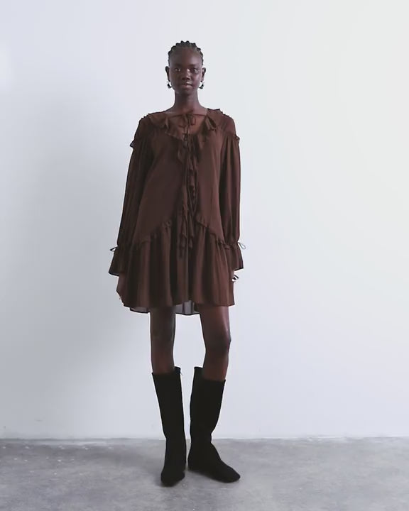 Robes de TopshopCette robe est confectionnée dans un tissu doux et fluide. Elle présente des volants, une fermeture à nouer et des manches longues. Sa coupe est classique.
