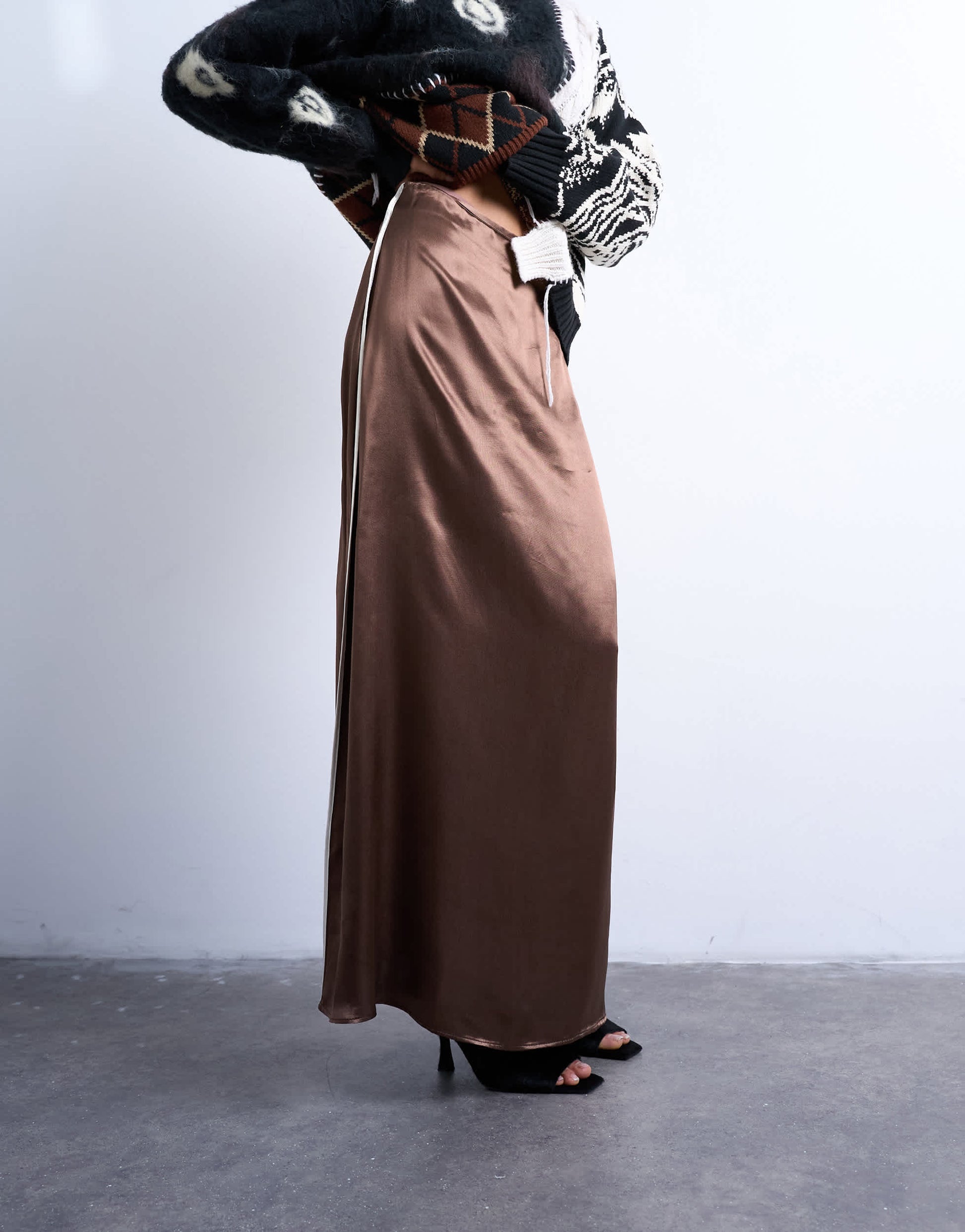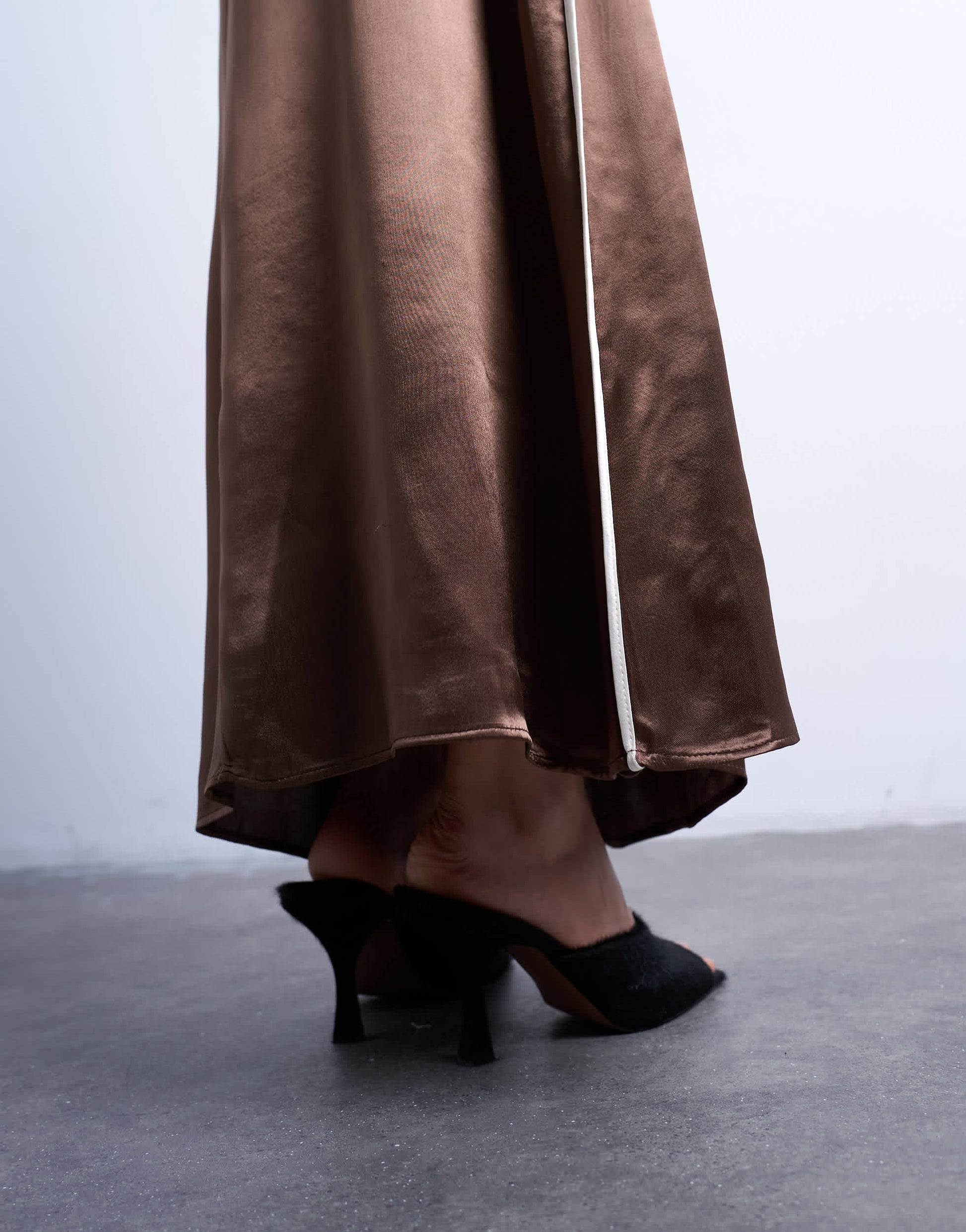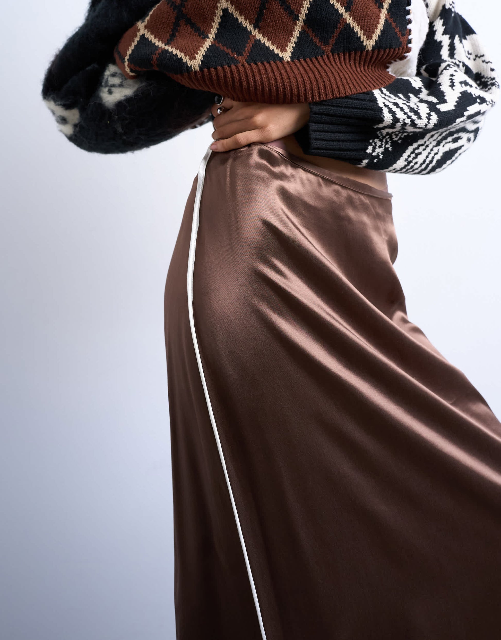 Jupes de chez TopshopCette jupe est confectionnée dans un tissu brillant, aspect satiné. Elle présente une taille haute, un passepoil contrastant et une coupe en biais.