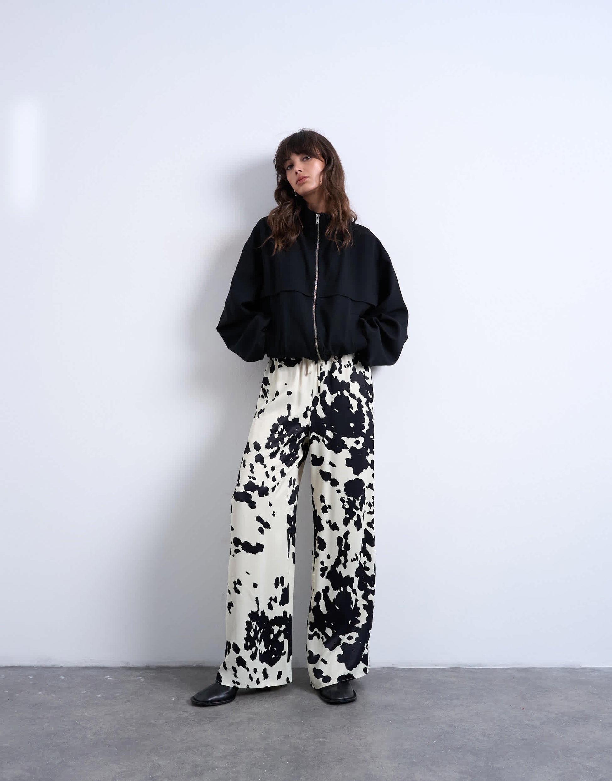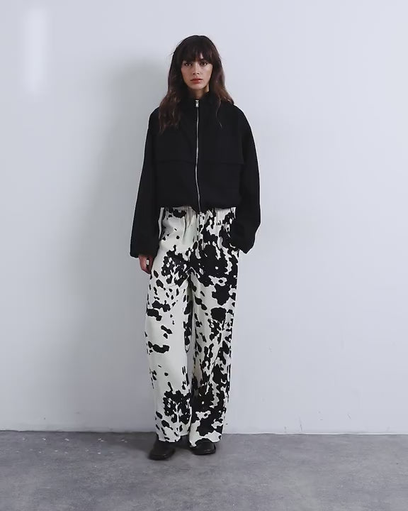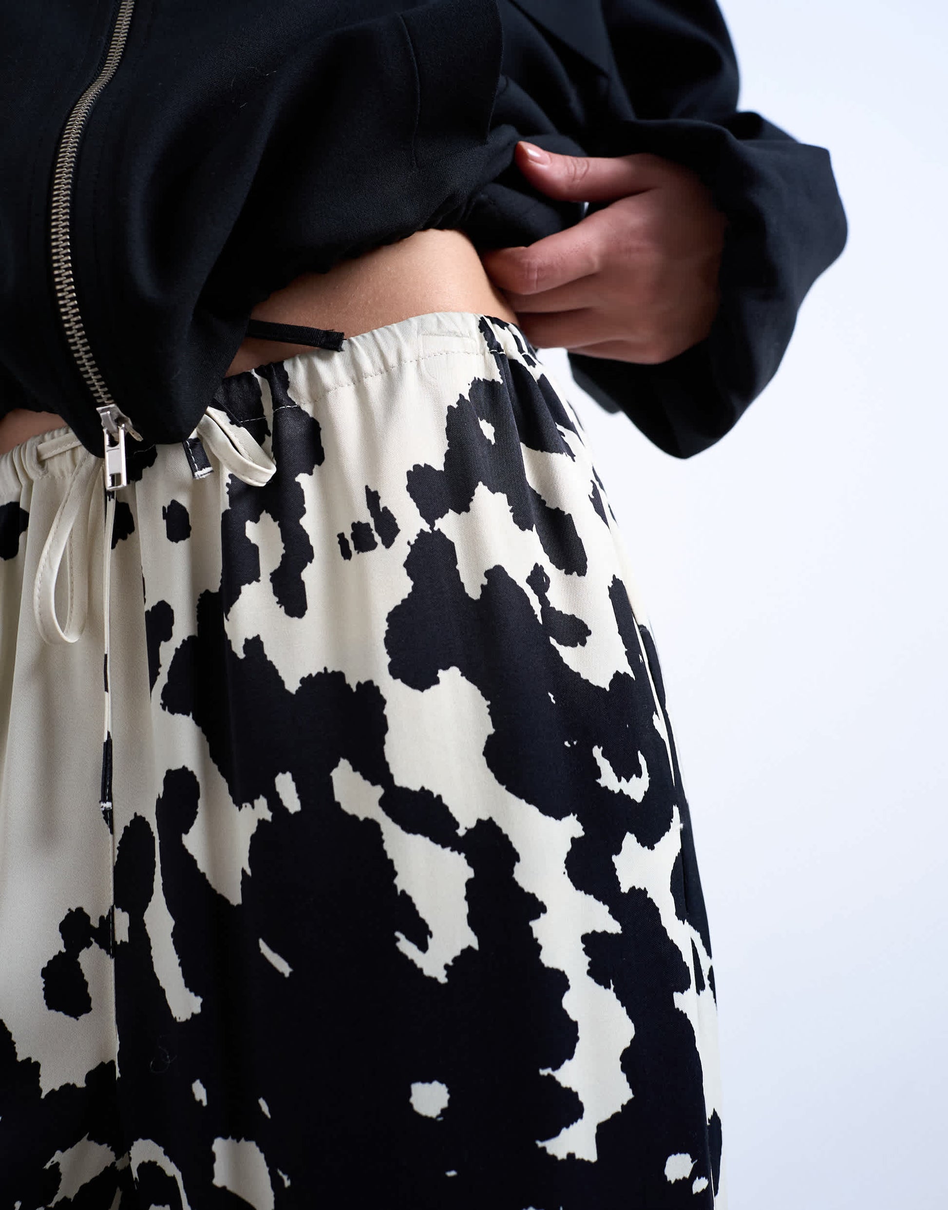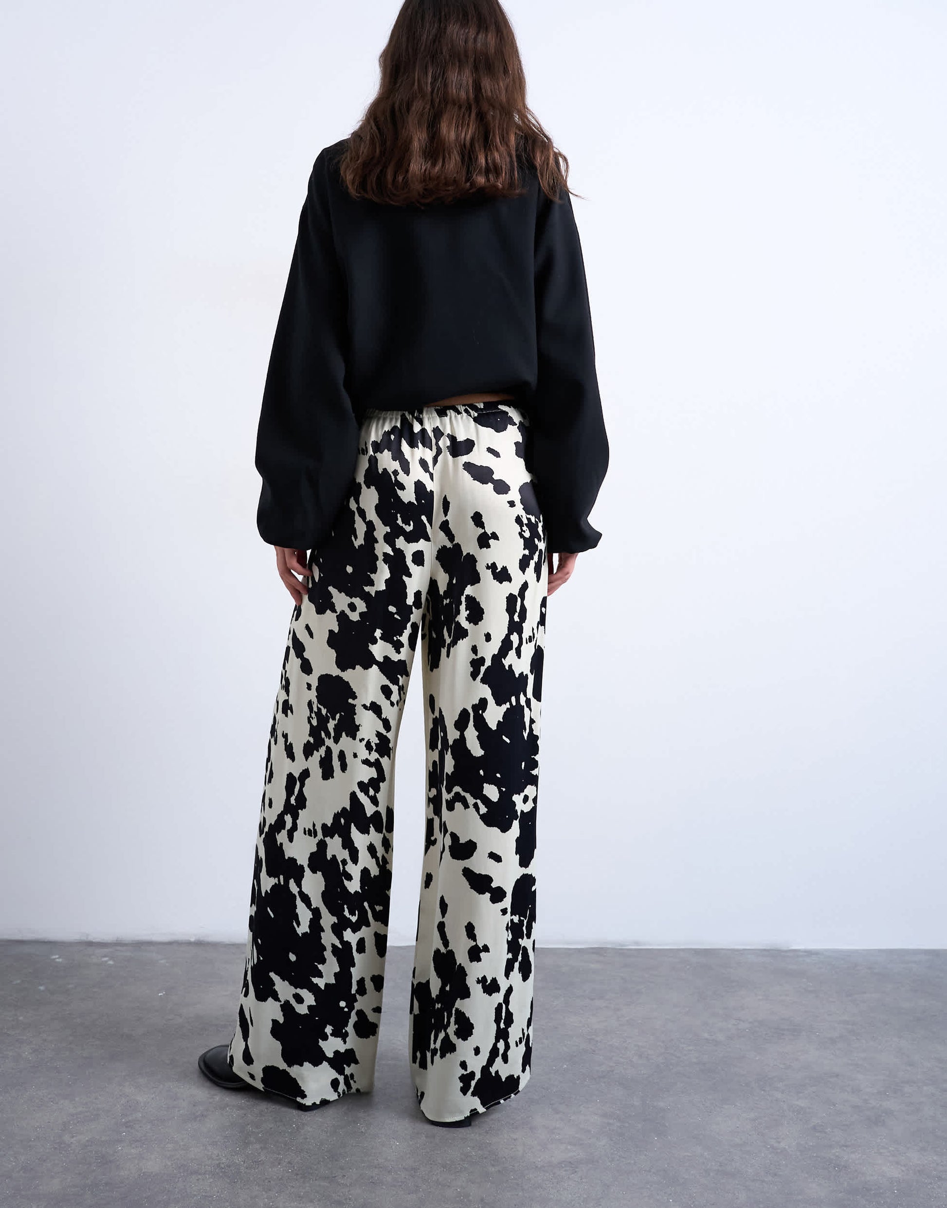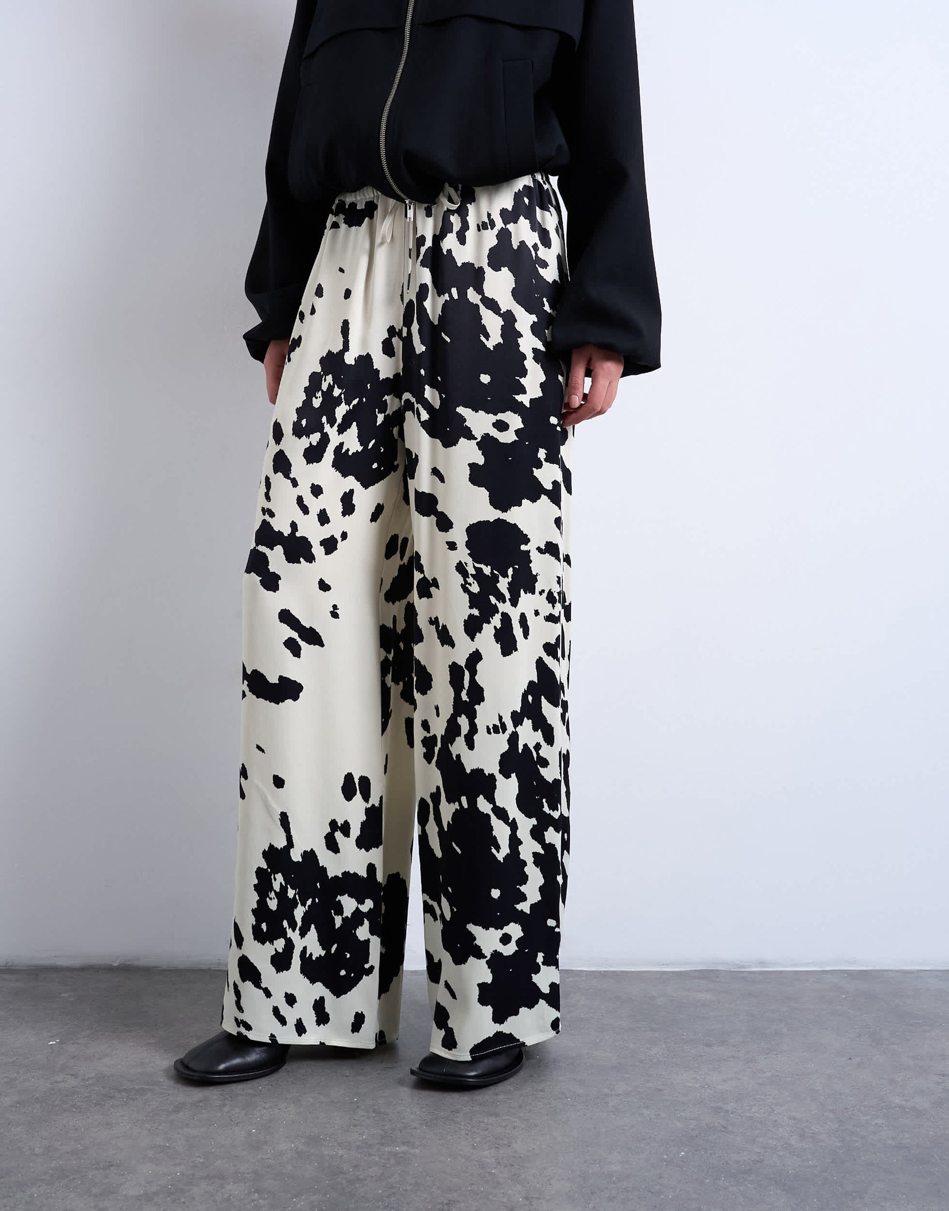 Pantalons et leggings de TopshopCe pantalon à imprimé vache monochrome présente une taille haute, une fermeture à cordon et une coupe ample. Il est confectionné dans un tissu brillant effet satiné.