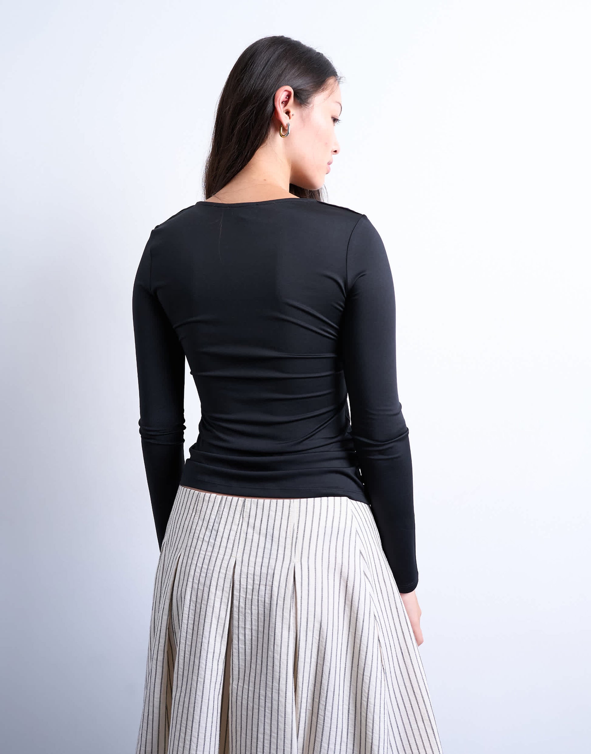 Hauts de TopshopCe top est confectionné en jersey doux et fluide, d'un noir polyvalent. Doté de manches longues, d'une encolure bateau et d'une coupe ajustée, il offre de multiples possibilités de style.