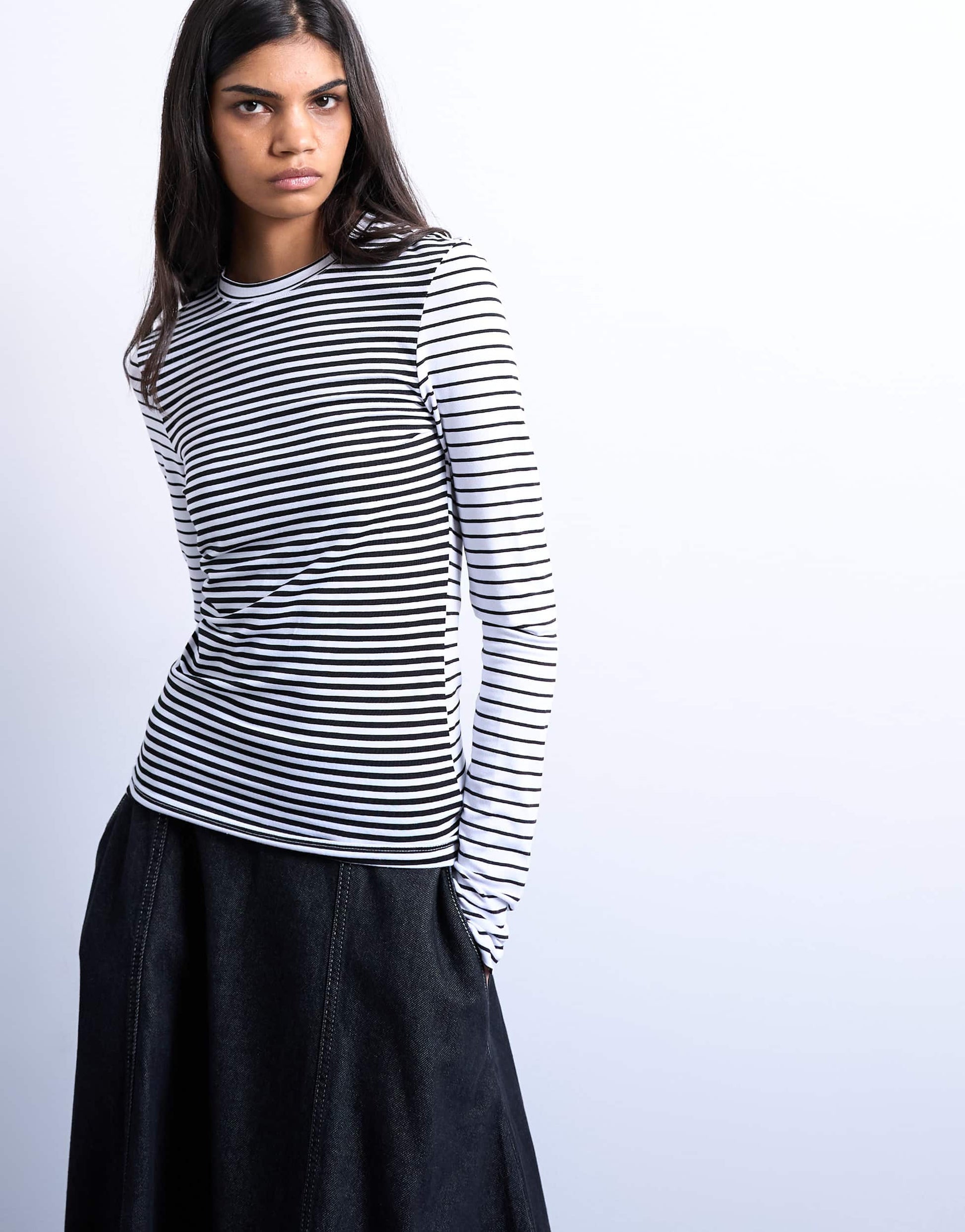 Hauts de TopshopCe t-shirt est confectionné dans un tissu doux et extensible à rayures contrastées. Il possède un col rond, des manches longues et une coupe classique.