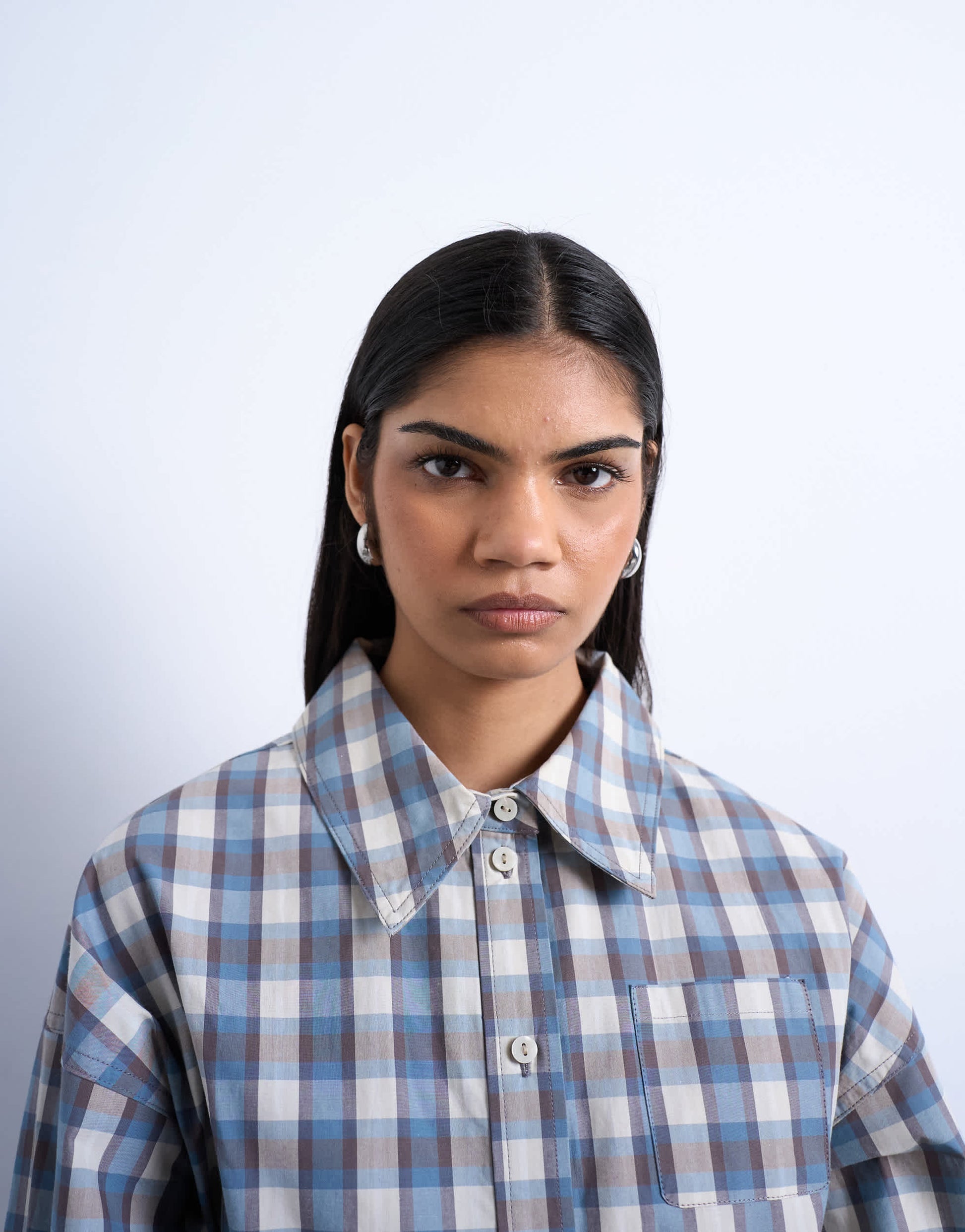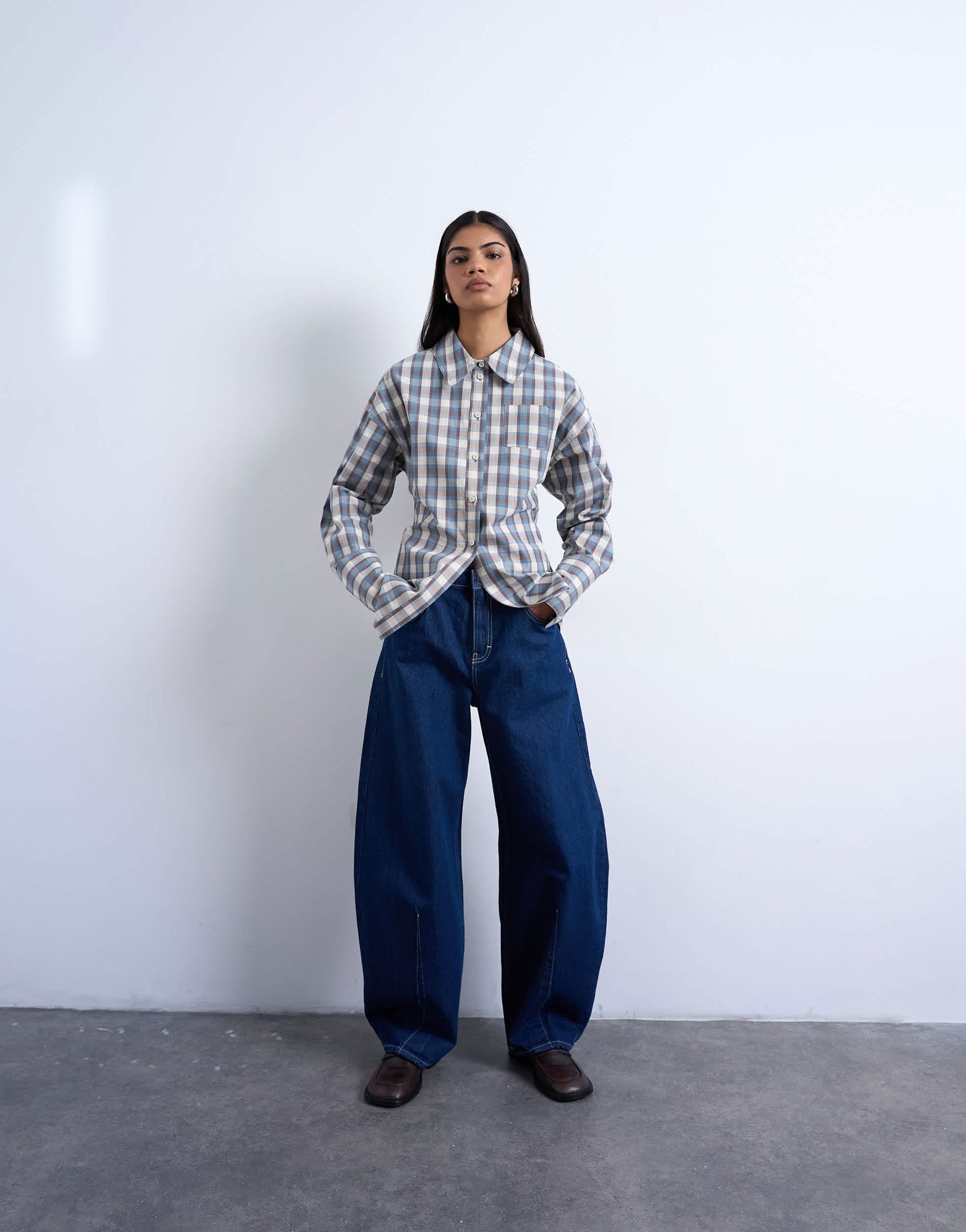 Hauts de TopshopCette chemise est confectionnée dans un tissu tissé à carreaux. Elle possède un col classique, une patte de boutonnage, des manches longues, une poche poitrine et des détails de serrage au dos.