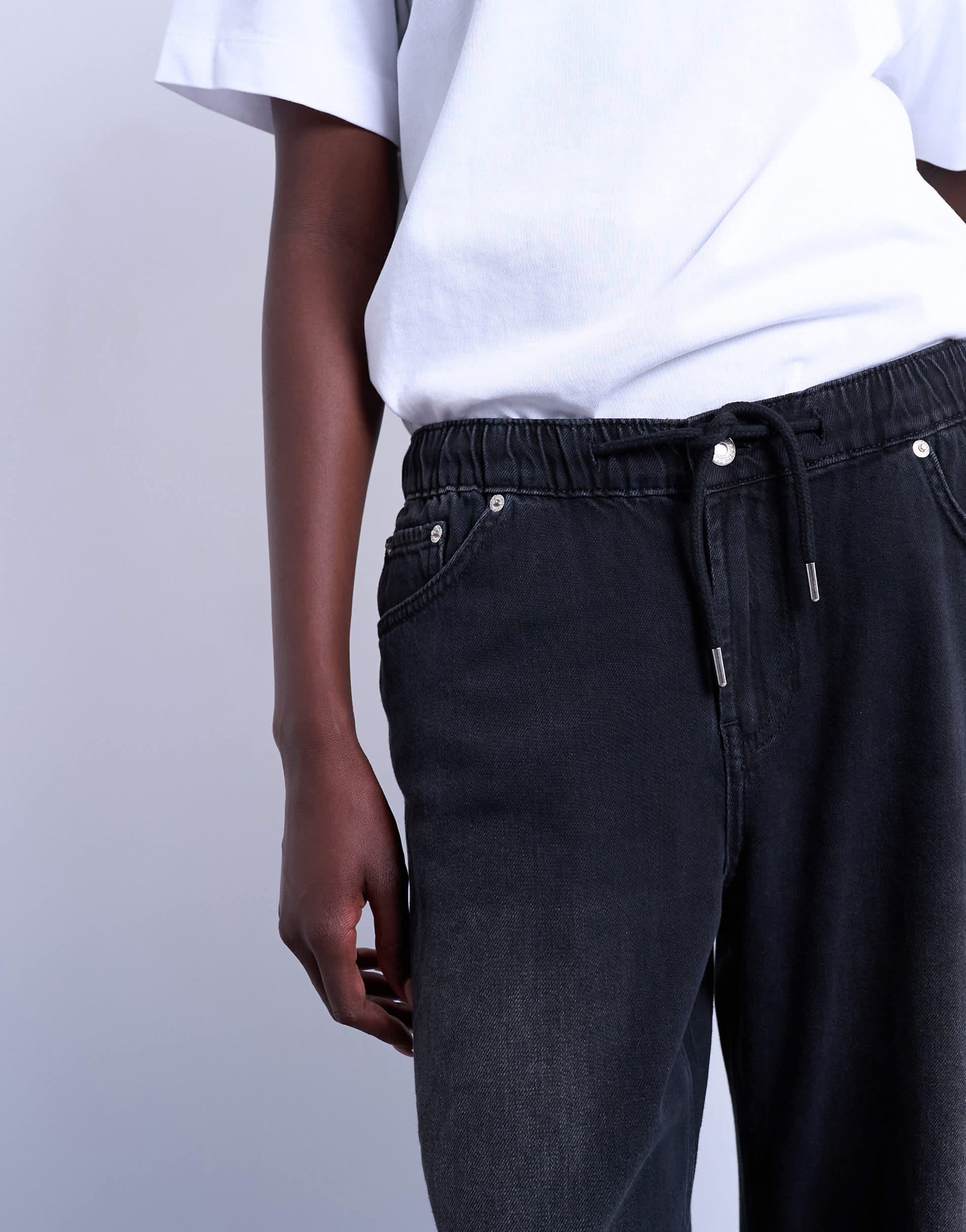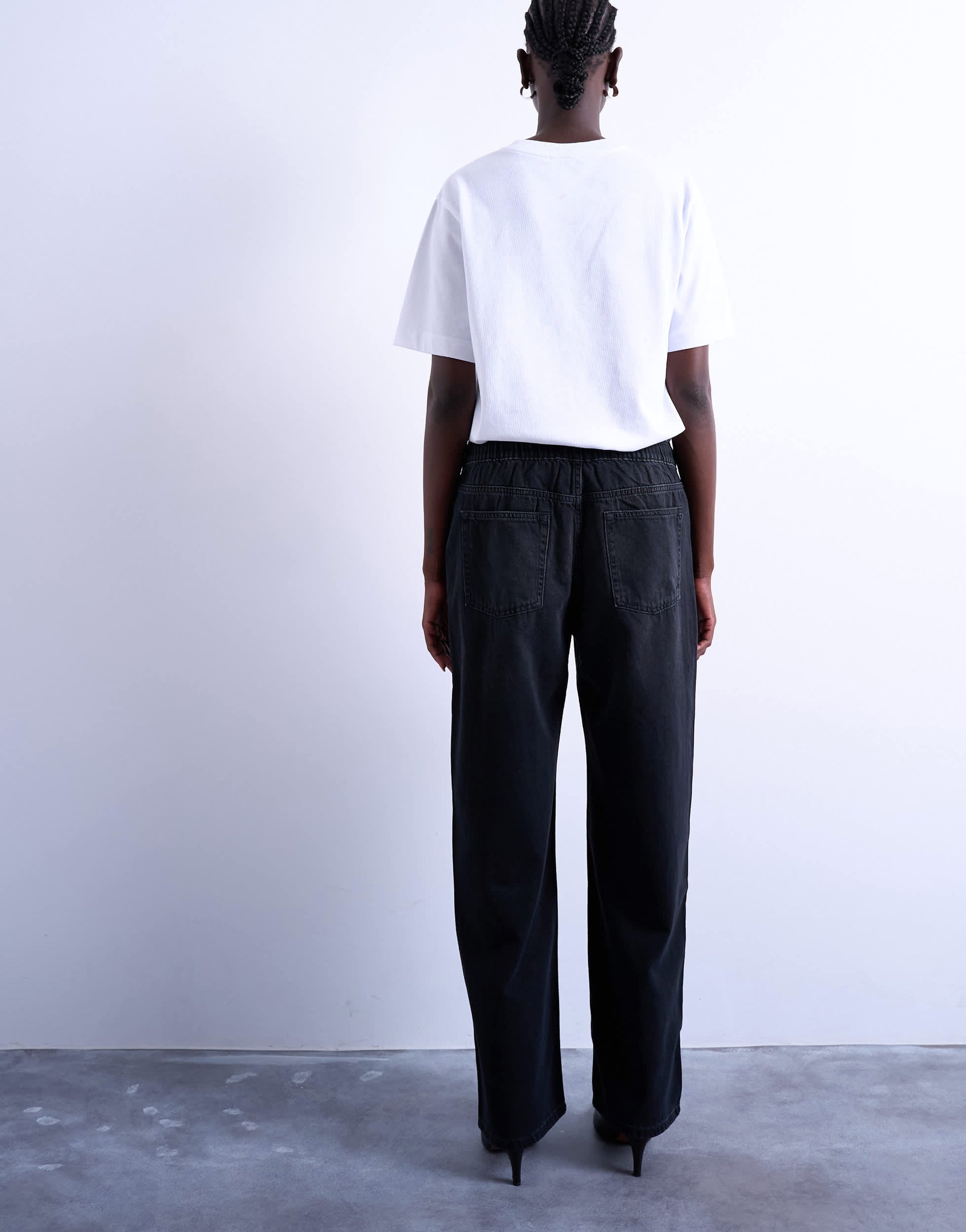Jeans de TopshopCe jean de style jogging est confectionné en denim non extensible noir. Il possède une taille élastiquée avec cordon de serrage, cinq poches et une coupe classique.