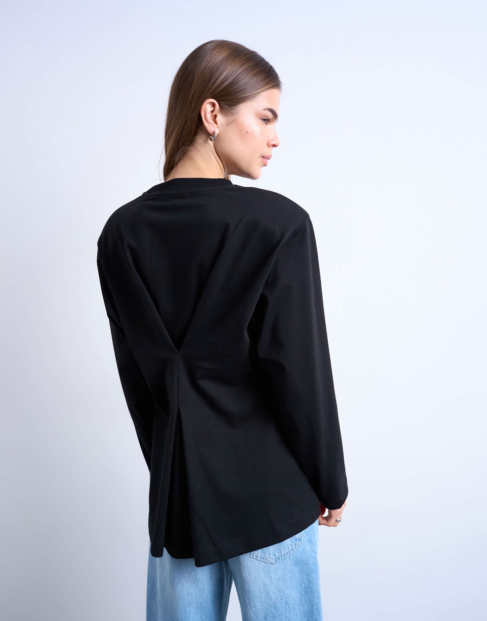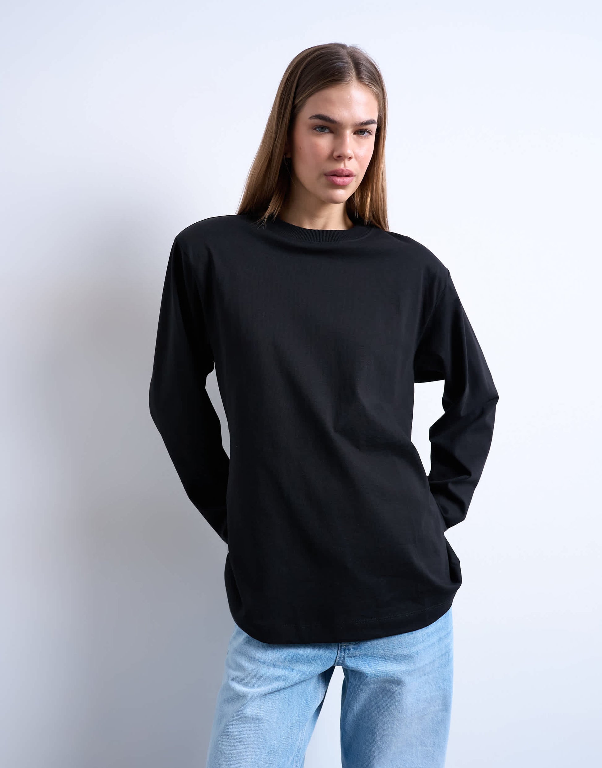 Ce haut est confectionné dans une maille douce et présente un design uni et polyvalent. Il est doté d'un col rond, de manches longues, d'une taille cintrée et d'une coupe classique.