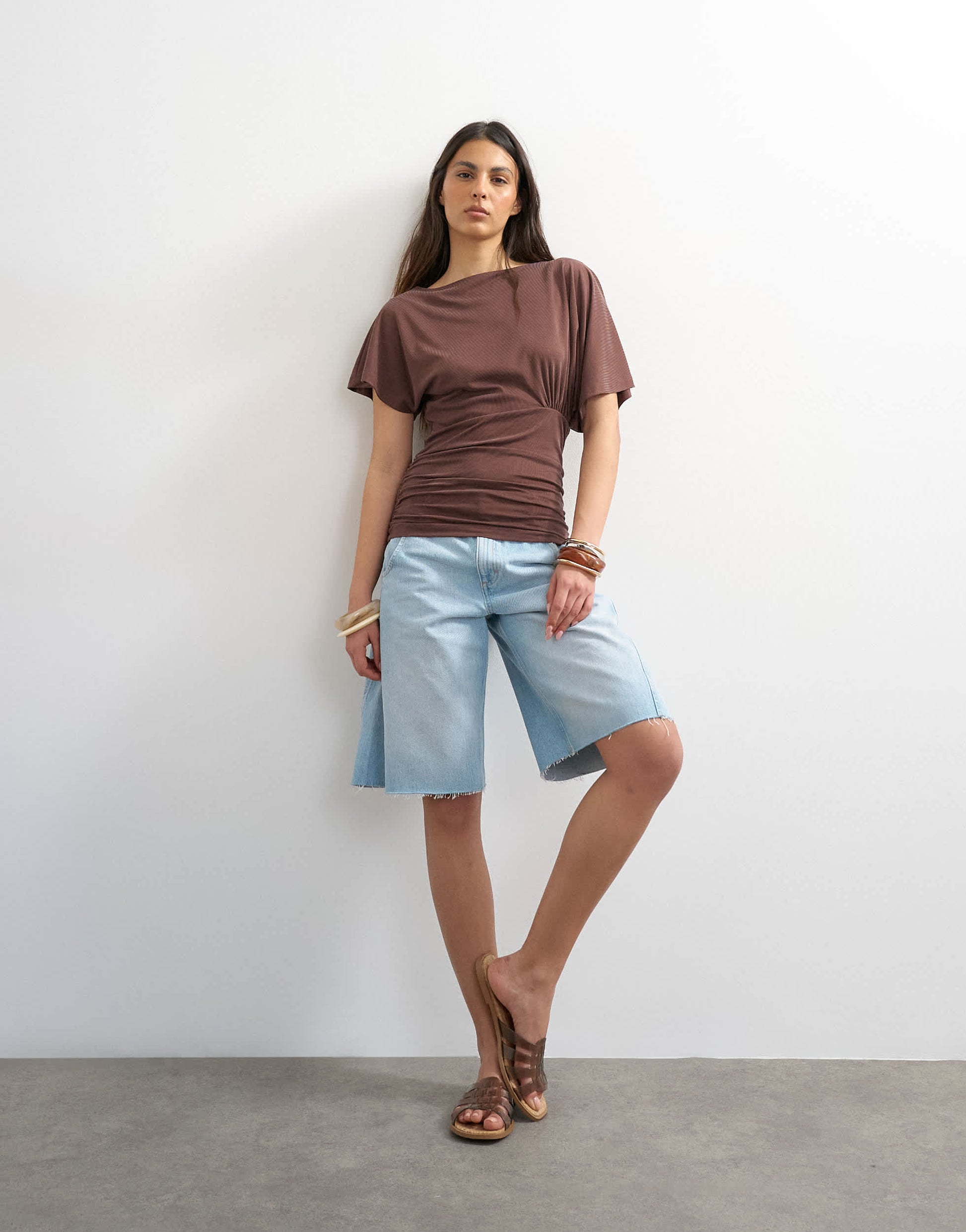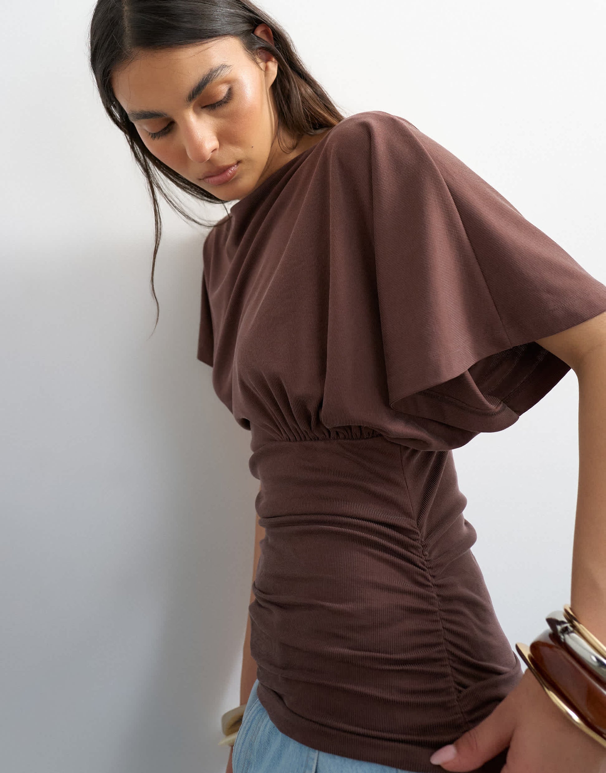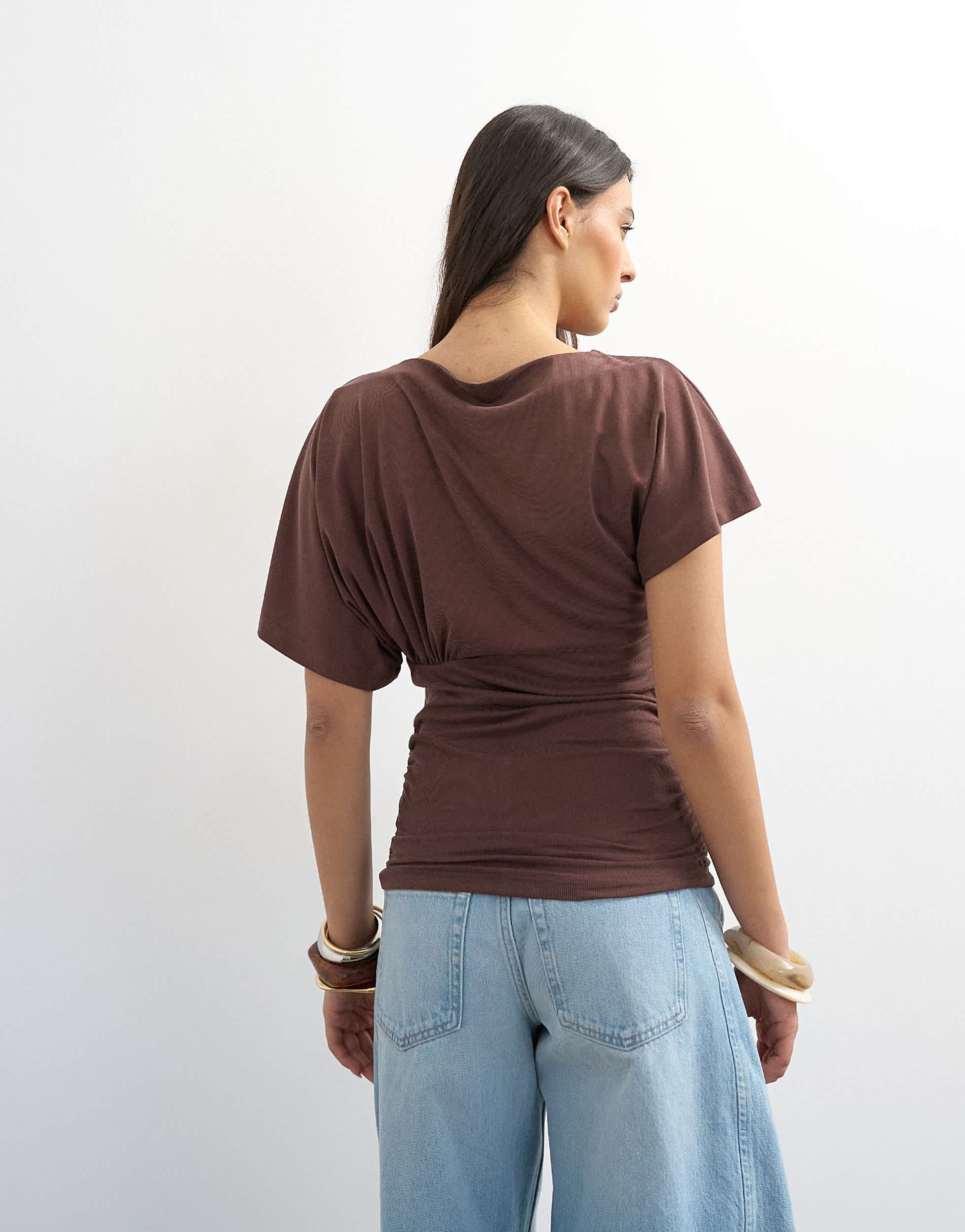 Top Topshop en cupro marron à fronces latérales