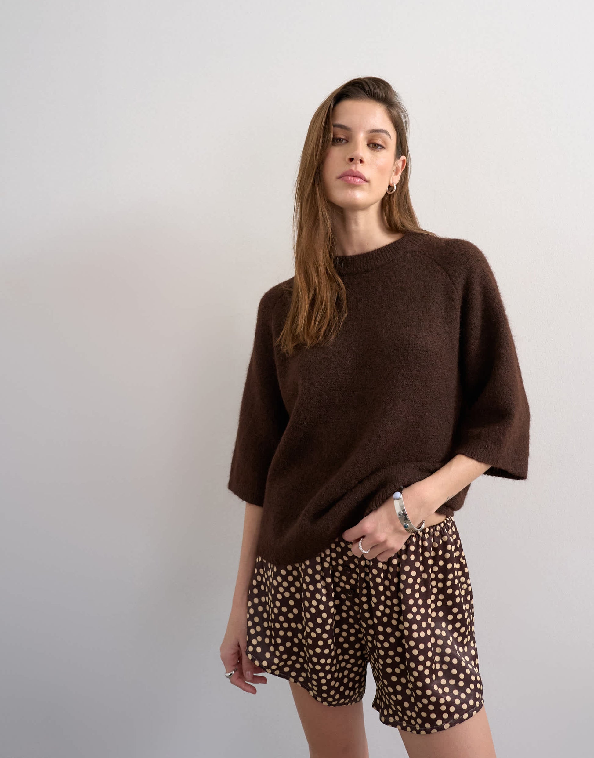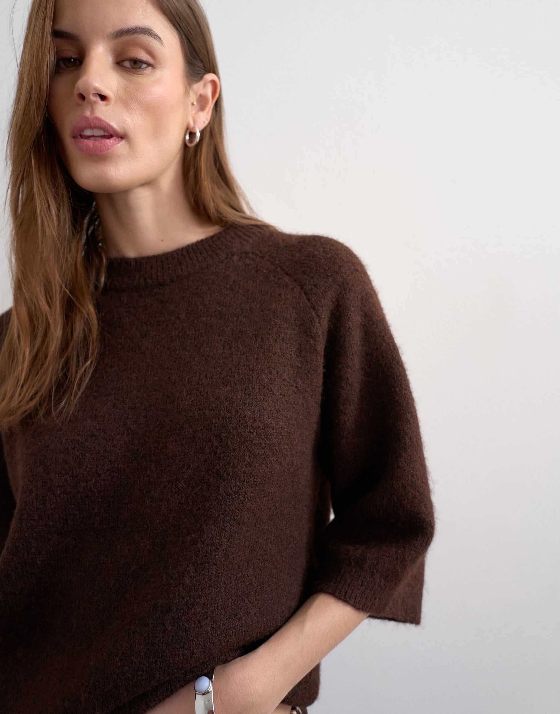 Hauts de TopshopCe t-shirt en maille douce couleur chocolat présente une encolure ras du cou, des manches raglan et des finitions côtelées. Sa coupe est classique.