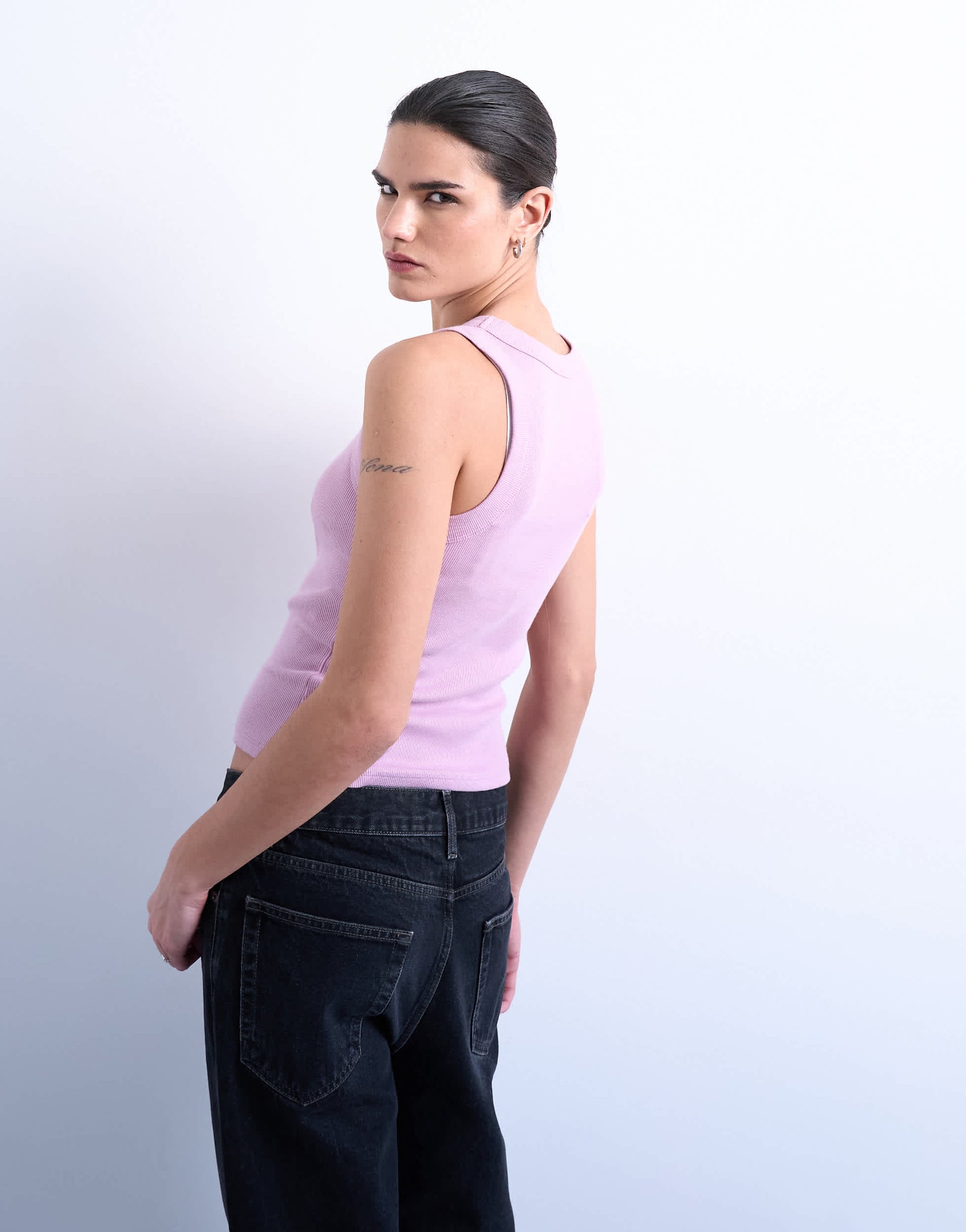 Ce débardeur est confectionné en jersey doux et extensible à finition côtelée. Sans manches, il présente une encolure ras du cou et une coupe ajustée pour une silhouette élégante.