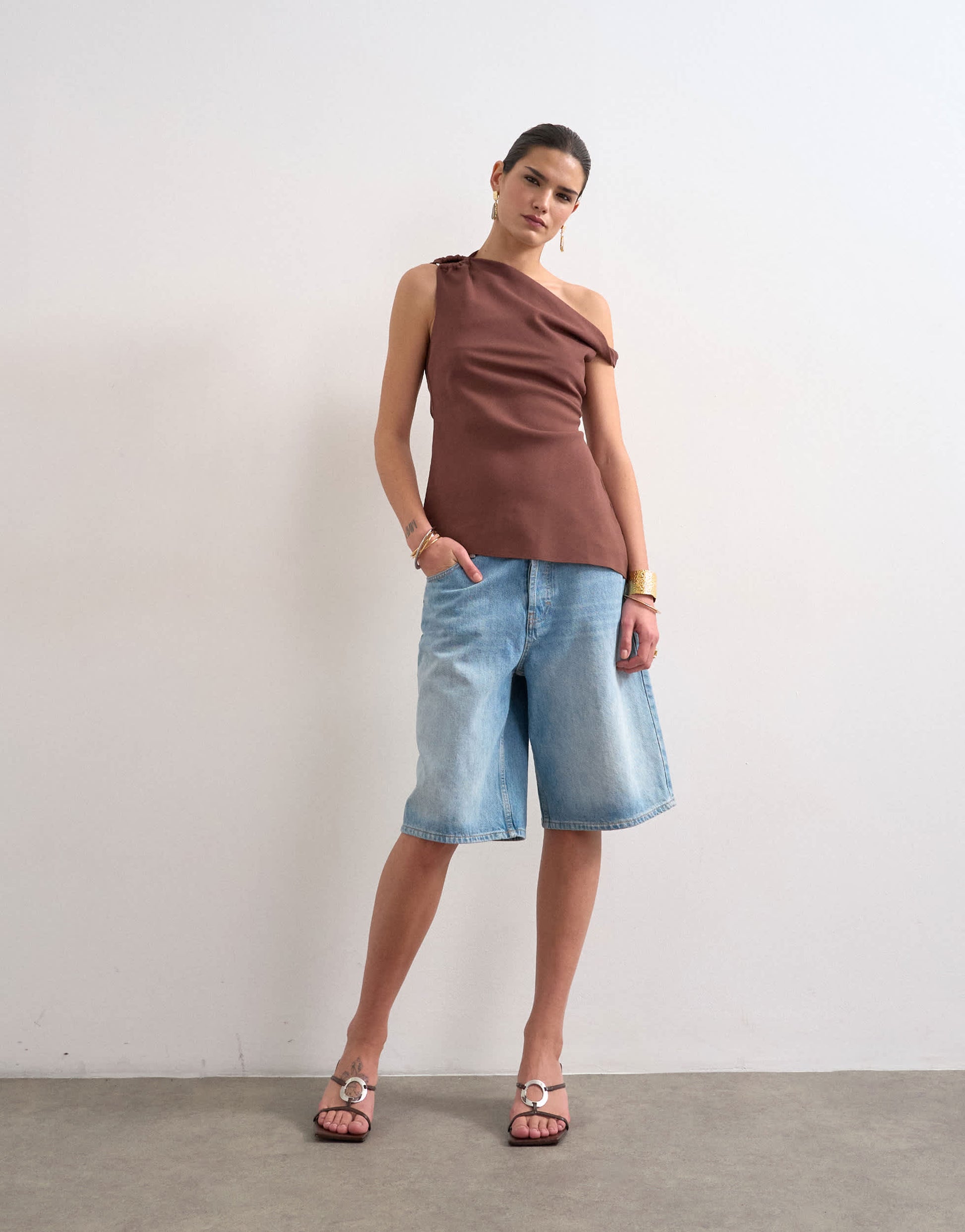 Hauts de TopshopCe haut est confectionné dans un tissu tissé. Il présente une encolure asymétrique, une bretelle torsadée, un détail anneau, un ourlet asymétrique et une coupe ajustée.