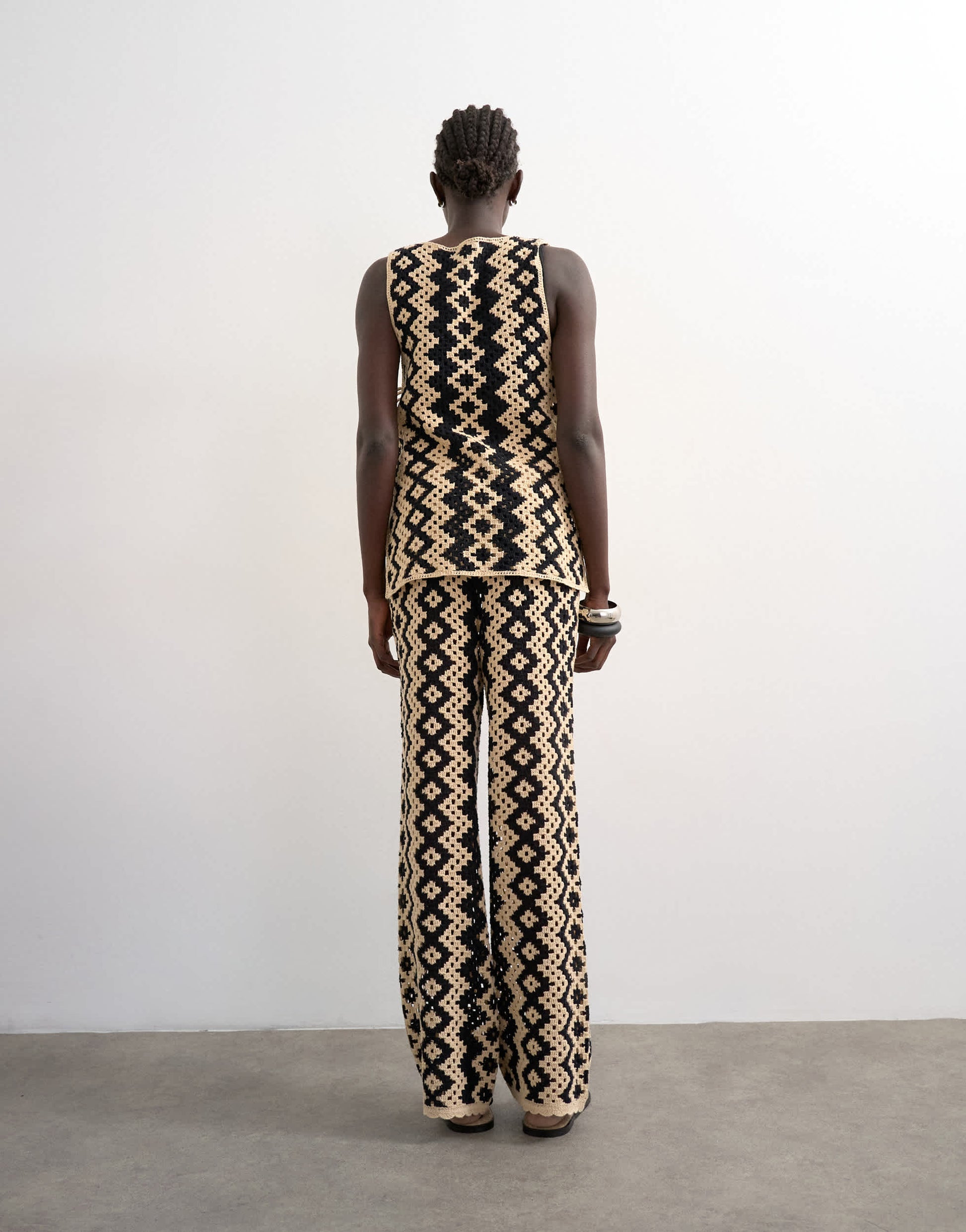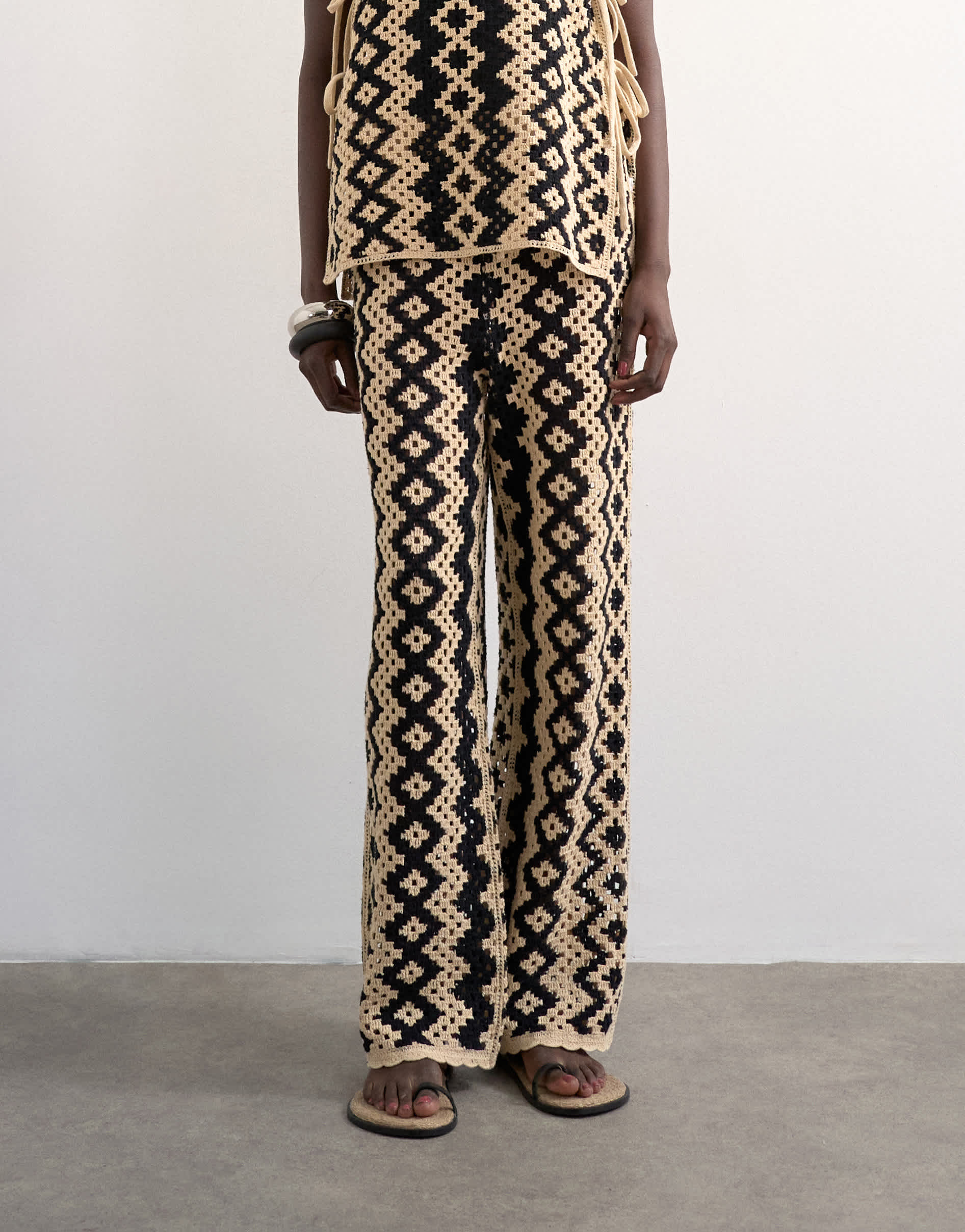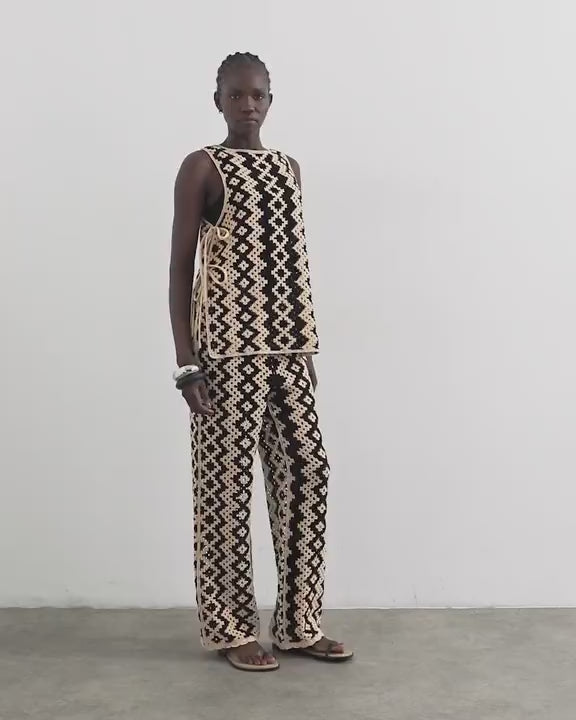 Pantalons et leggings de TopshopCe pantalon est confectionné au crochet selon un motif géométrique. Doté d'une taille haute, il se ferme par un cordon et présente une coupe ample.