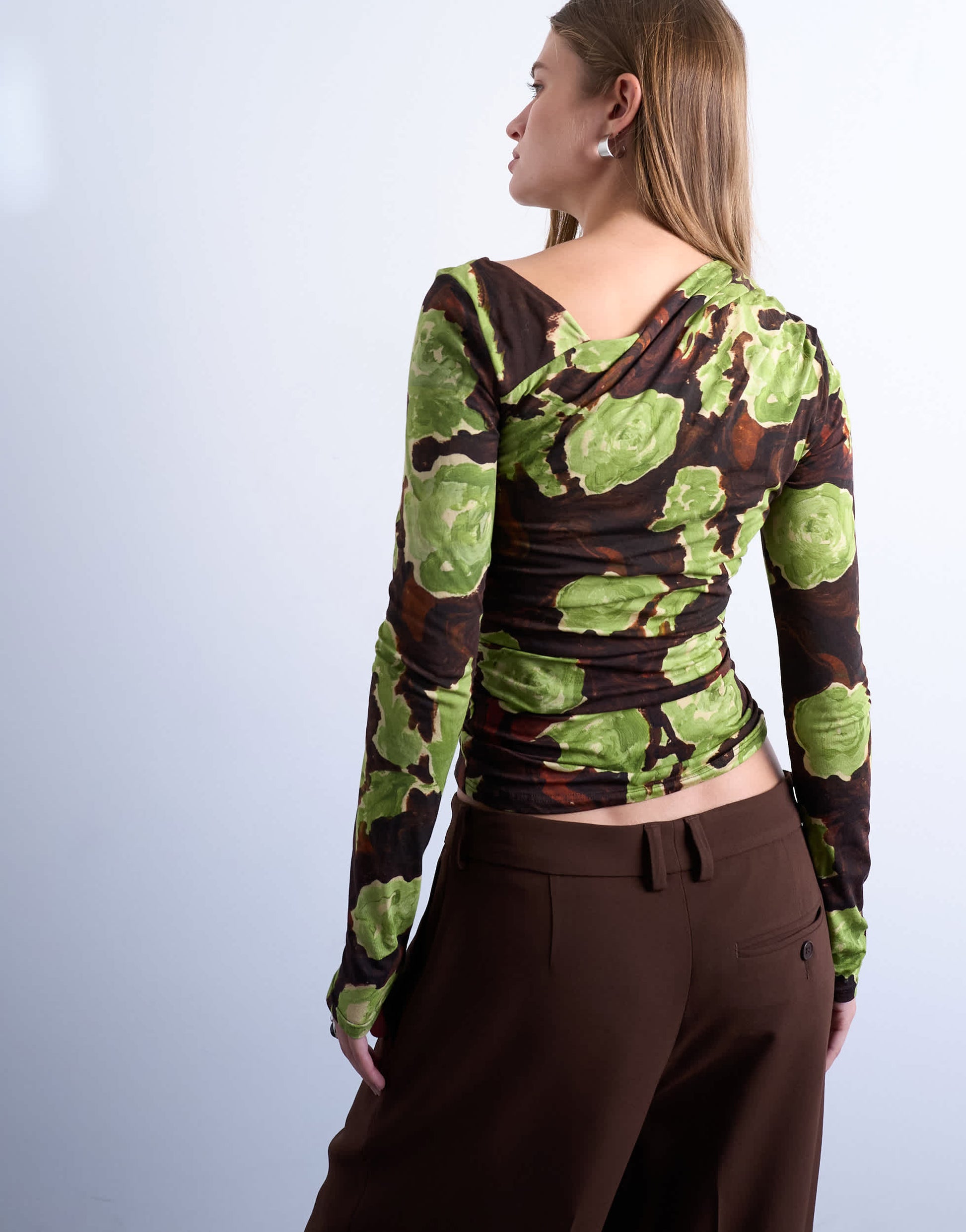 Hauts de TopshopCe top est confectionné en jersey doux et extensible et présente un imprimé floral. Il possède une coupe asymétrique, un col bateau, des manches longues et une silhouette ajustée.