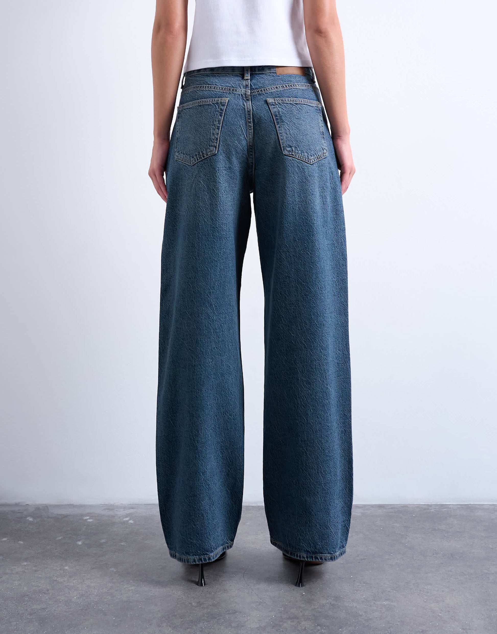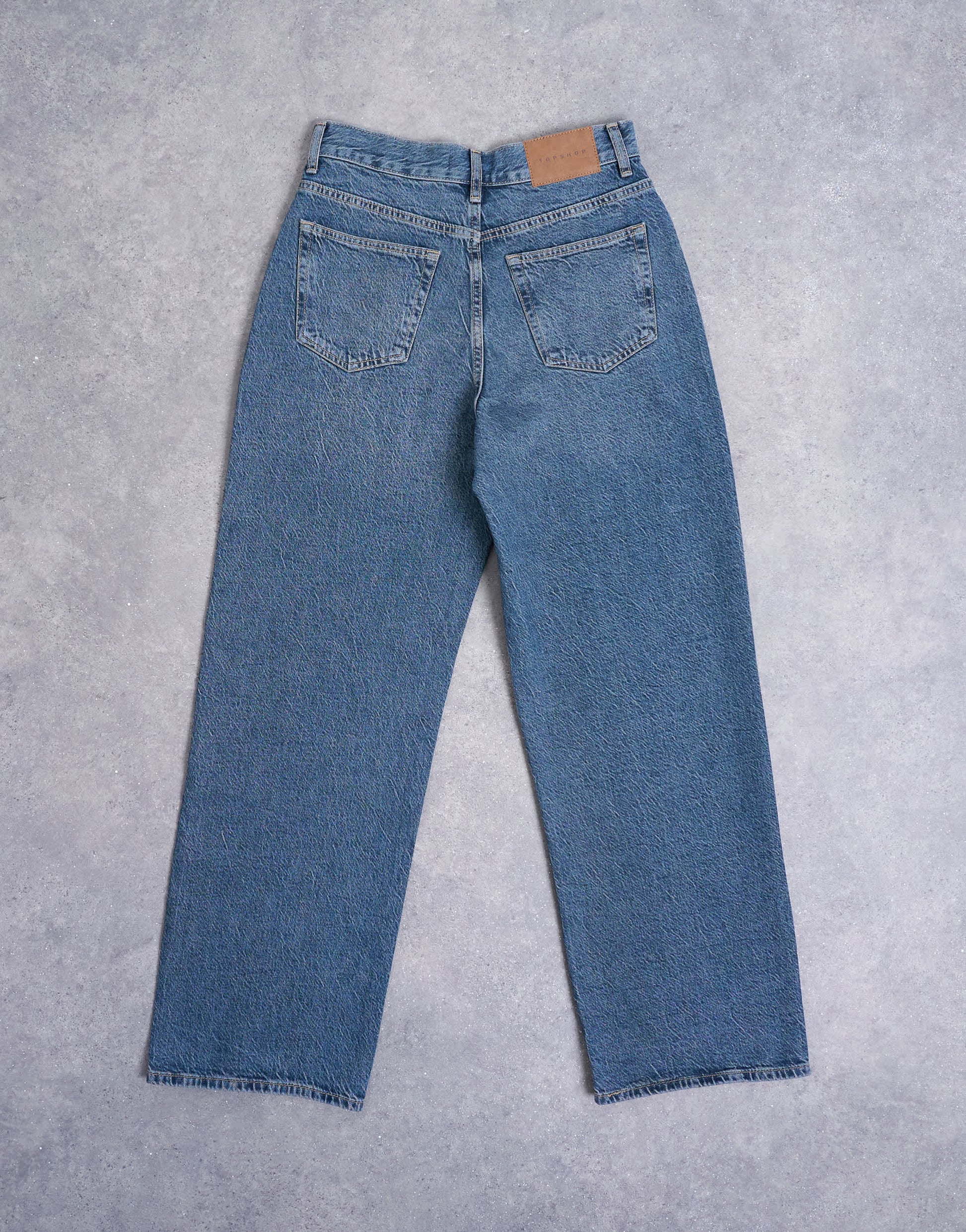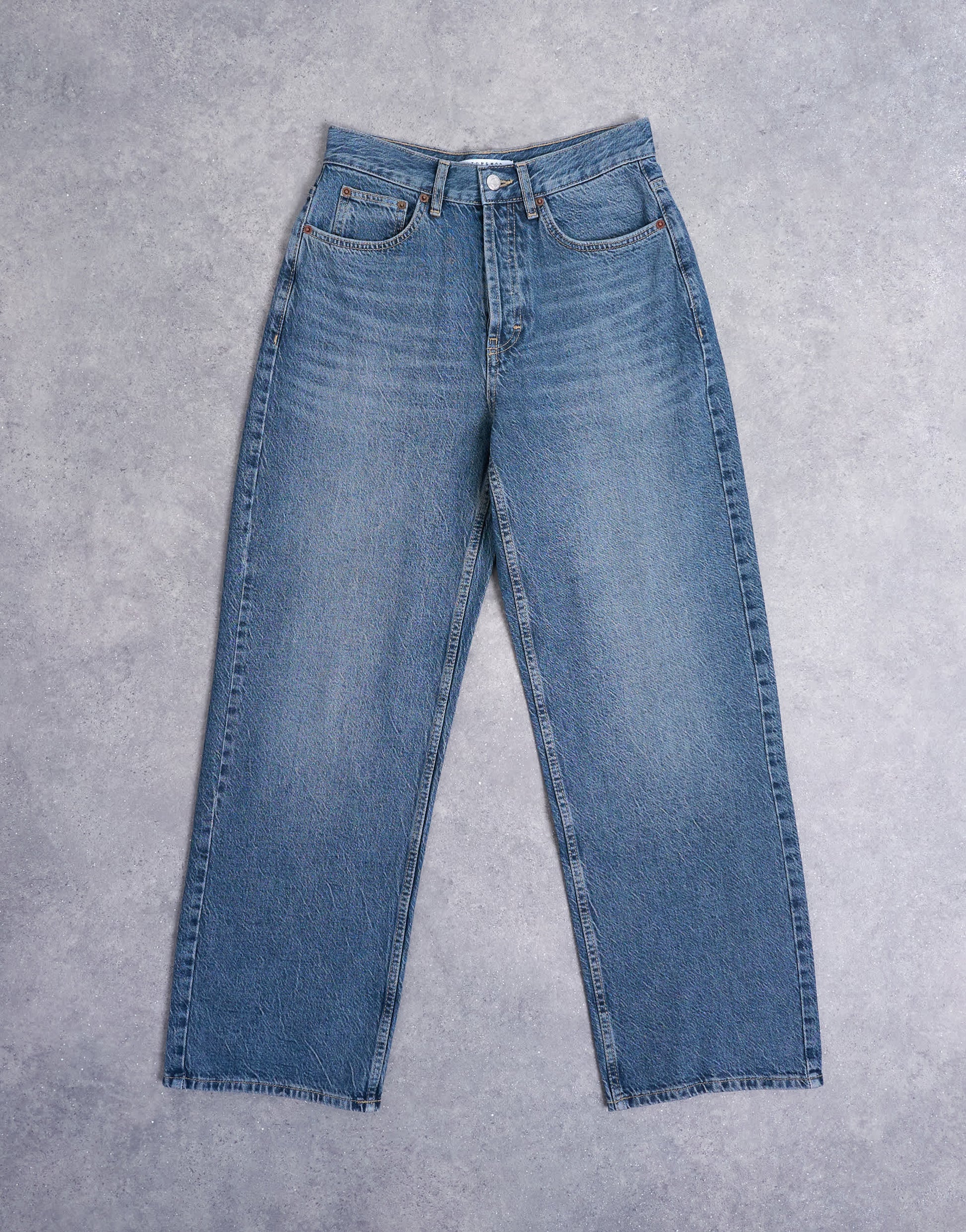 Jeans de TopshopLe jean Column présente une taille mi-haute et une coupe droite avec un effet fuselé à la cheville. Doté de passants de ceinture, de cinq poches et d'un écusson de la marque à l'arrière, ce modèle arbore un délavage bleu foncé.