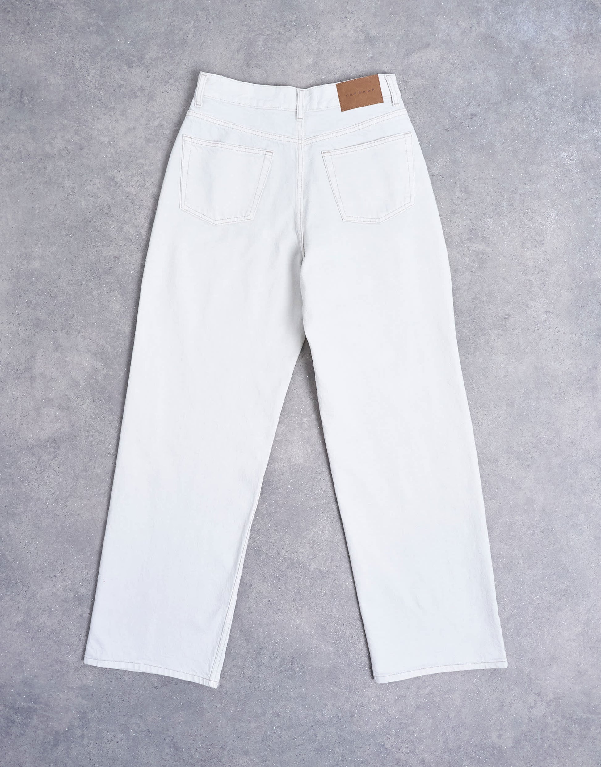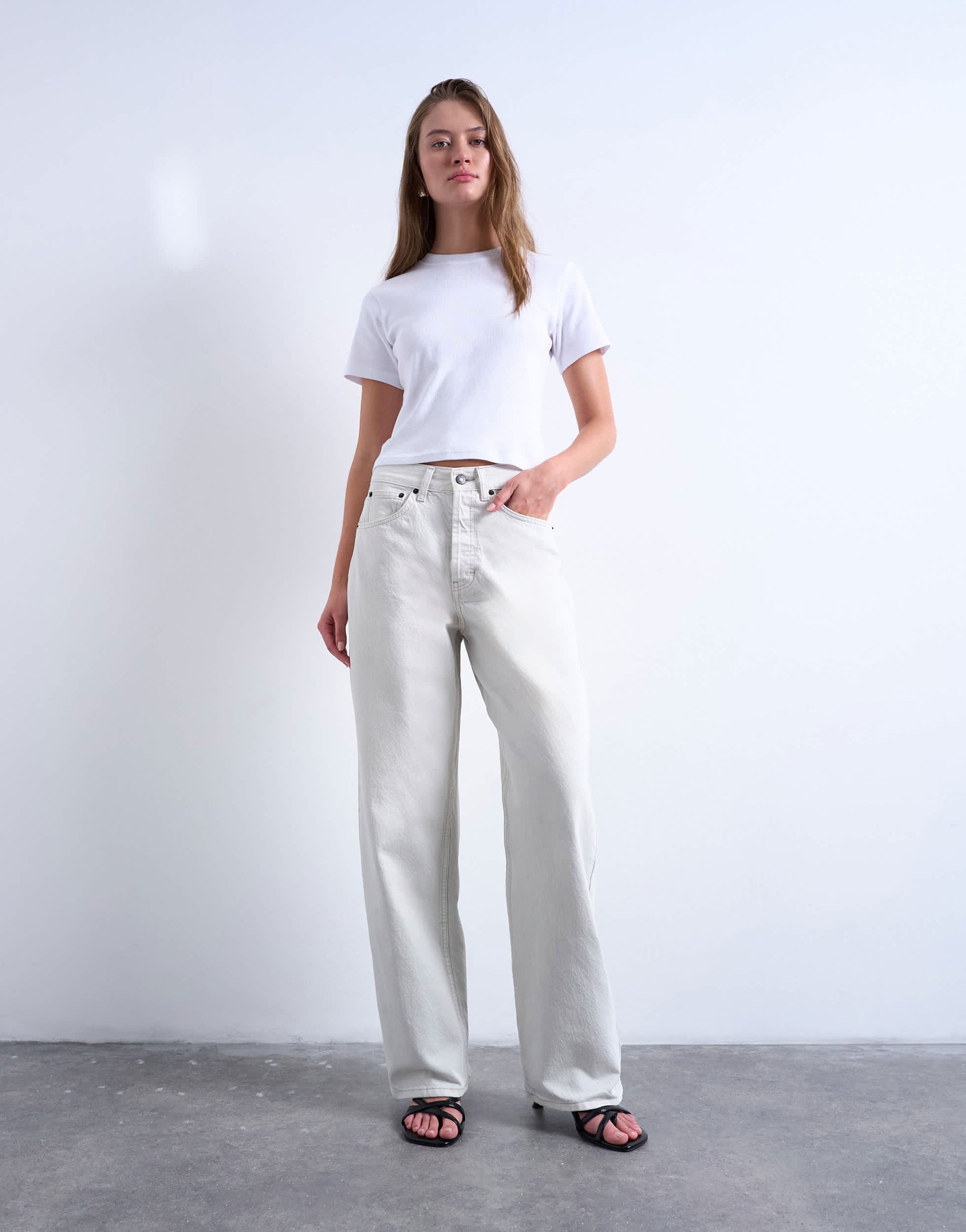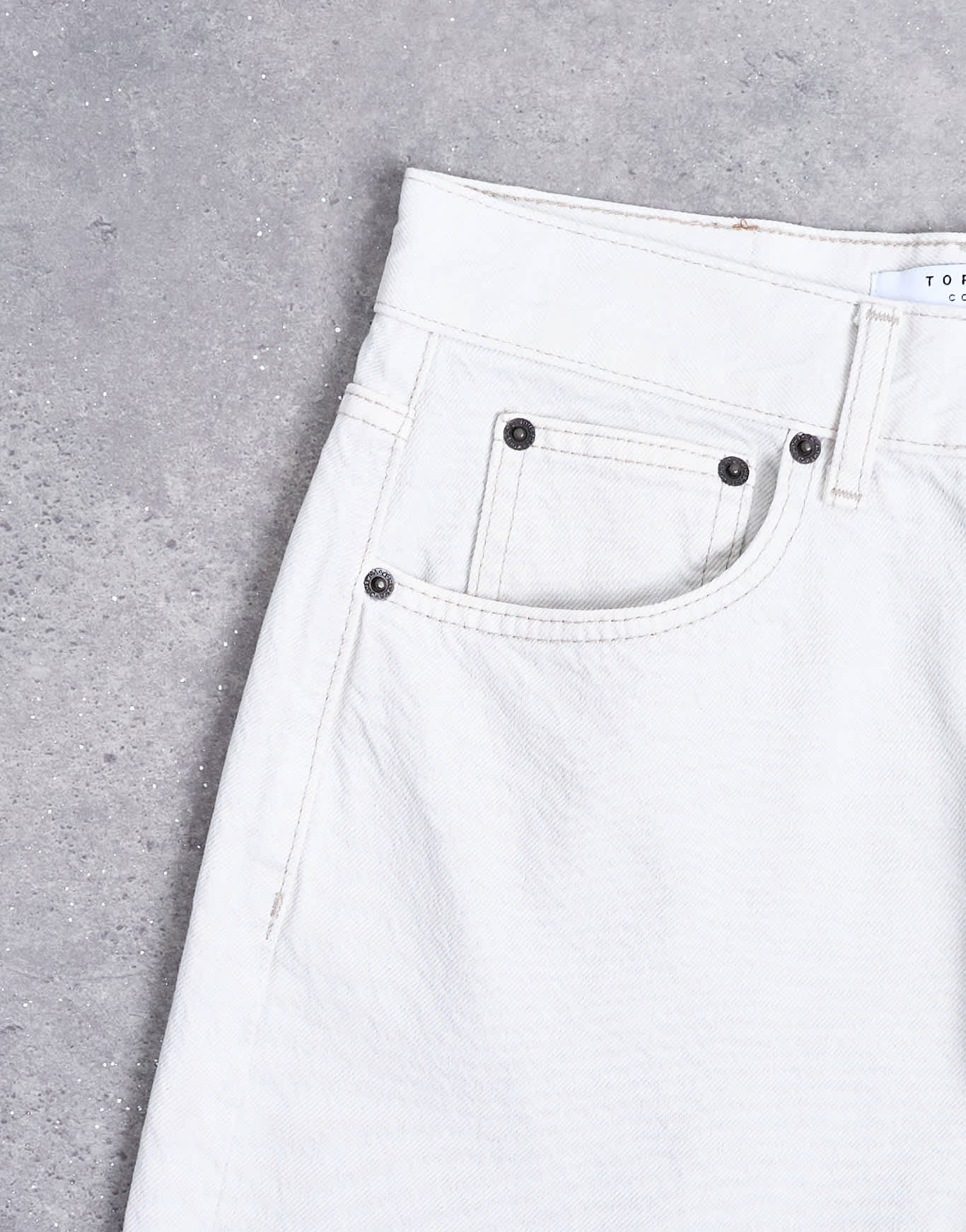 Jeans de TopshopLe jean Column présente une taille mi-haute et une coupe droite avec un effet plissé à la cheville. Doté de passants de ceinture, de cinq poches et d'un écusson de la marque à l'arrière, ce modèle arbore un délavage clair.