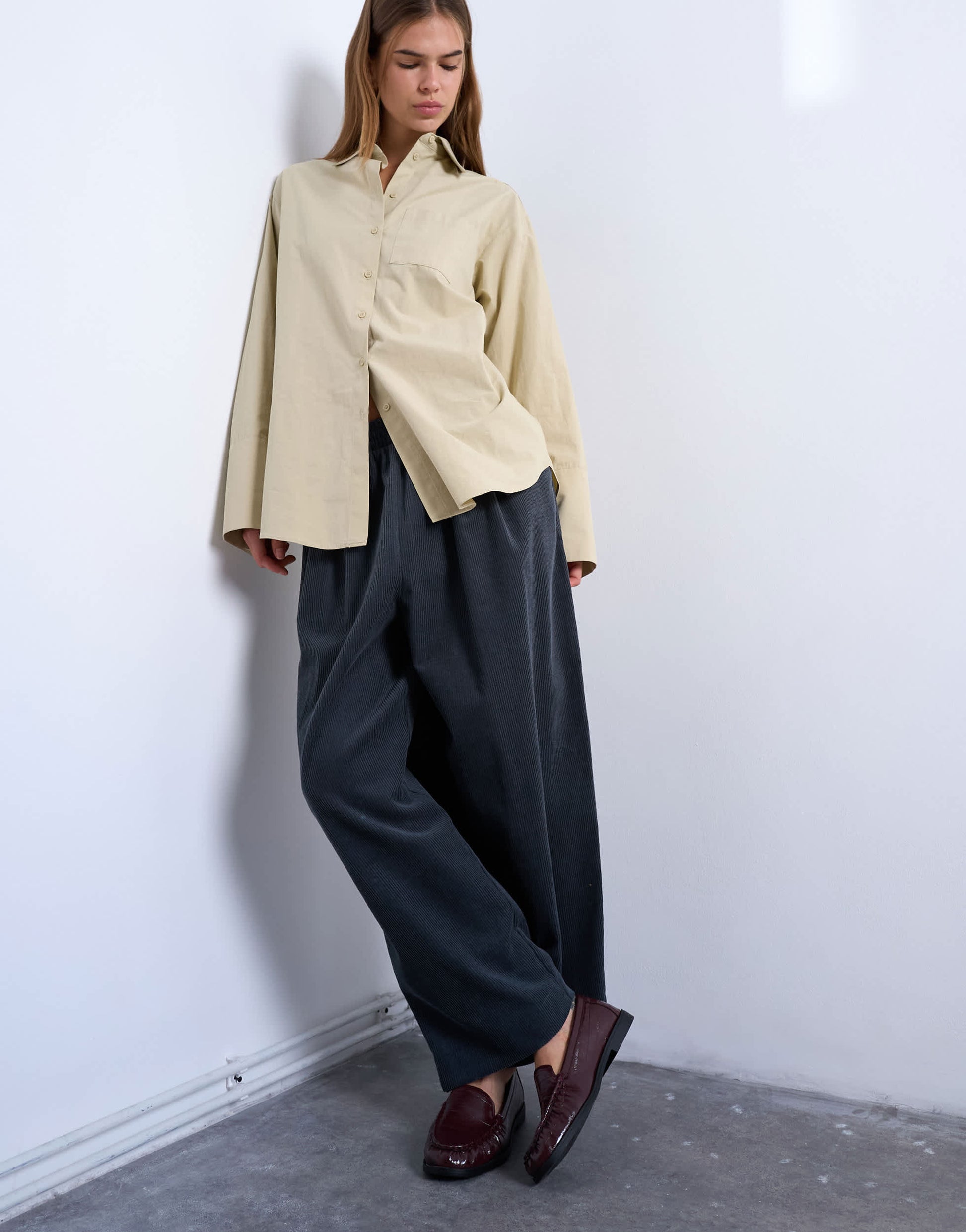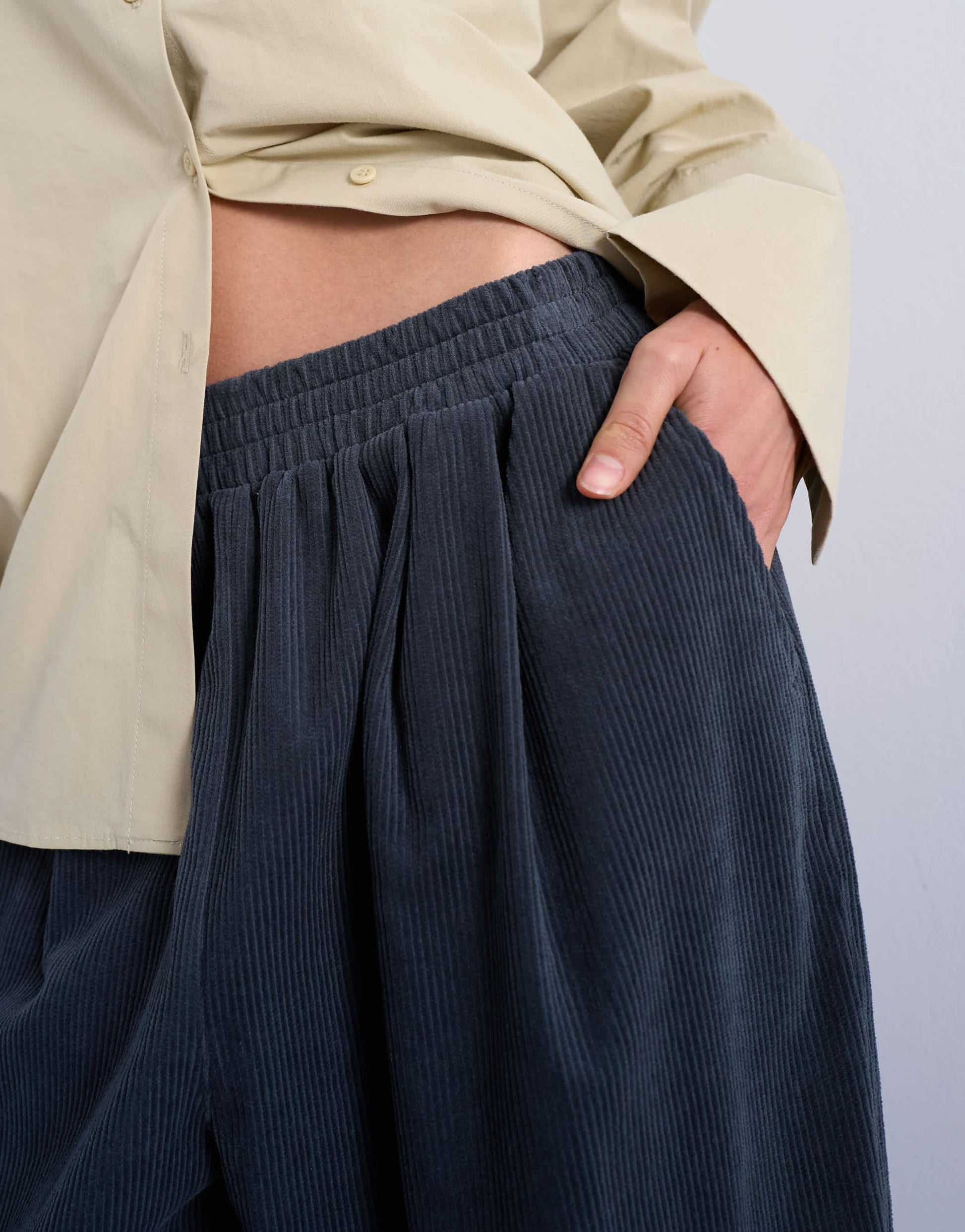 Trousers & Leggings by TopshopIn ribbed, velvet-feel corduroy, these trousers feature an elasticated waistband, side pockets and a generous wide leg.