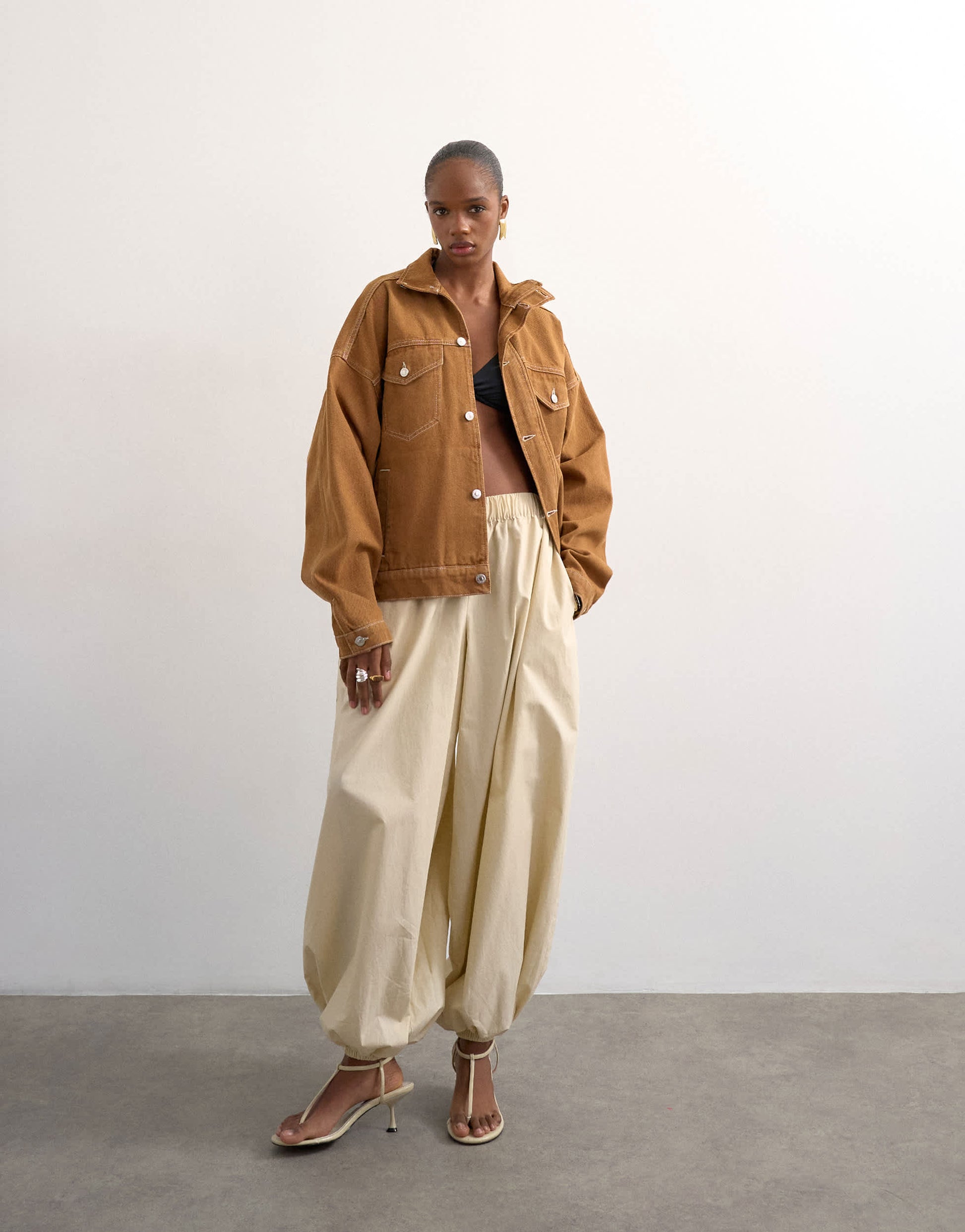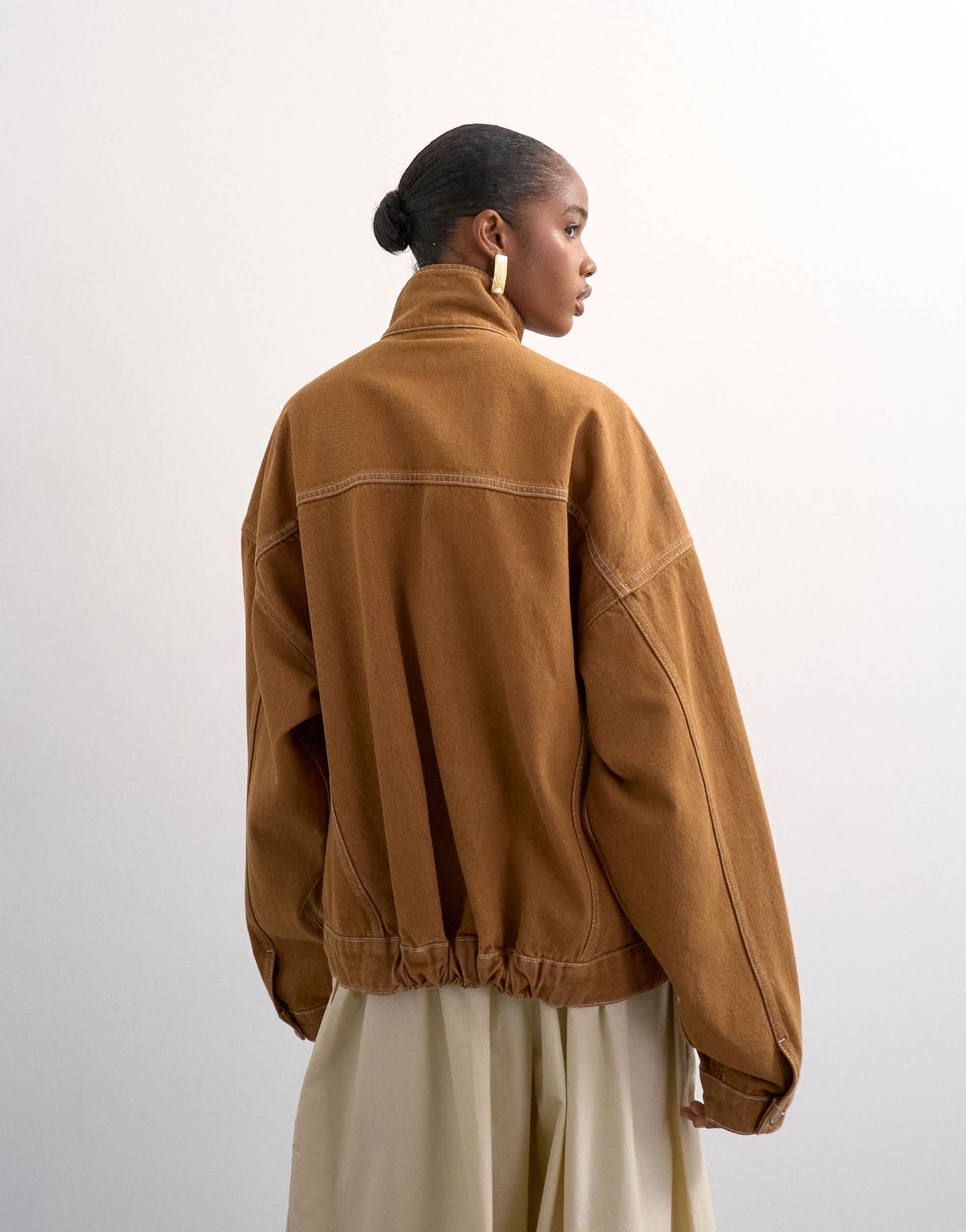 Manteaux et vestes TopshopCette veste est confectionnée en denim non extensible. Elle présente un col montant, une fermeture boutonnée sur le devant, des poches poitrine et un ourlet élastiqué. Sa coupe est décontractée.