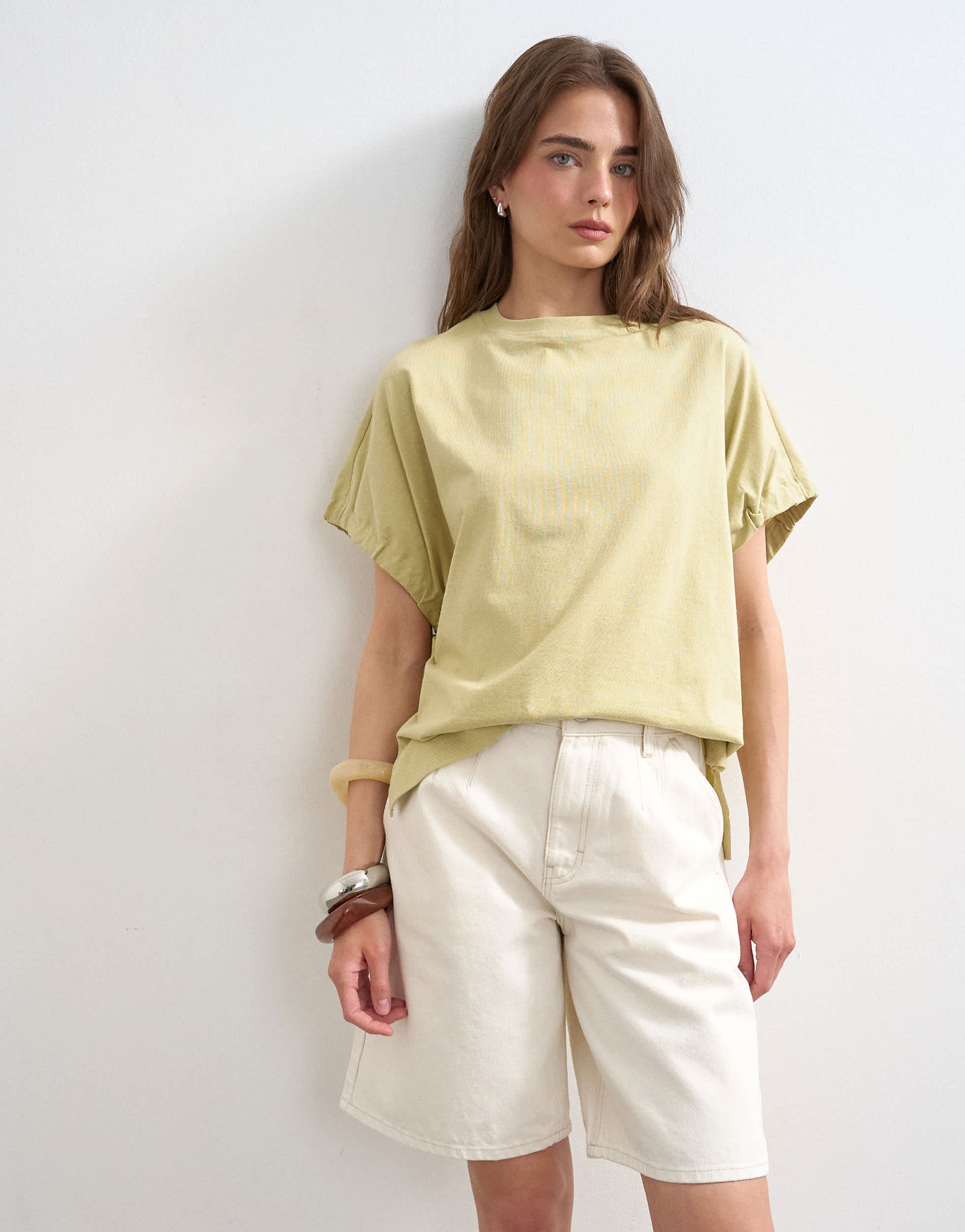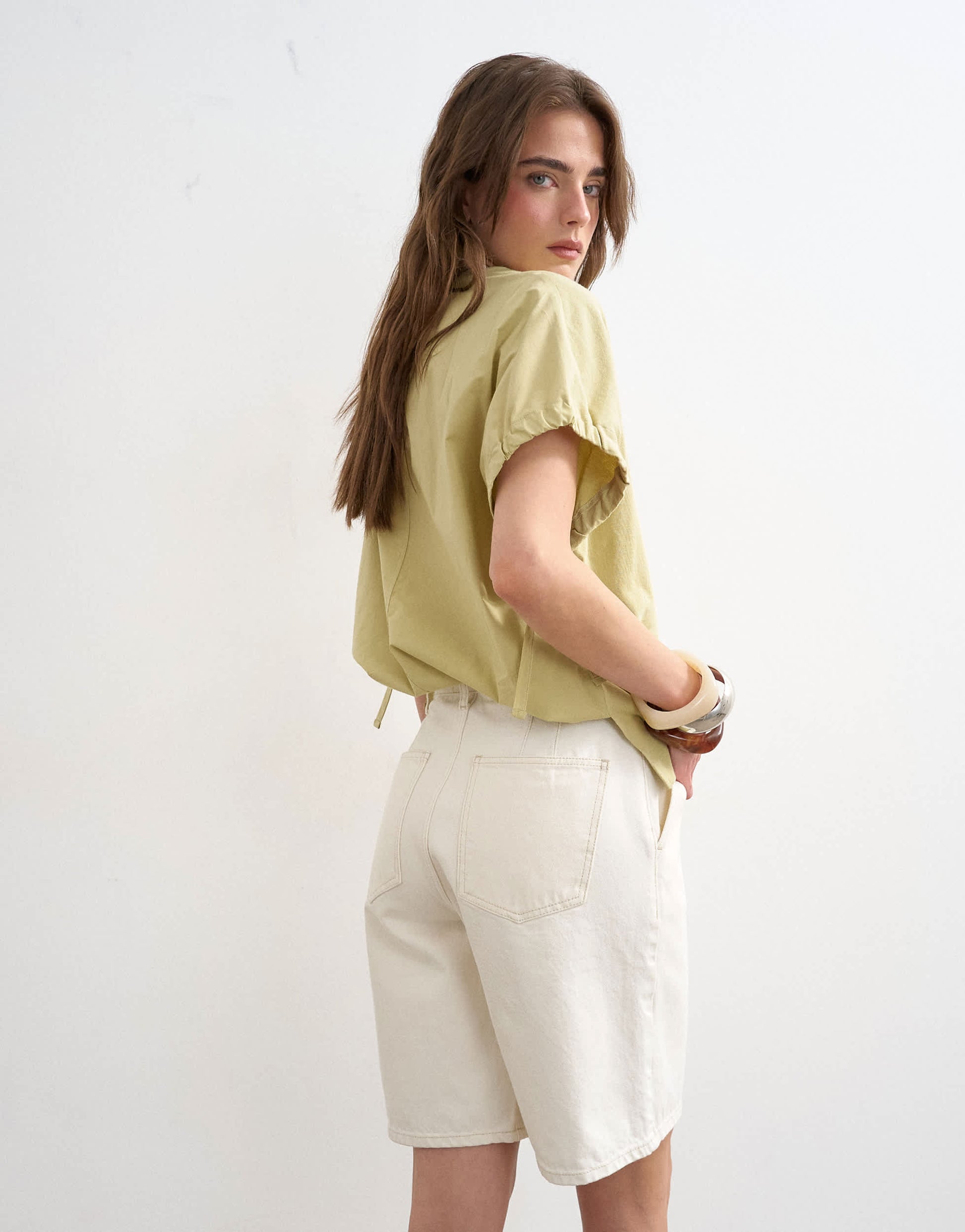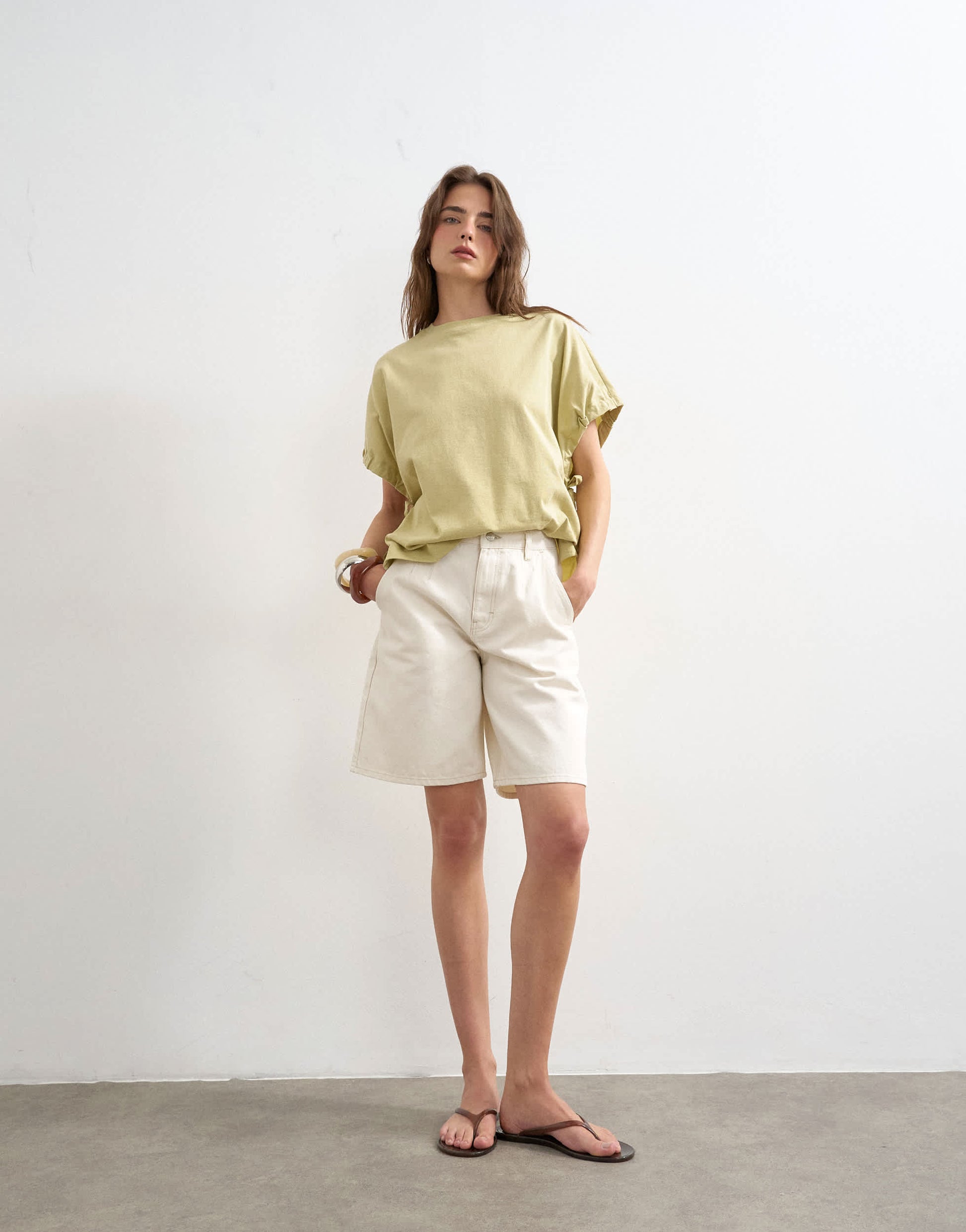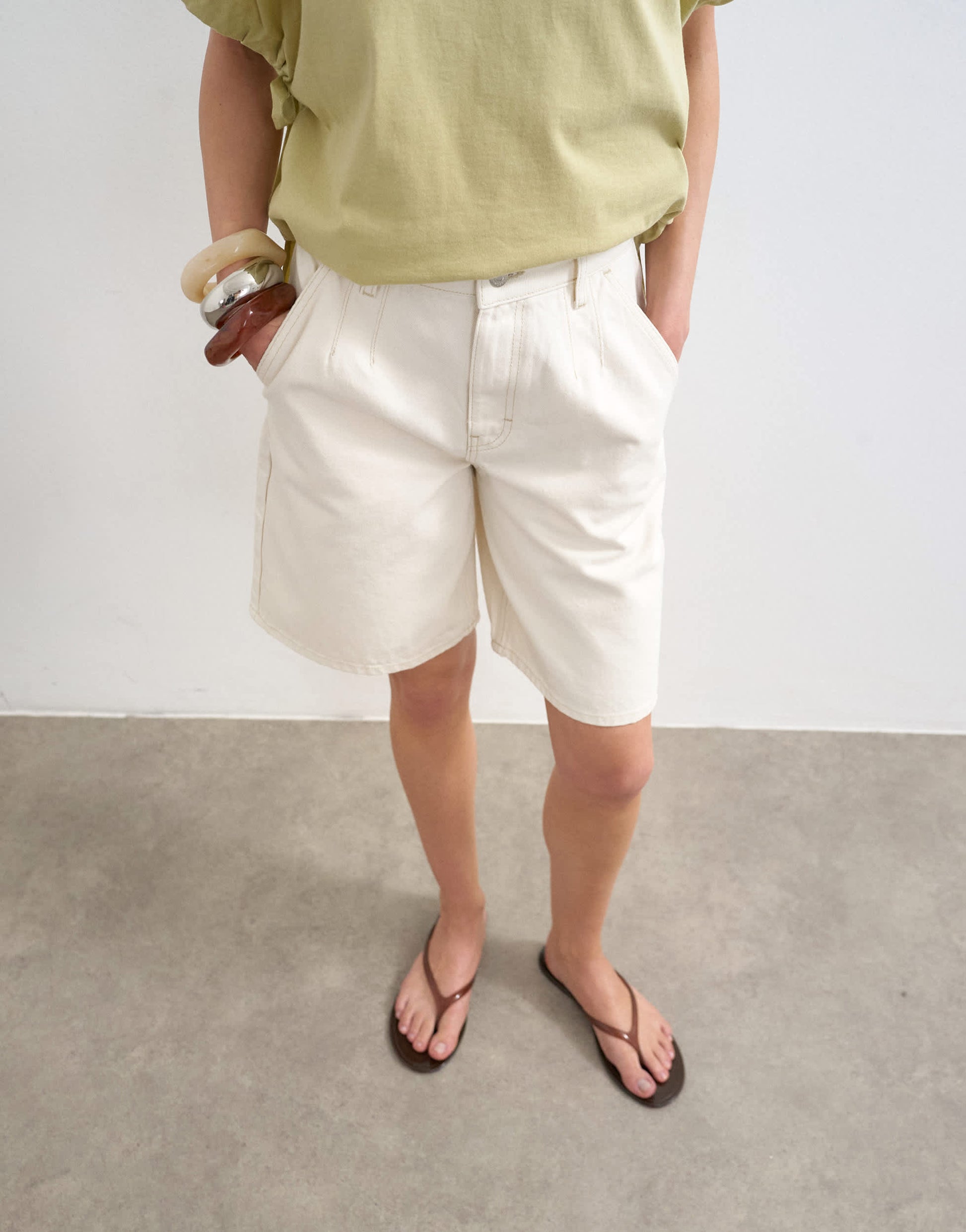 Shorts by TopshopCe short est confectionné en denim non extensible délavé blanc. Il présente une taille haute, des passants de ceinture, des plis et des poches fonctionnelles. Sa coupe est longue.
