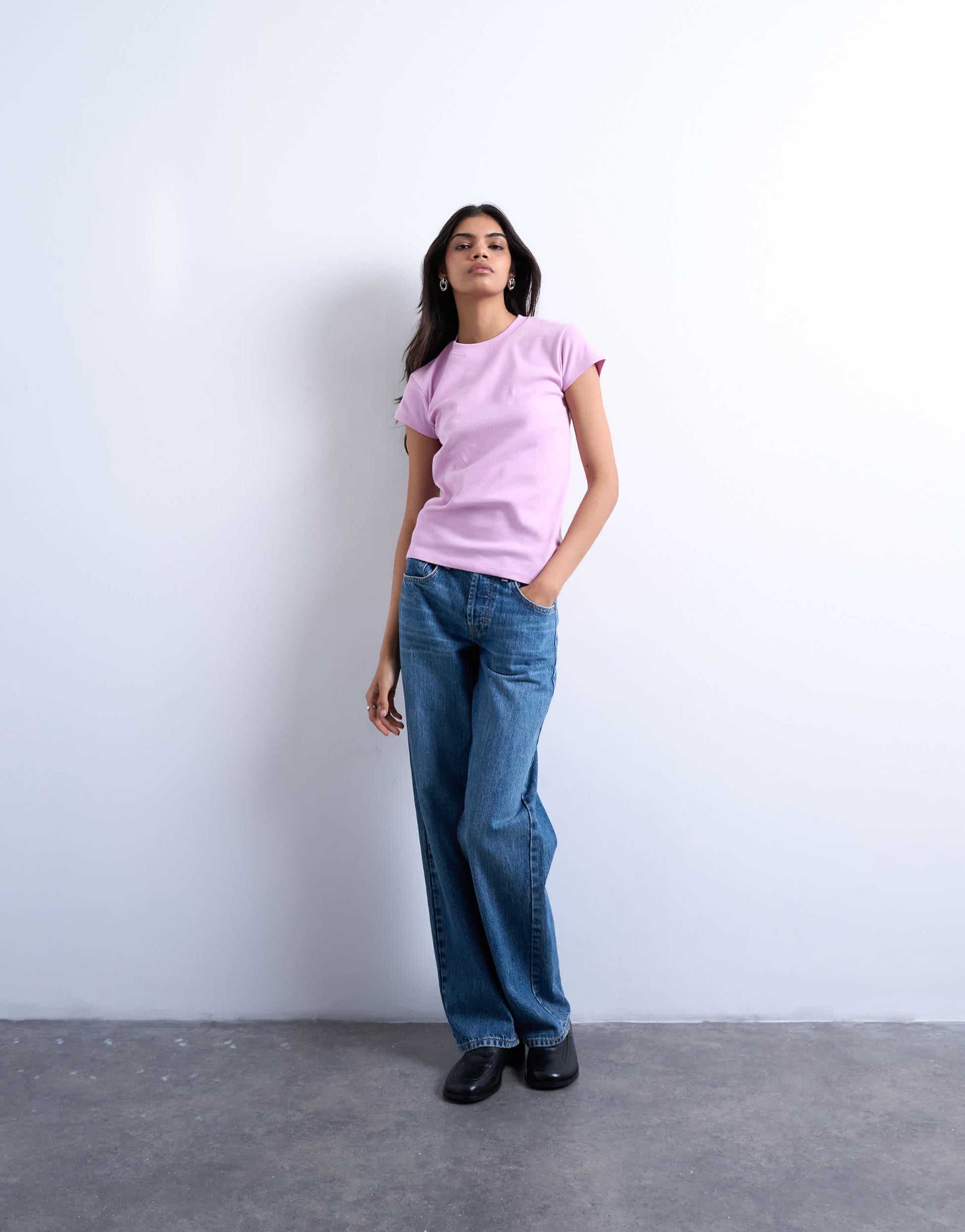 Hauts de TopshopCe haut est confectionné en jersey doux et extensible et présente un design uni et polyvalent. Il possède un col rond, des manches courtes et une coupe classique.