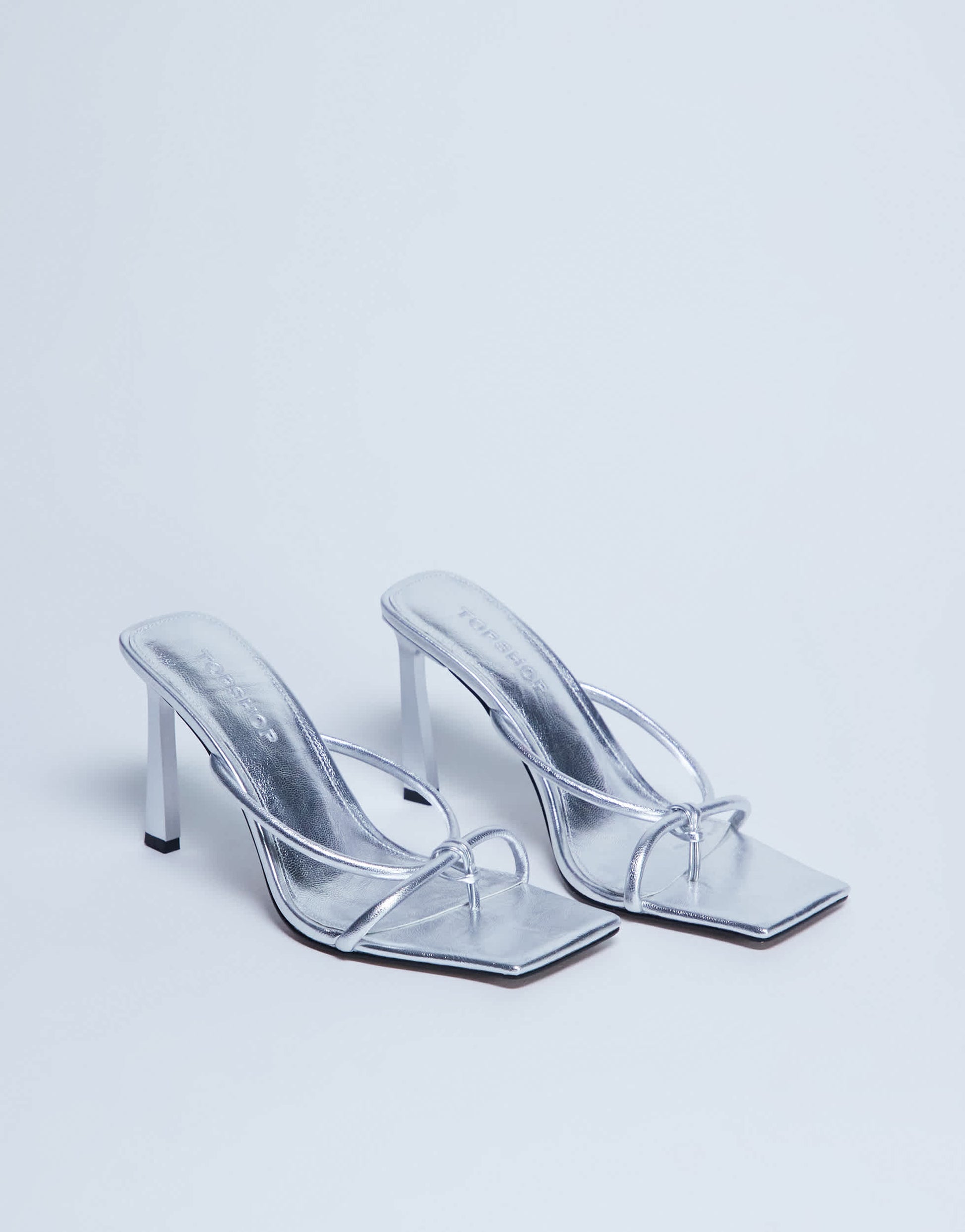 Chaussures TopshopLes escarpins Flora sont confectionnés en tissu métallisé argenté. Dotés d'une bride et d'un talon haut, ces modèles à enfiler sont parfaits.