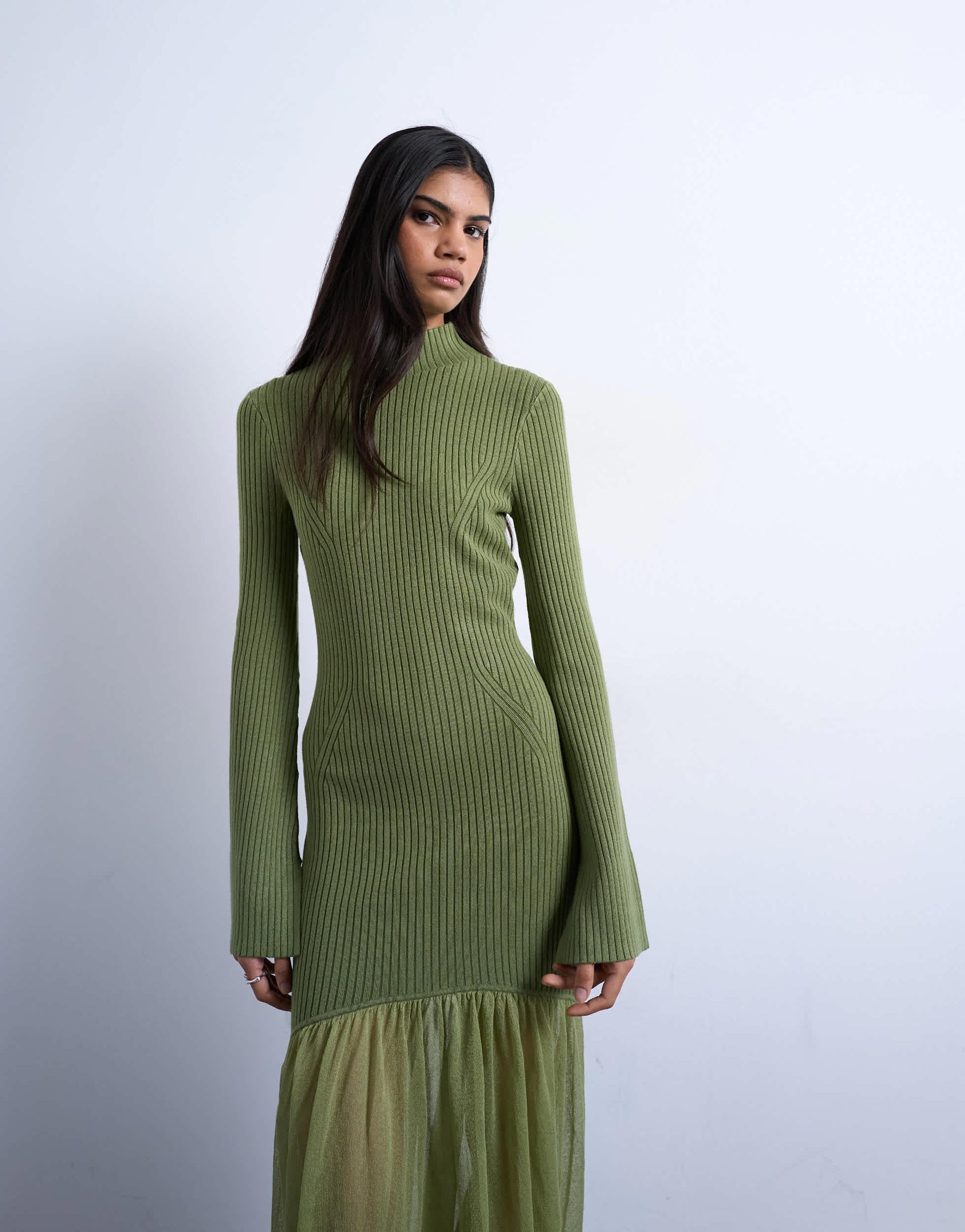 Robes de TopshopCette robe est confectionnée en maille côtelée. Elle présente un col montant, des manches longues, une jupe contrastée et une coupe classique.