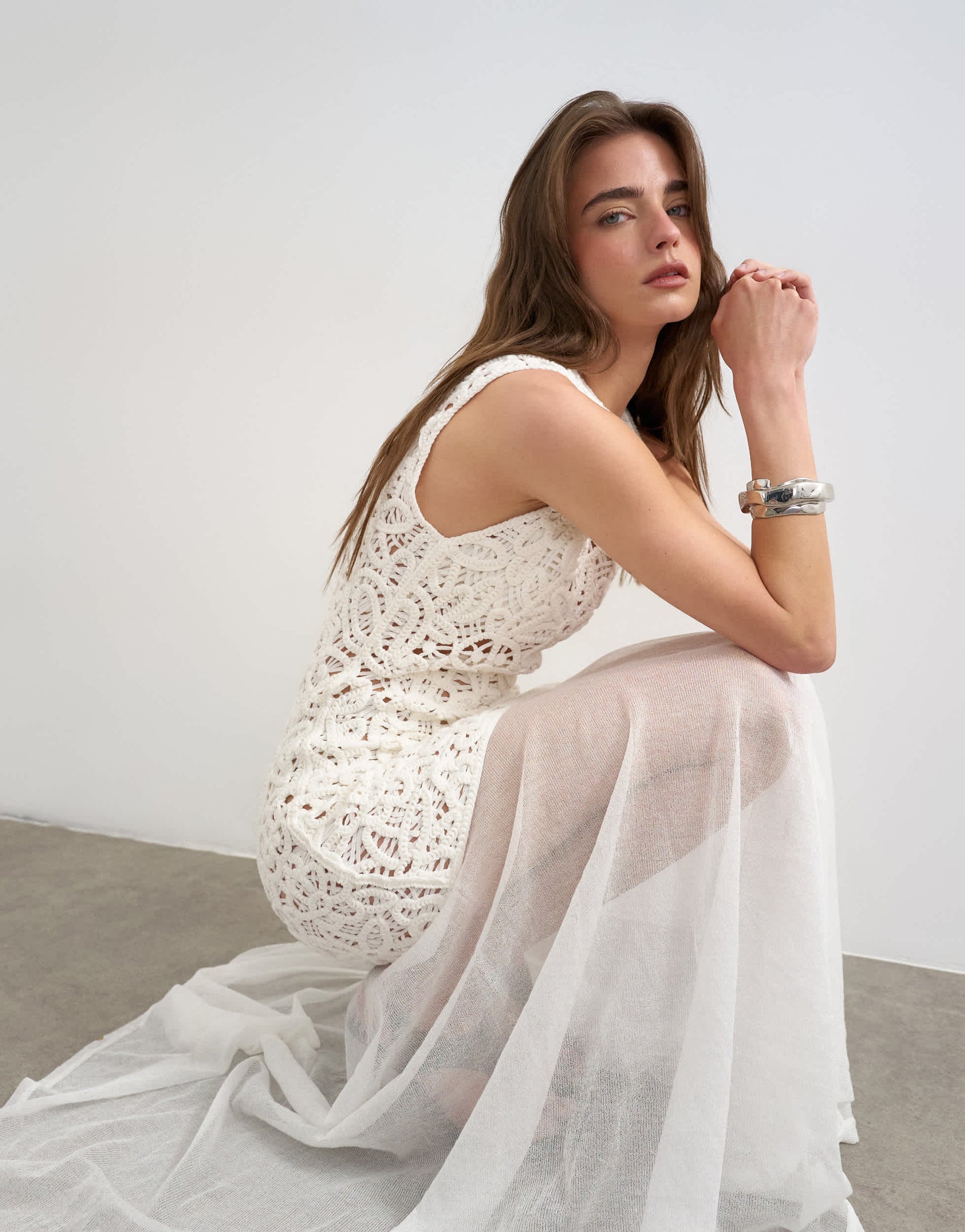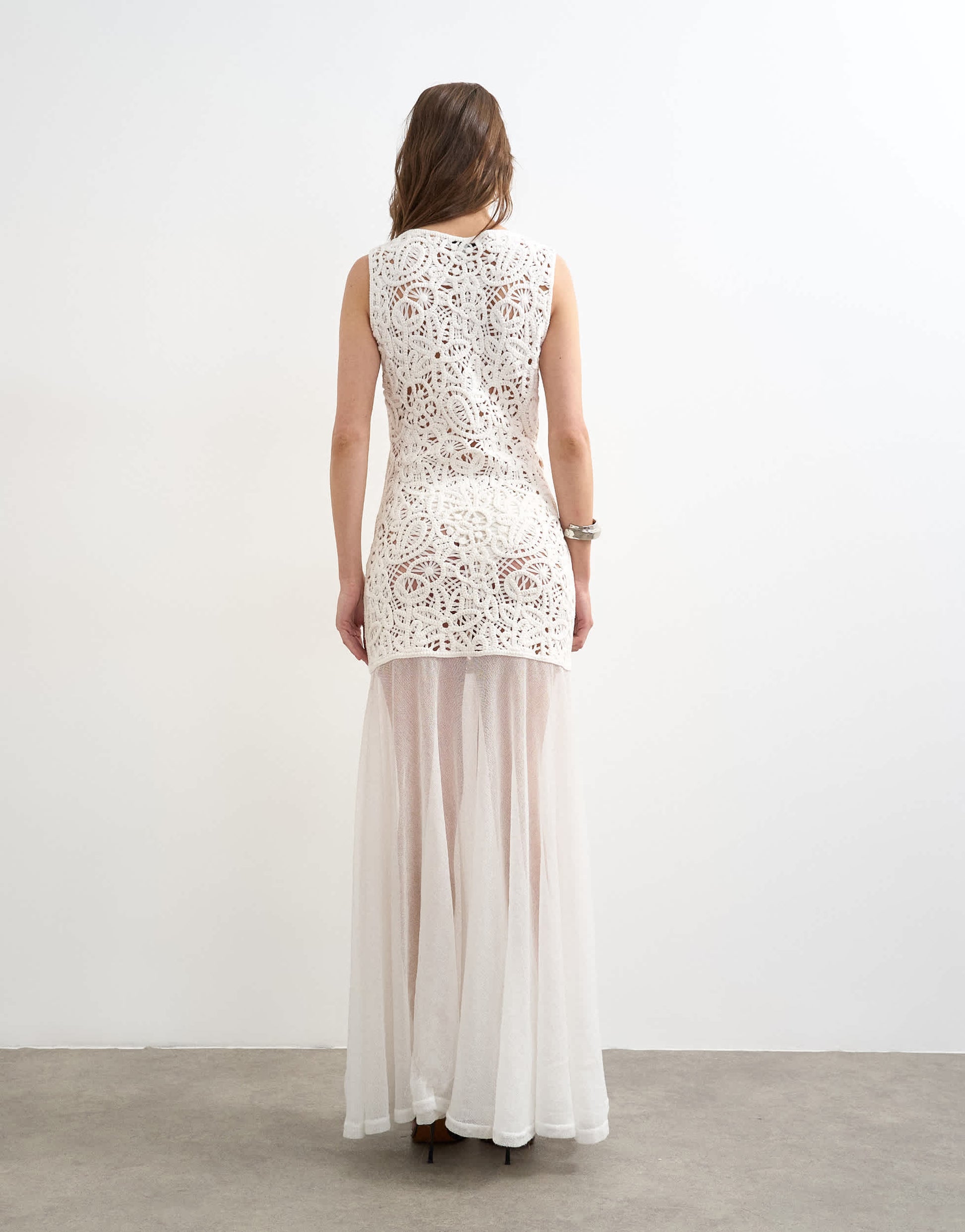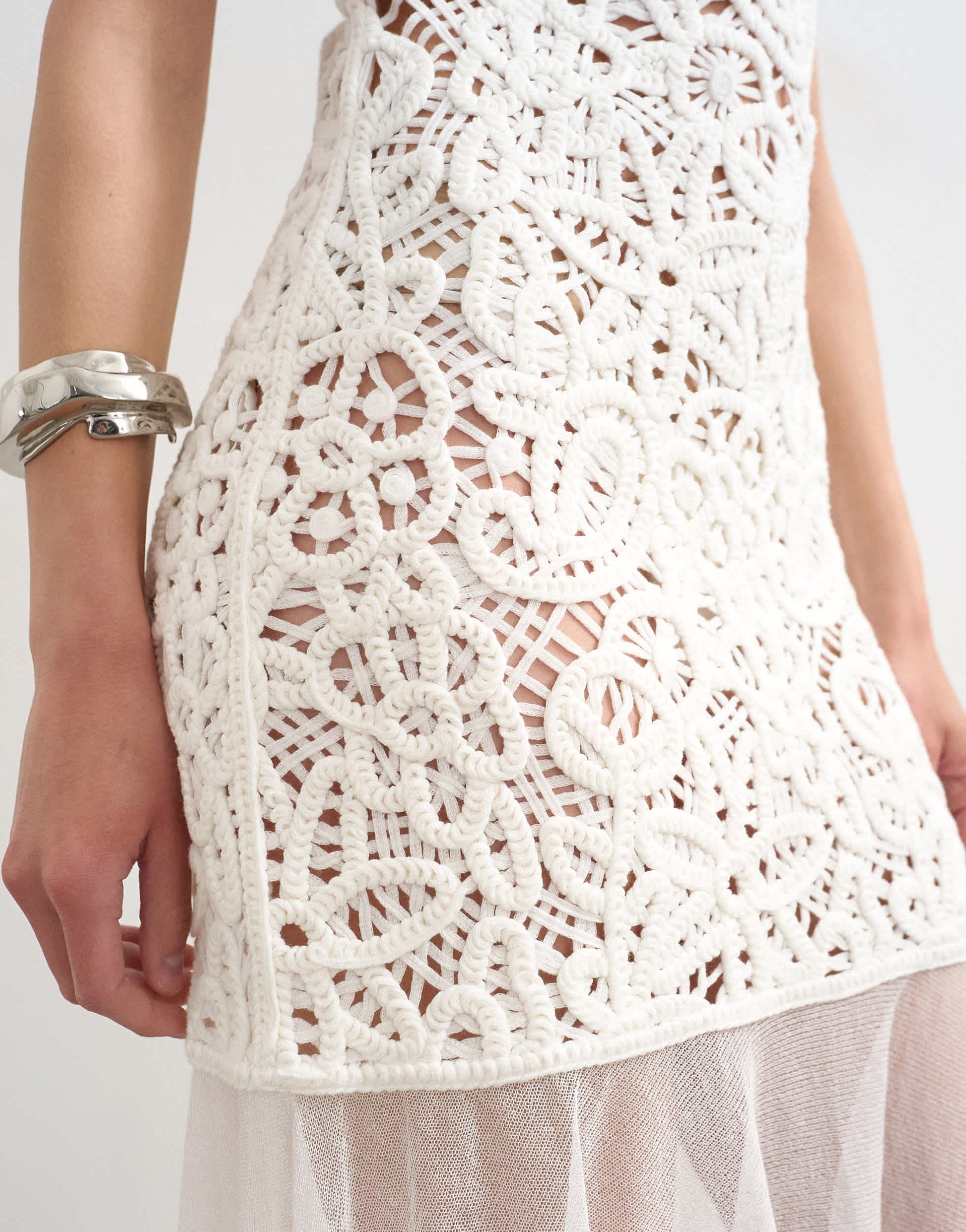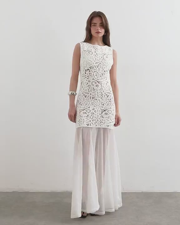 Robes par TopshopCette robe est confectionnée en crochet avec un ourlet transparent. Le modèle sans manches présente un col rond et une coupe droite.