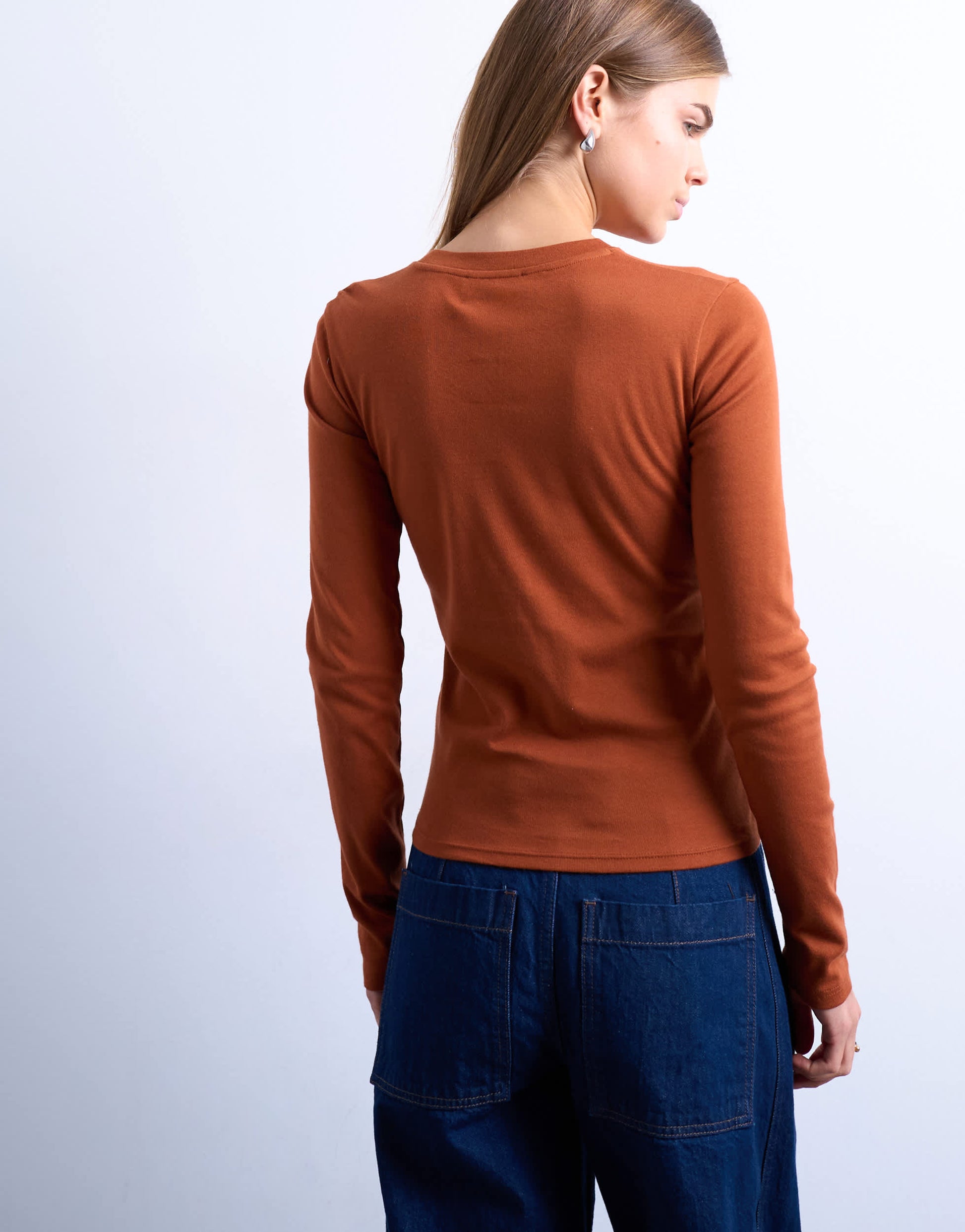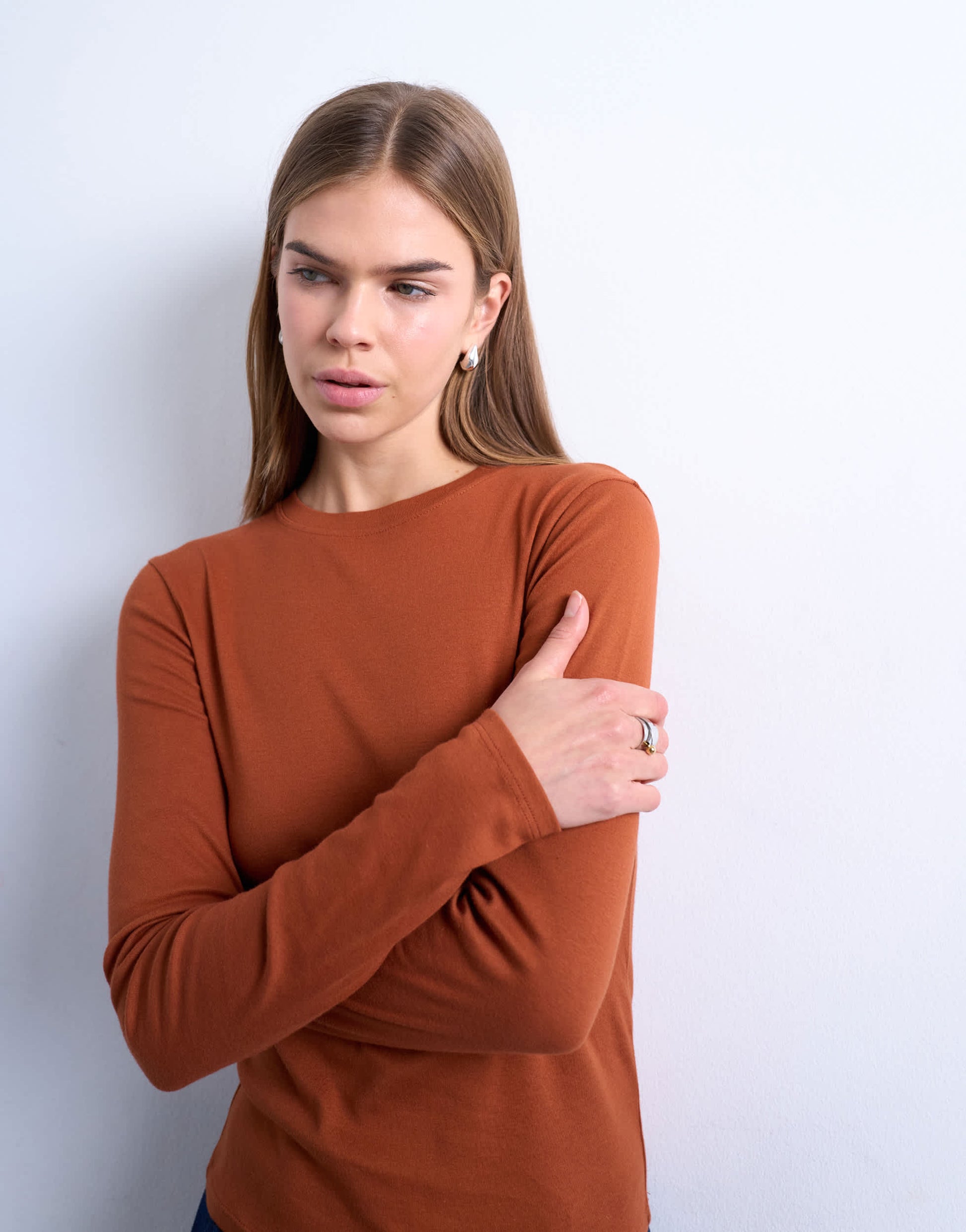 Hauts de TopshopCe t-shirt est confectionné en jersey doux et extensible de couleur orange. Doté d'un col rond et de manches longues, il présente une coupe ajustée pour une allure élégante.