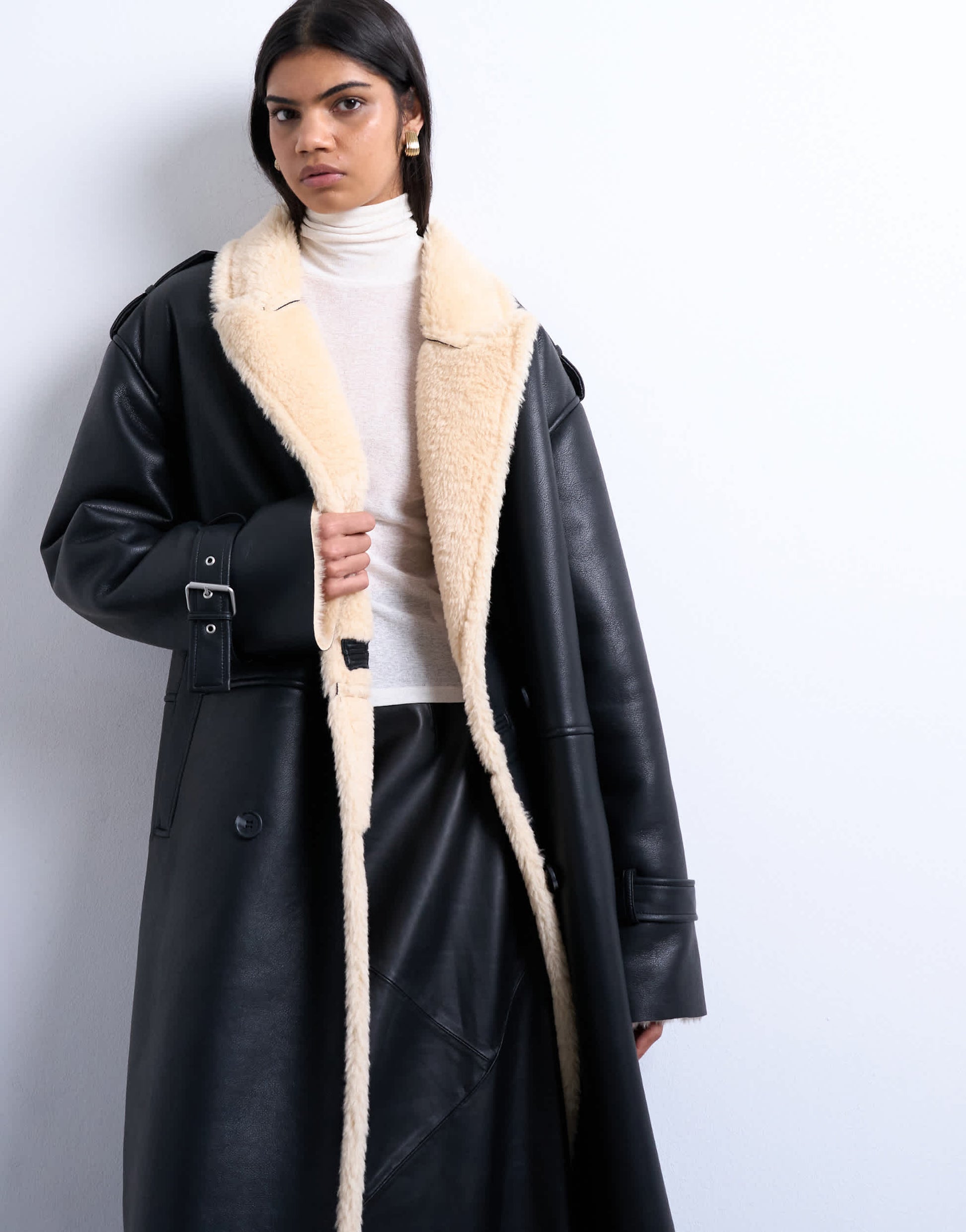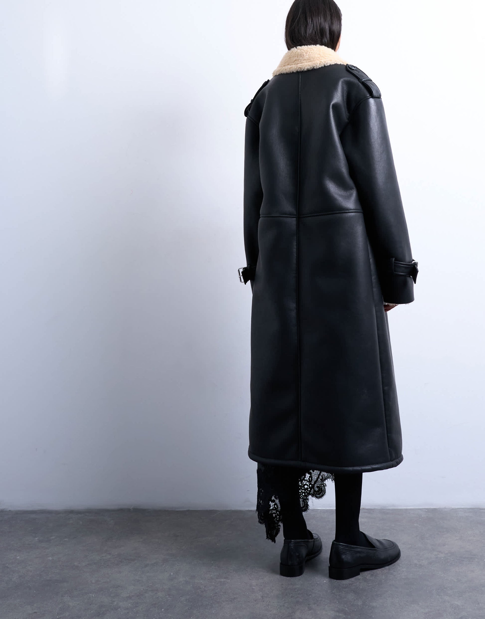 Manteaux et vestes TopshopAvec sa coupe ample et généreuse, cette veste d'aviateur associe un tissu crème doux à un tissu noir mat. Ce modèle possède des poches latérales et une patte de boutonnage.