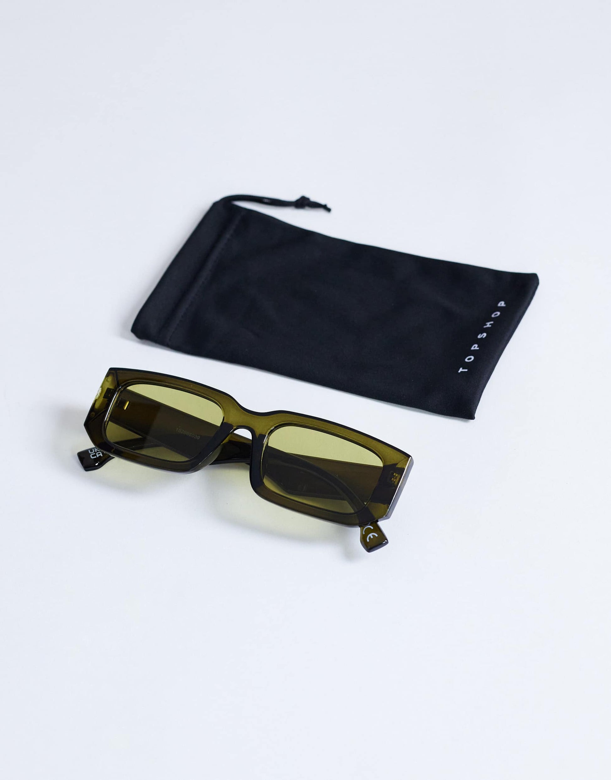 Accessoires de TopshopLes lunettes de soleil Milan présentent une monture rectangulaire aux contours vert olive. Elles sont dotées de plaquettes nasales moulées, de verres colorés et de branches fuselées. Ce modèle est livré avec une pochette de rangement à cordon.